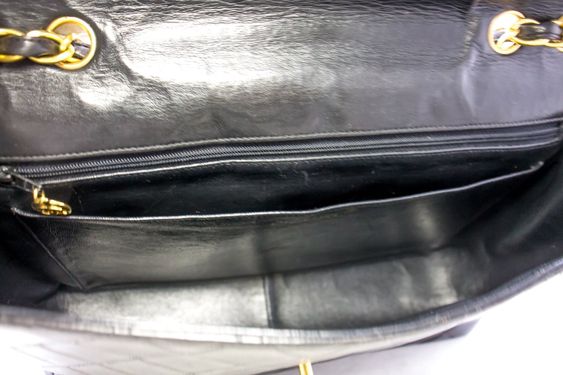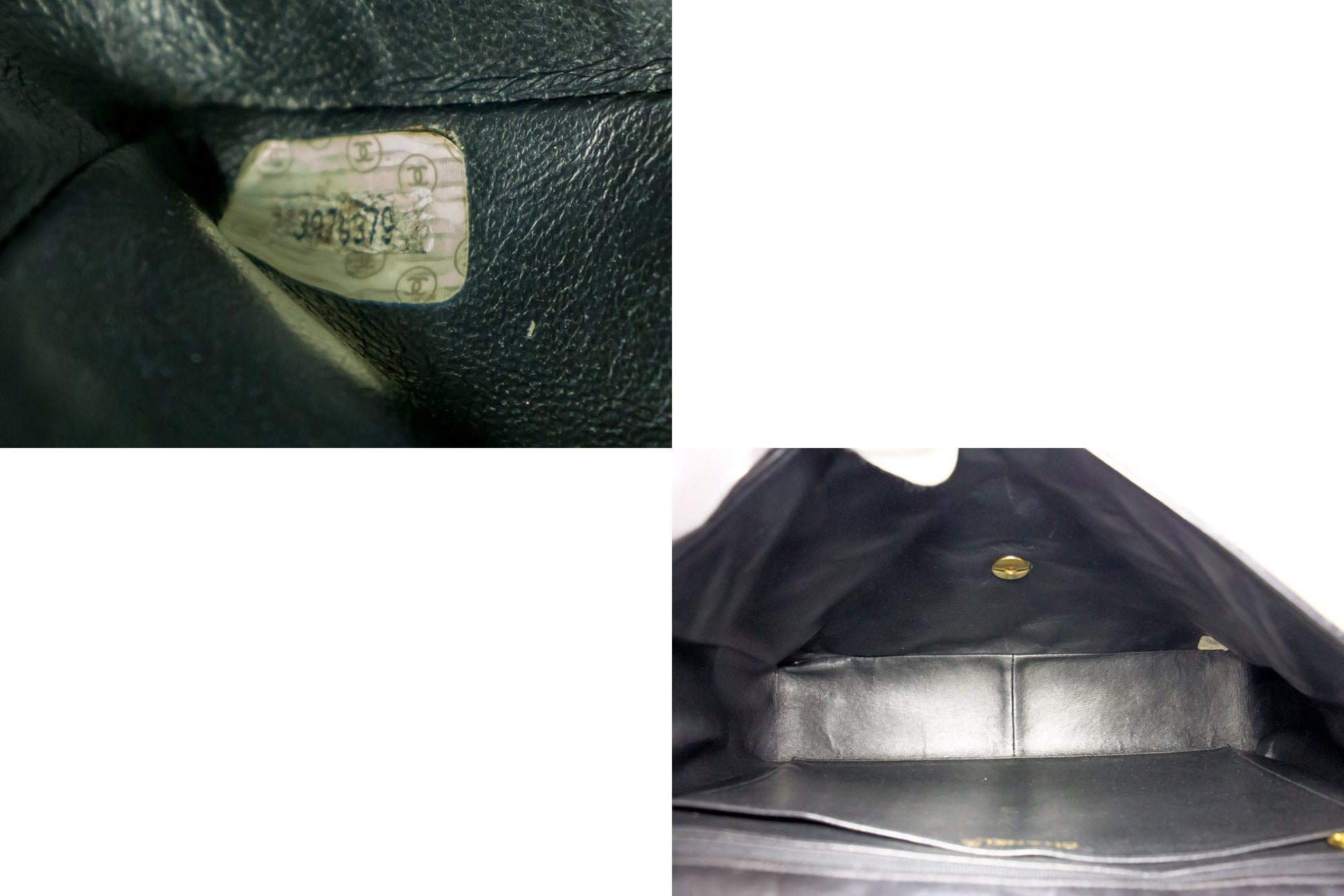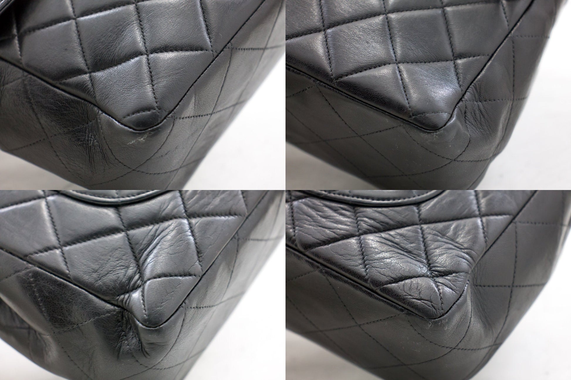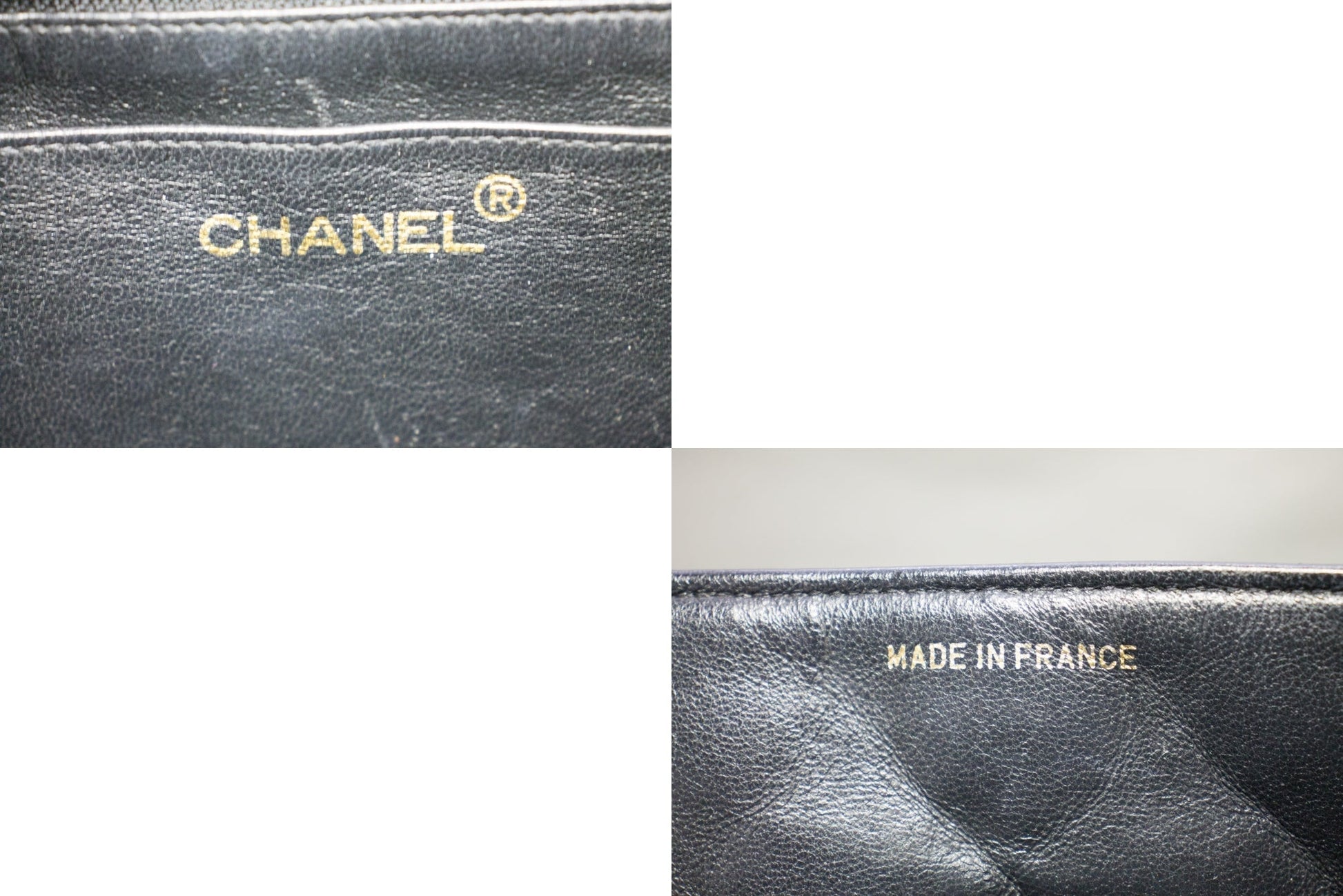 An CHANEL Jumbo 11" Large Chain Shoulder Bag Flap Black made of black Lambskin Gold f35 This item is Vintage / Classic. The year of manufacture would be 1994-1996.