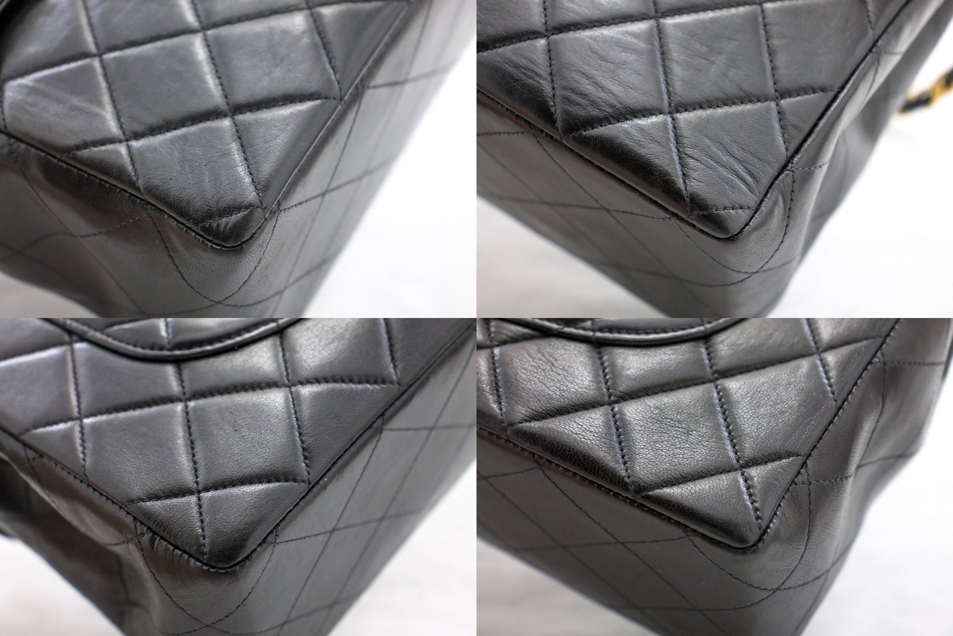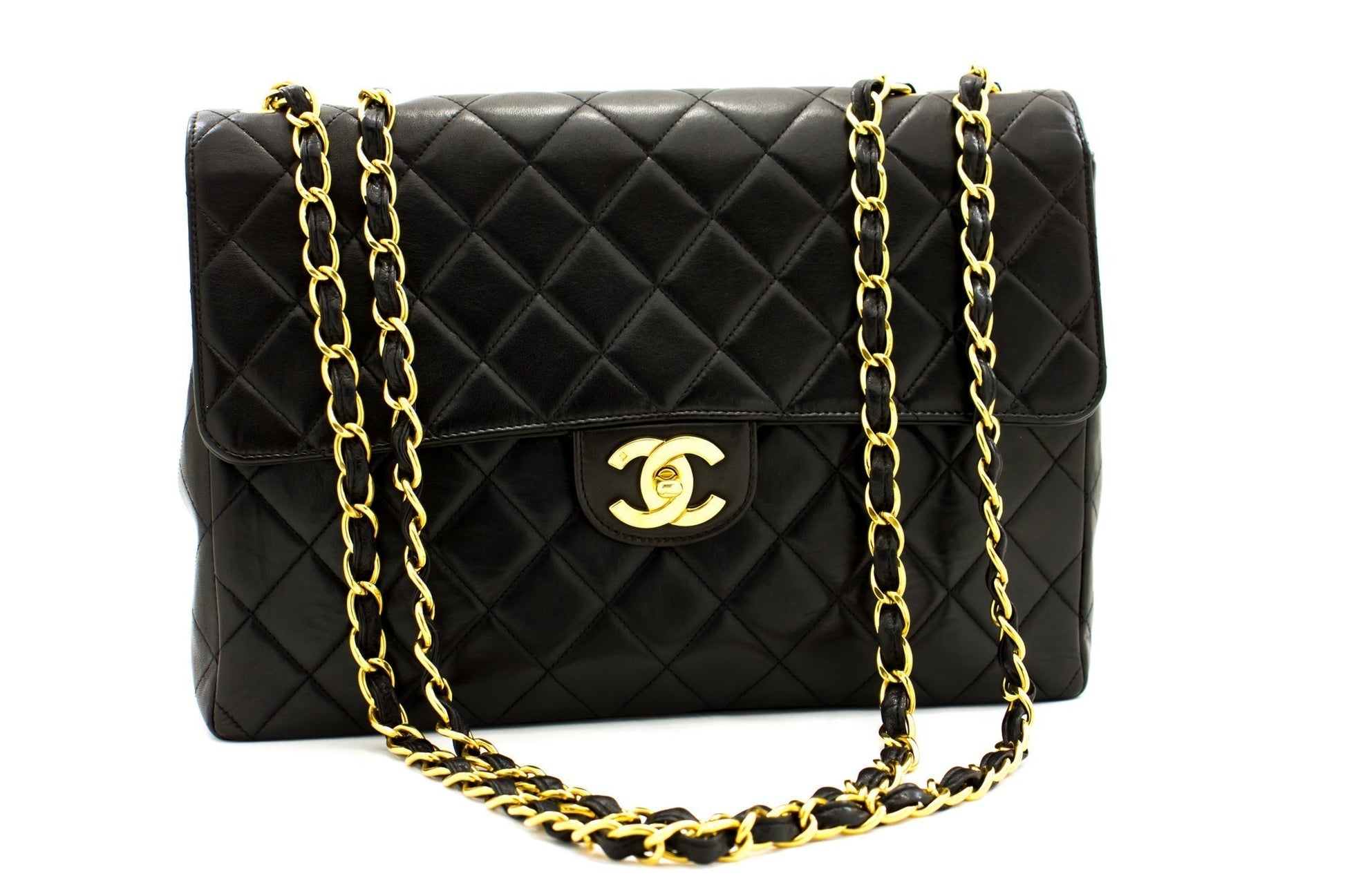 An CHANEL Jumbo 11" Large Chain Shoulder Bag Flap Black made of black Lambskin Gold f98 This item is Vintage / Classic. The year of manufacture would be 1994-1996.
