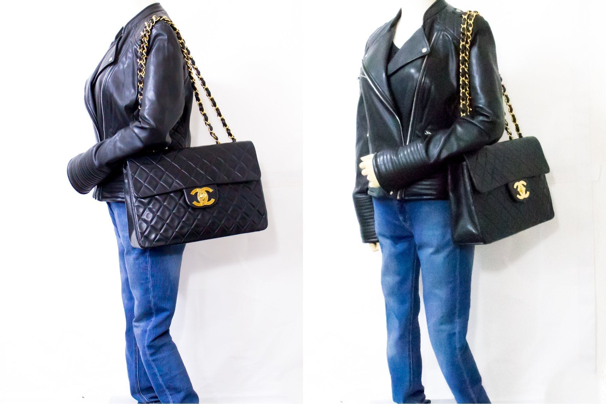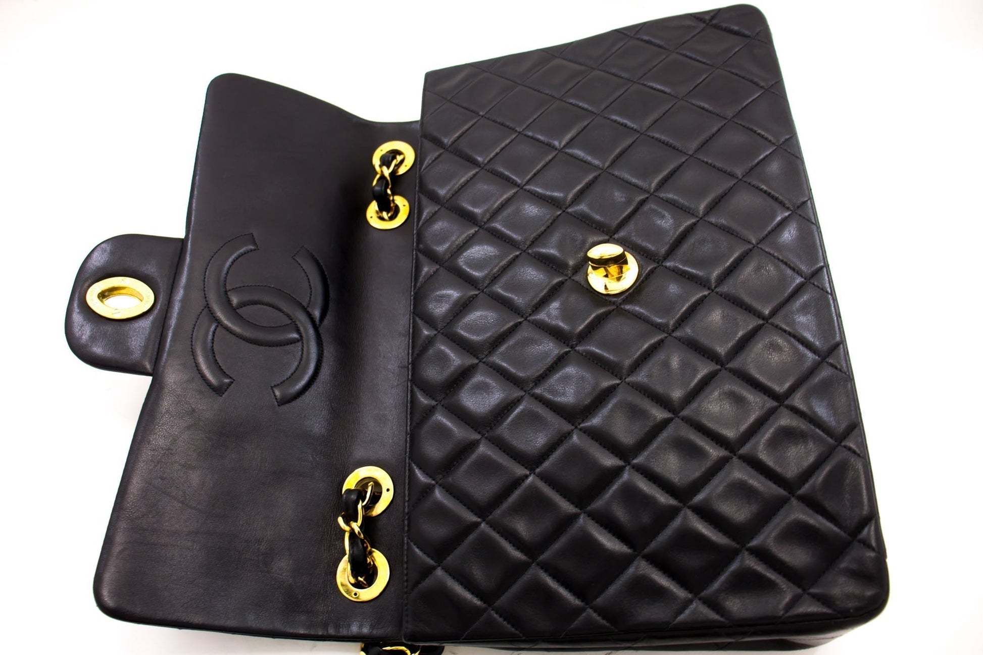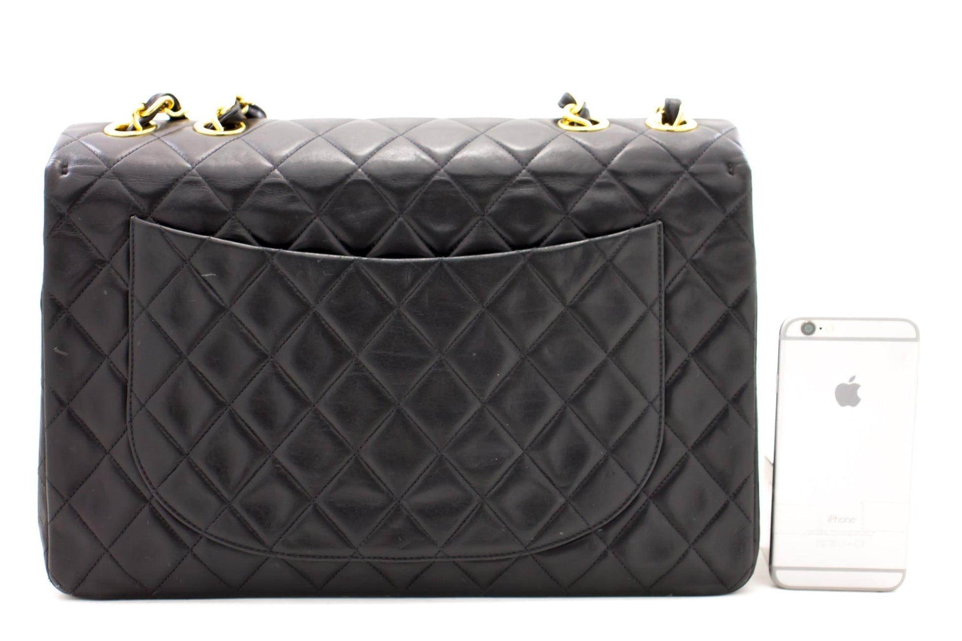 An CHANEL Jumbo 13" Maxi 2.55 Flap Chain Shoulder Bag Black made of black Lambskin d66 This item is Contemporary. The year of manufacture would be 1986.