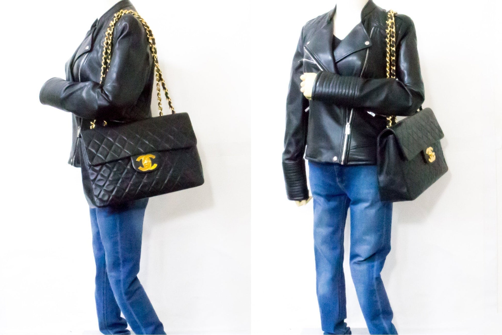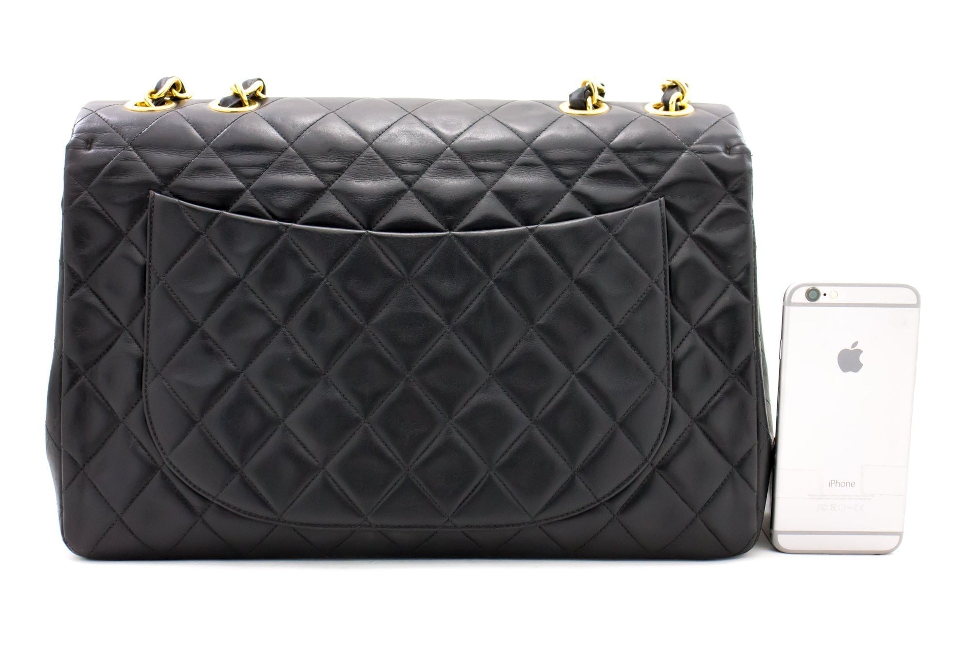 An CHANEL Jumbo 13" Maxi 2.55 Flap Chain Shoulder Bag Black made of black Lambskin d68 This item is Vintage / Classic. The year of manufacture would be 1994-1996.
