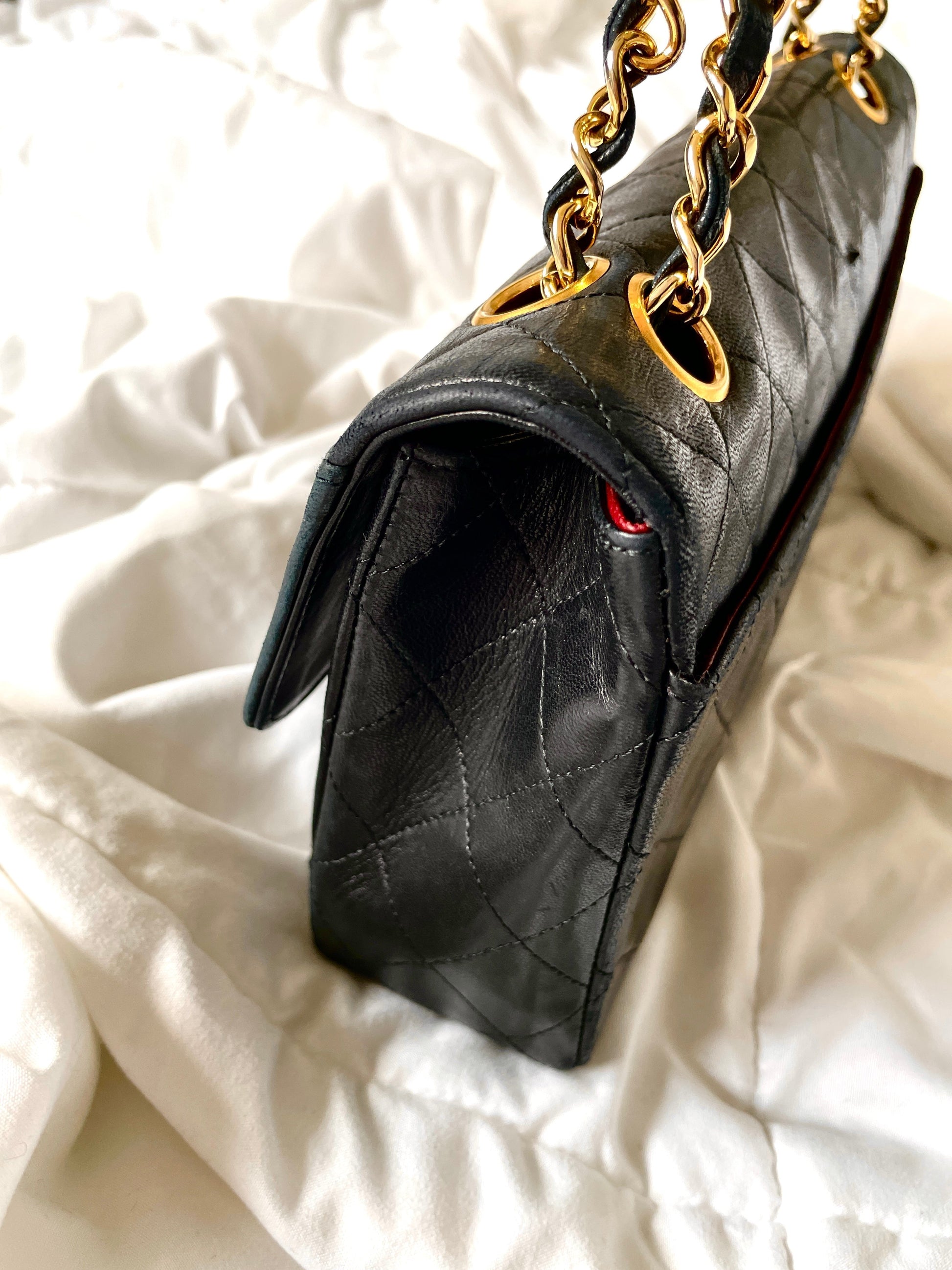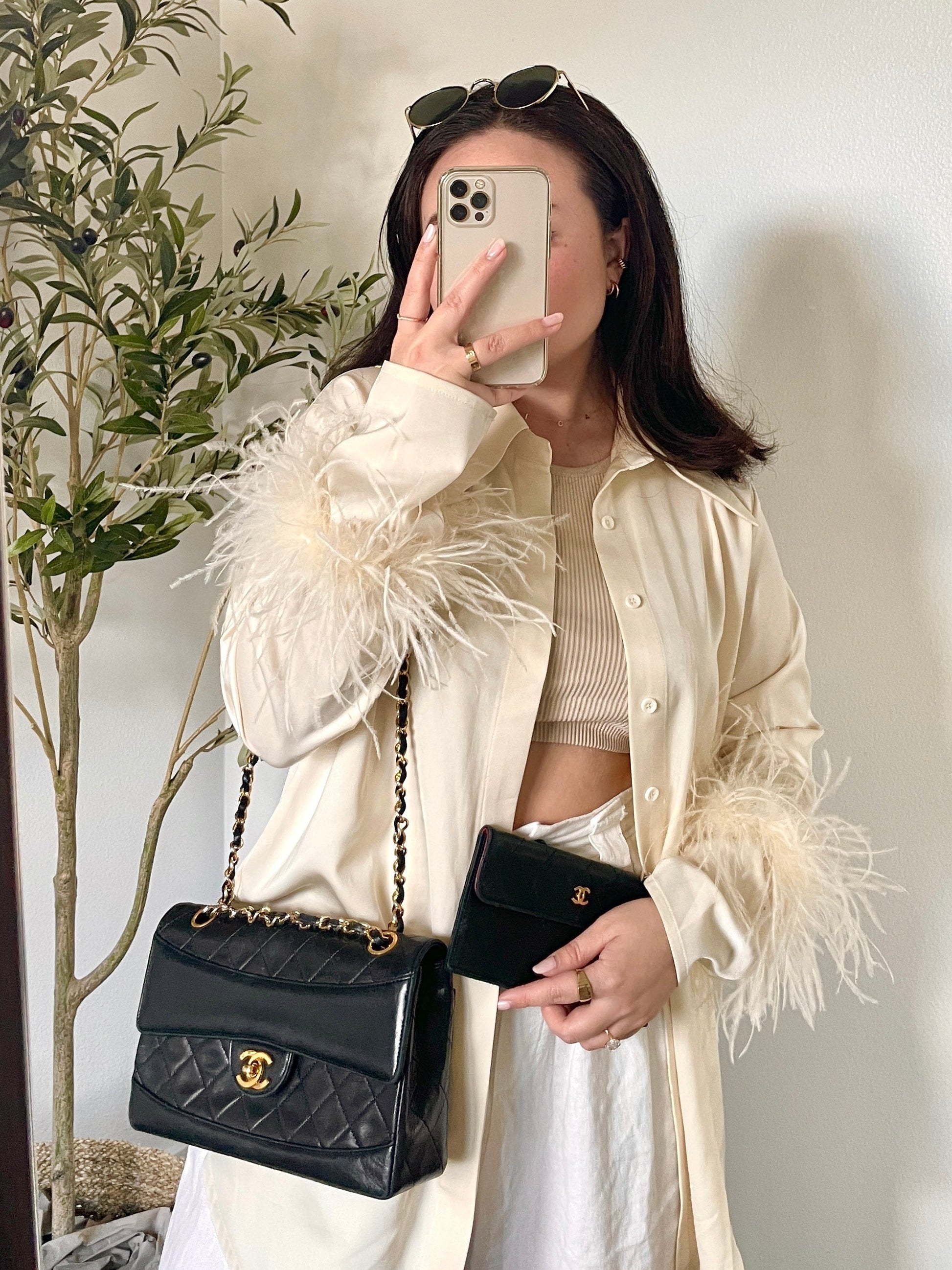 Bringing to the shop a stunning, soft timeless Chanel flap with a matching wallet. Can be loved for years to come. Vintage Chanel crafted in the 90's= 24k hardware and soft buttery lambskin. Don't miss out on this gorgeous find. Can be as a long or short shoulder bag. 6500-9000+. Matching wallet snaps into interior pocket. Wallet can be used separately- if you loop?a chain around it, it can be a small crossbody bag! :)