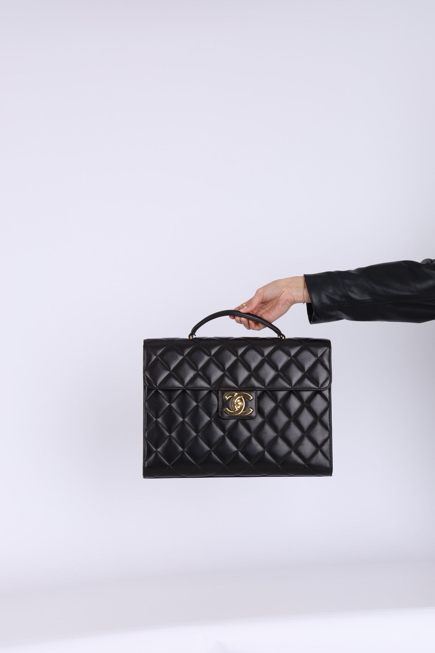 This beautiful Chanel Lambskin Briefcase is the perfect #boss briefcase that you can take to travel, work, or school to elevate your style! Added a generic chain to wear easily as a shoulder bag. Still has amazing puffy quilting!