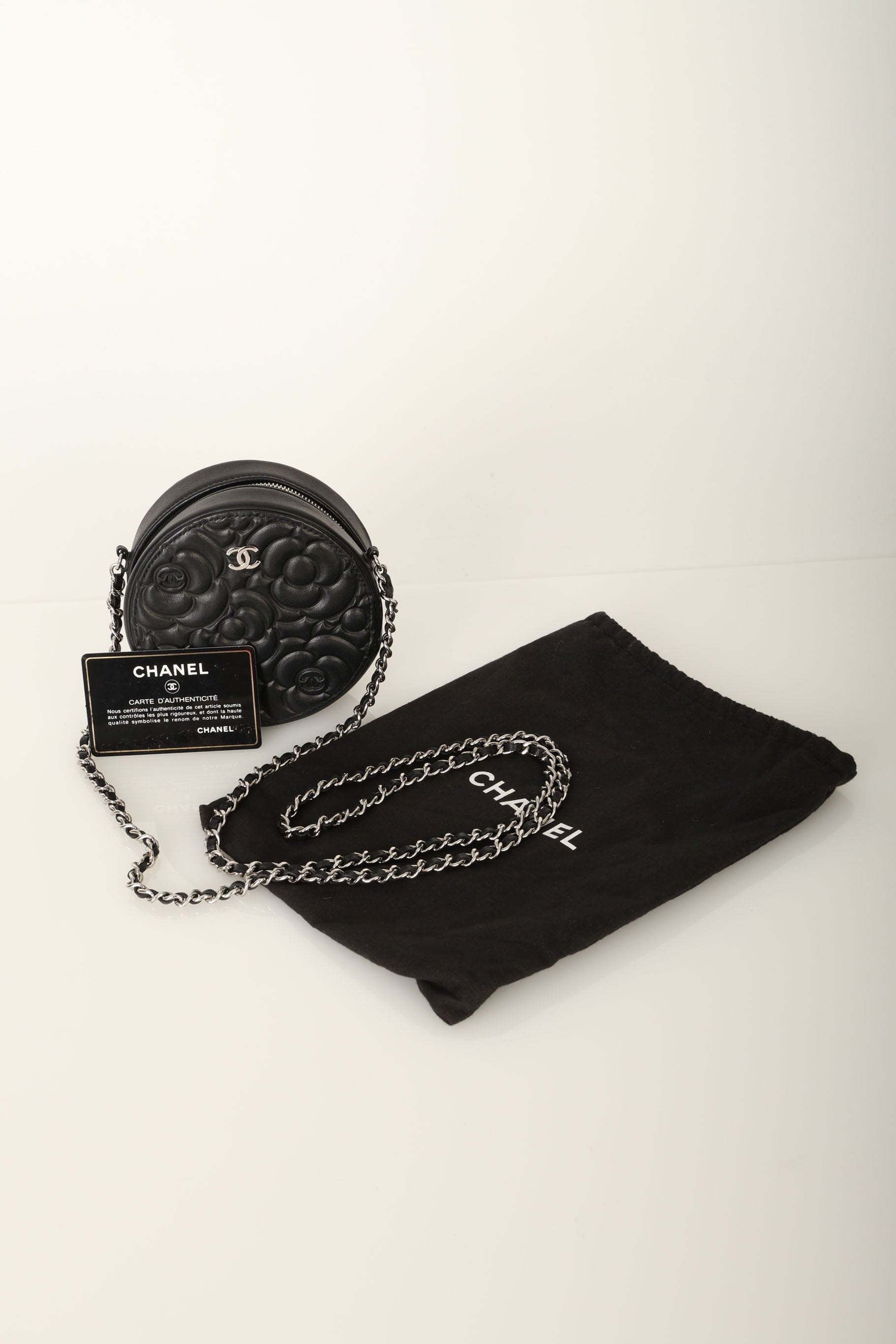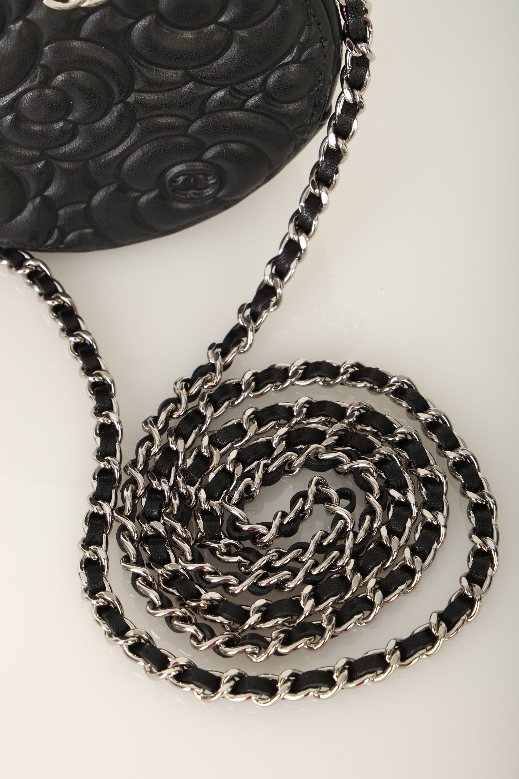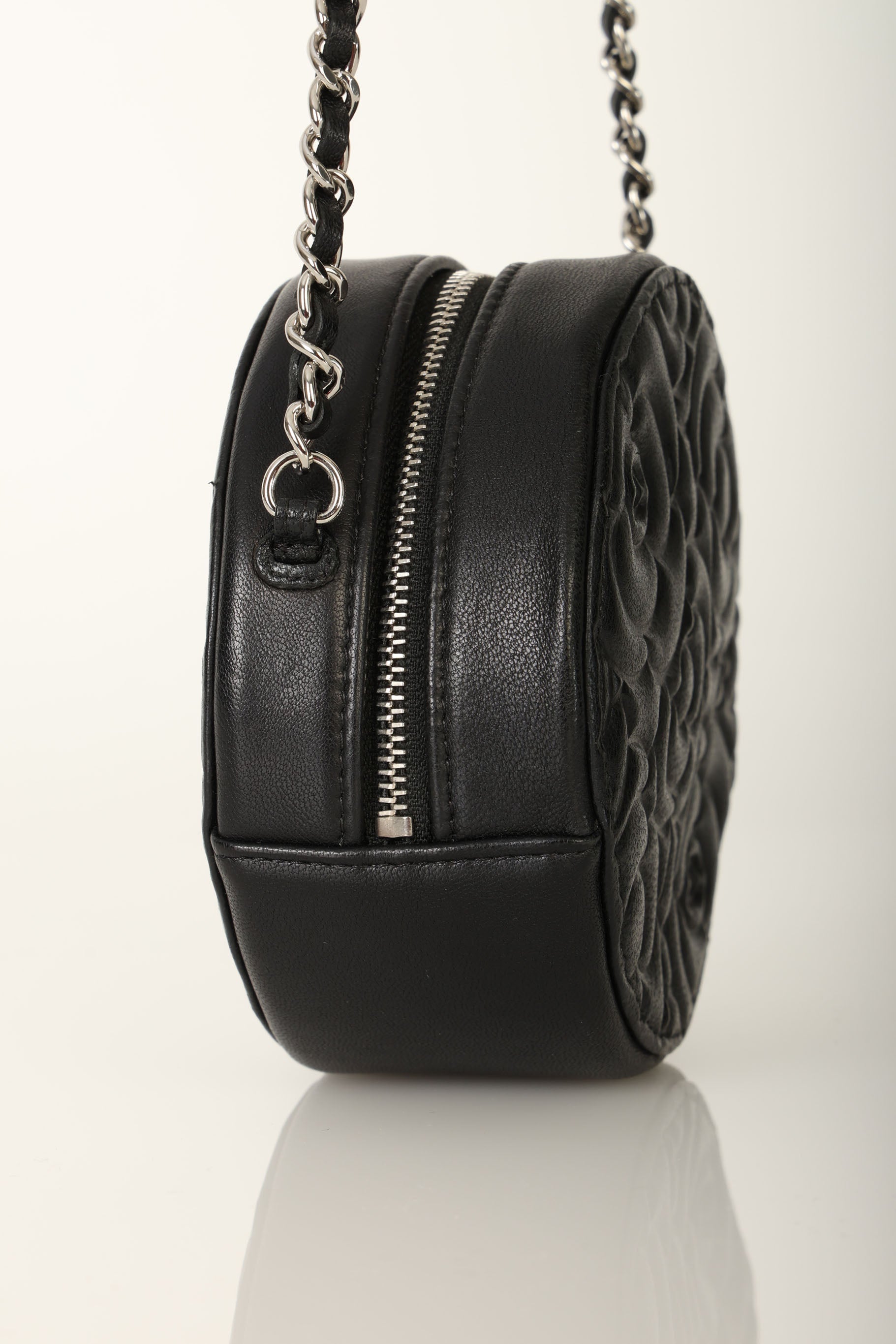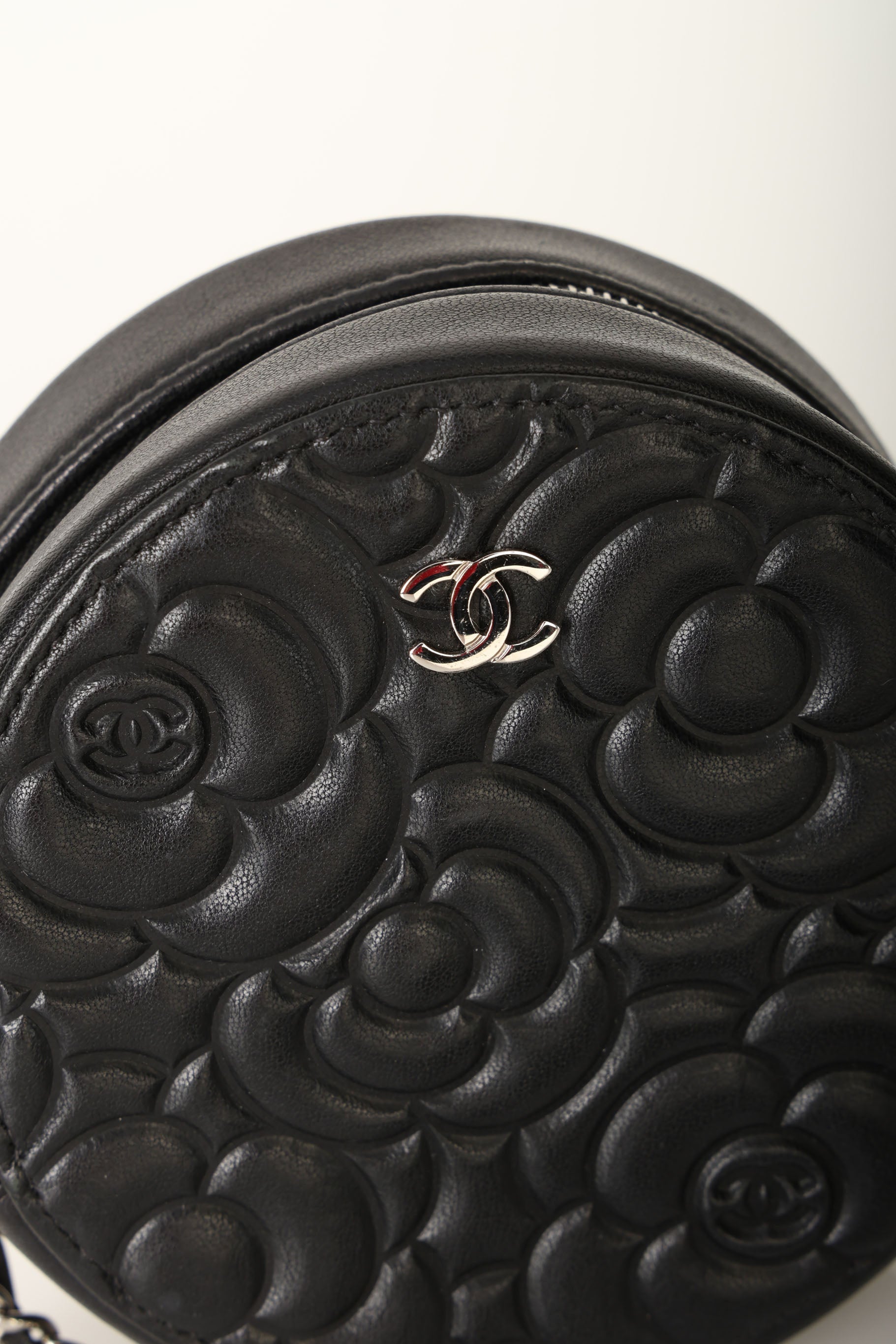 The cutest black Chanel goatskin and silver hardware crossbody - perfect for traveling or fun Spring/Summer events! The embossed camellias make such a beautiful statement, and will complement any outfit!