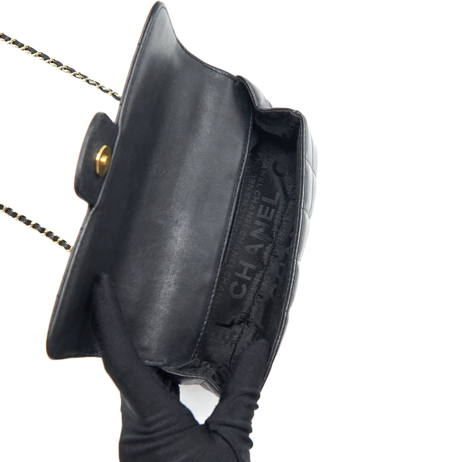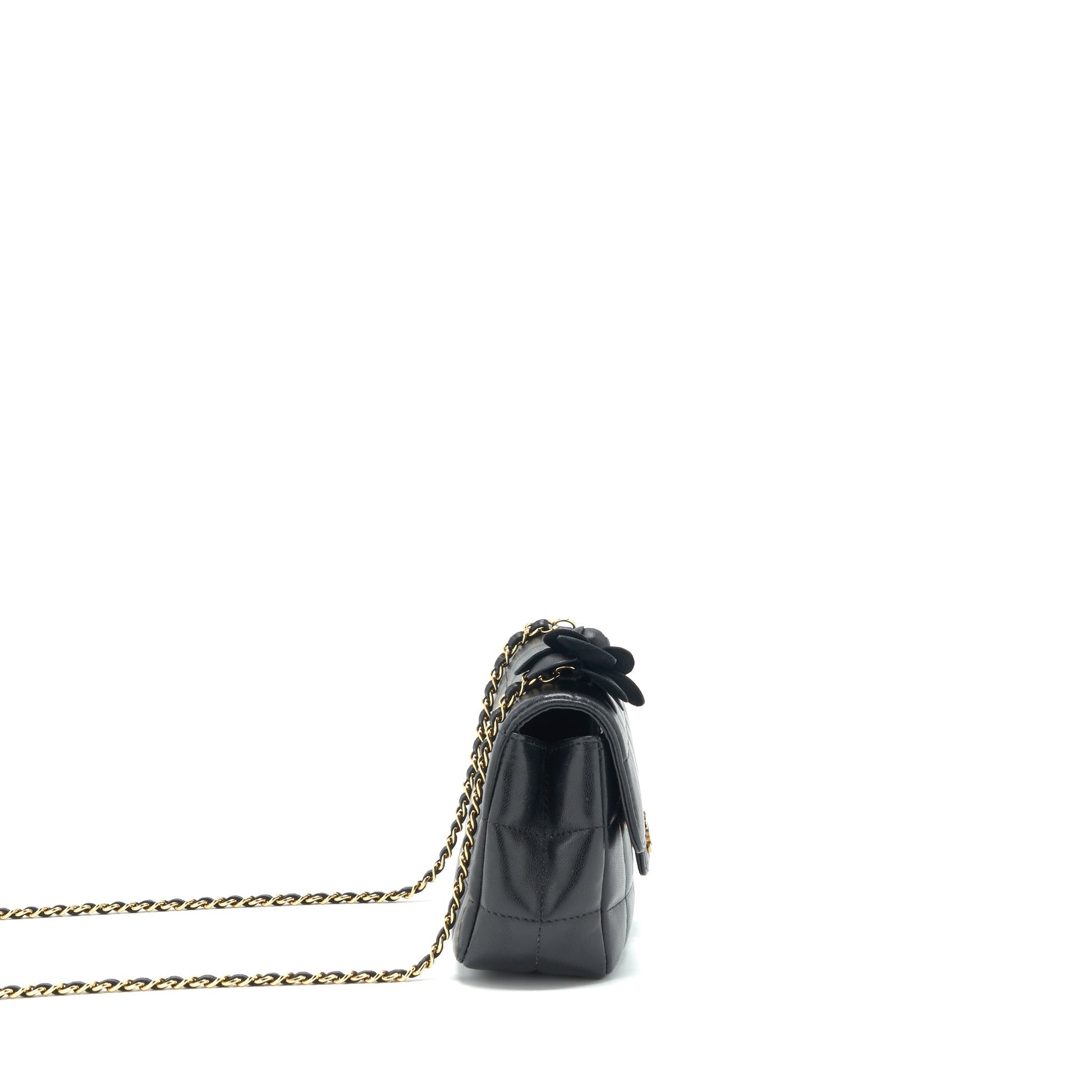 Chanel Camellia Mini Flap shoulder Bag Lambskin black GHW