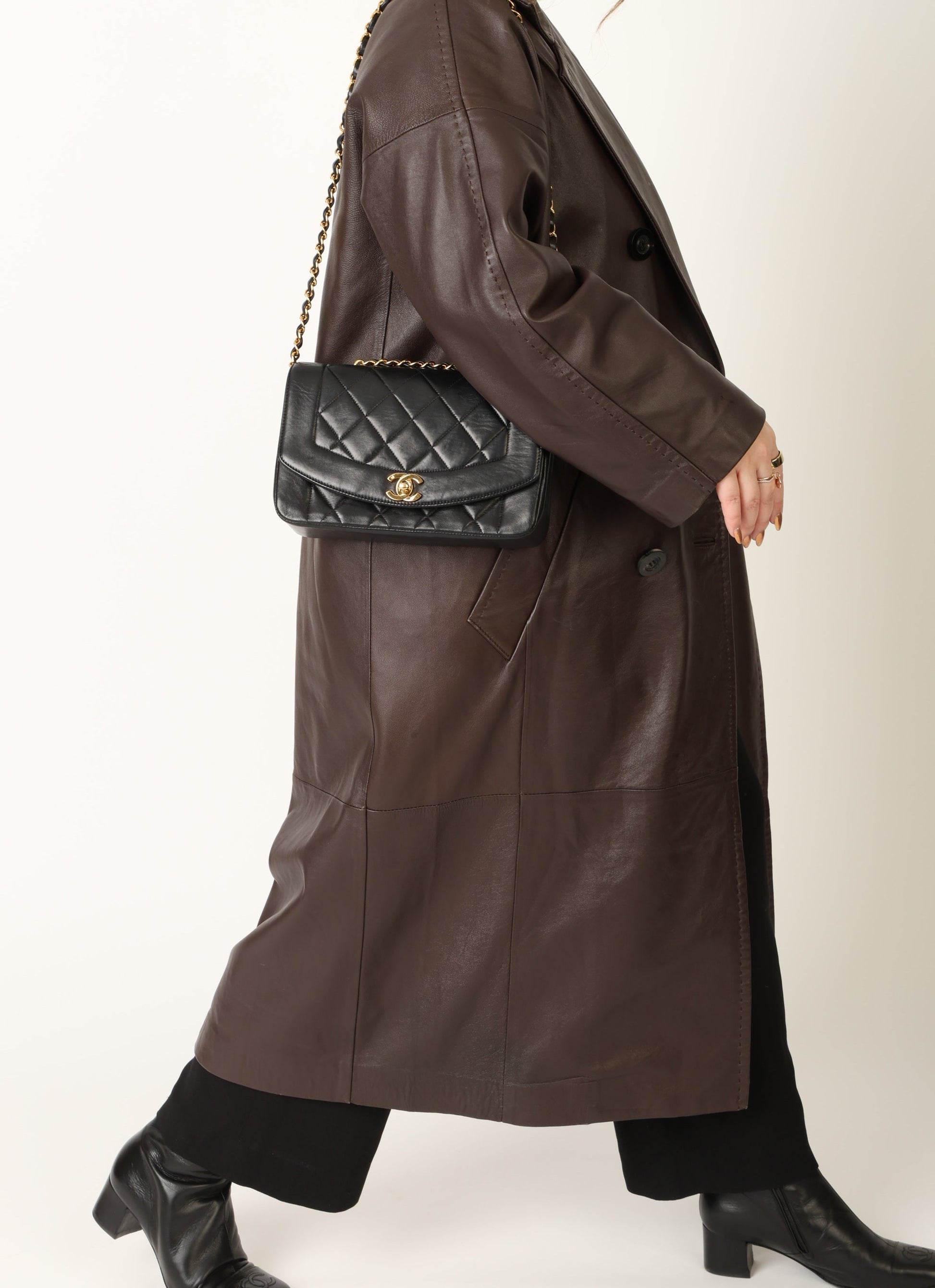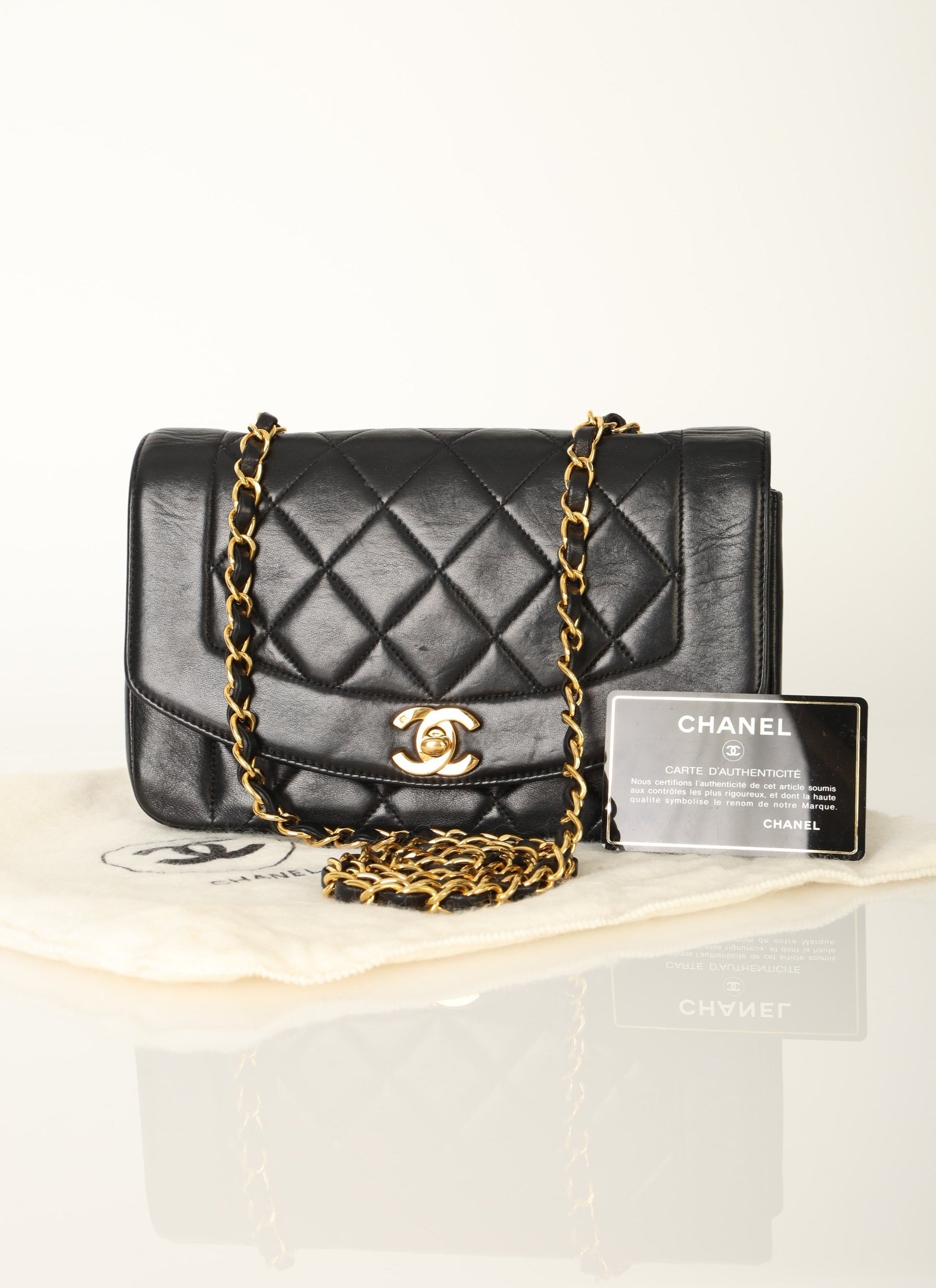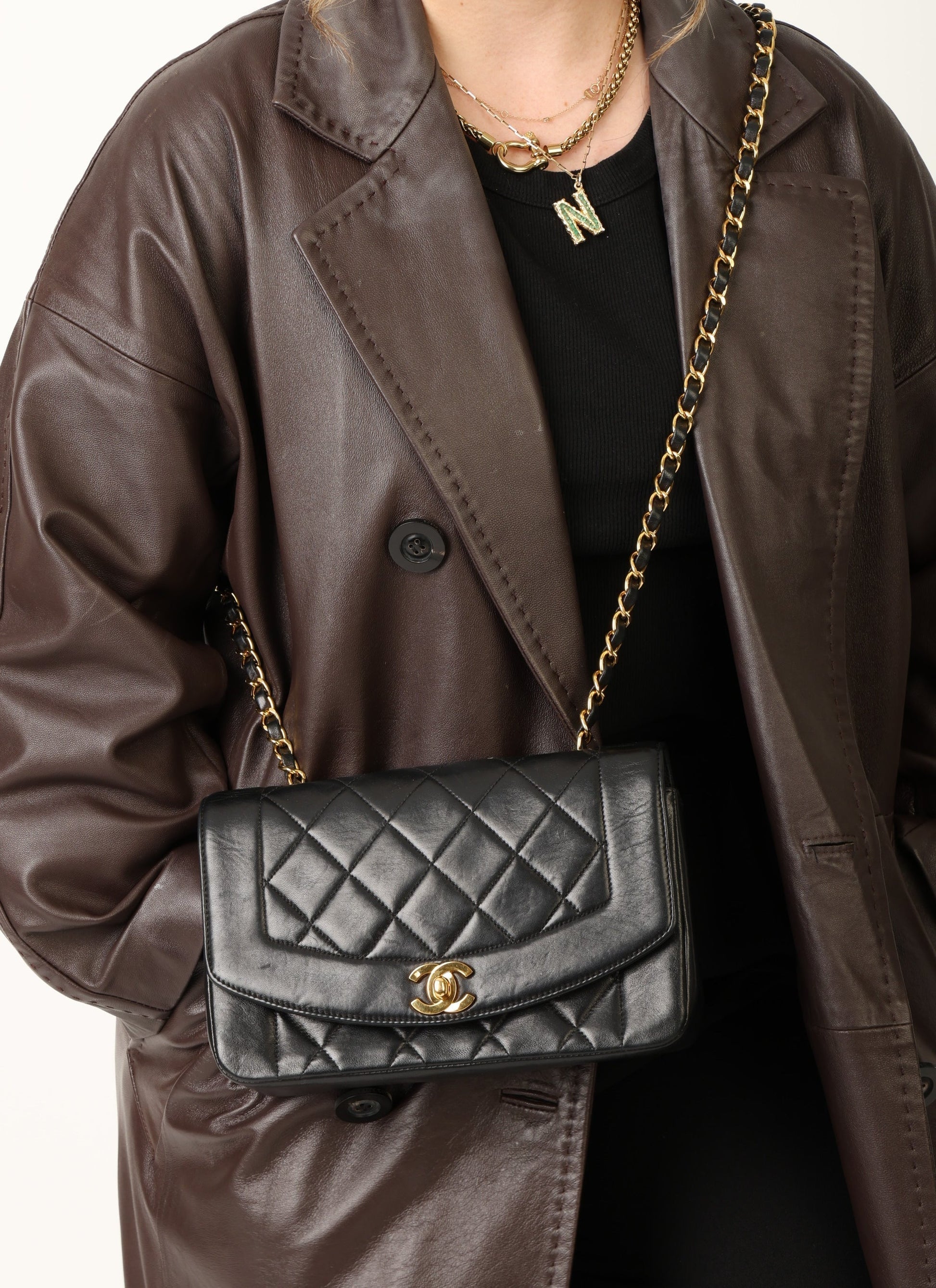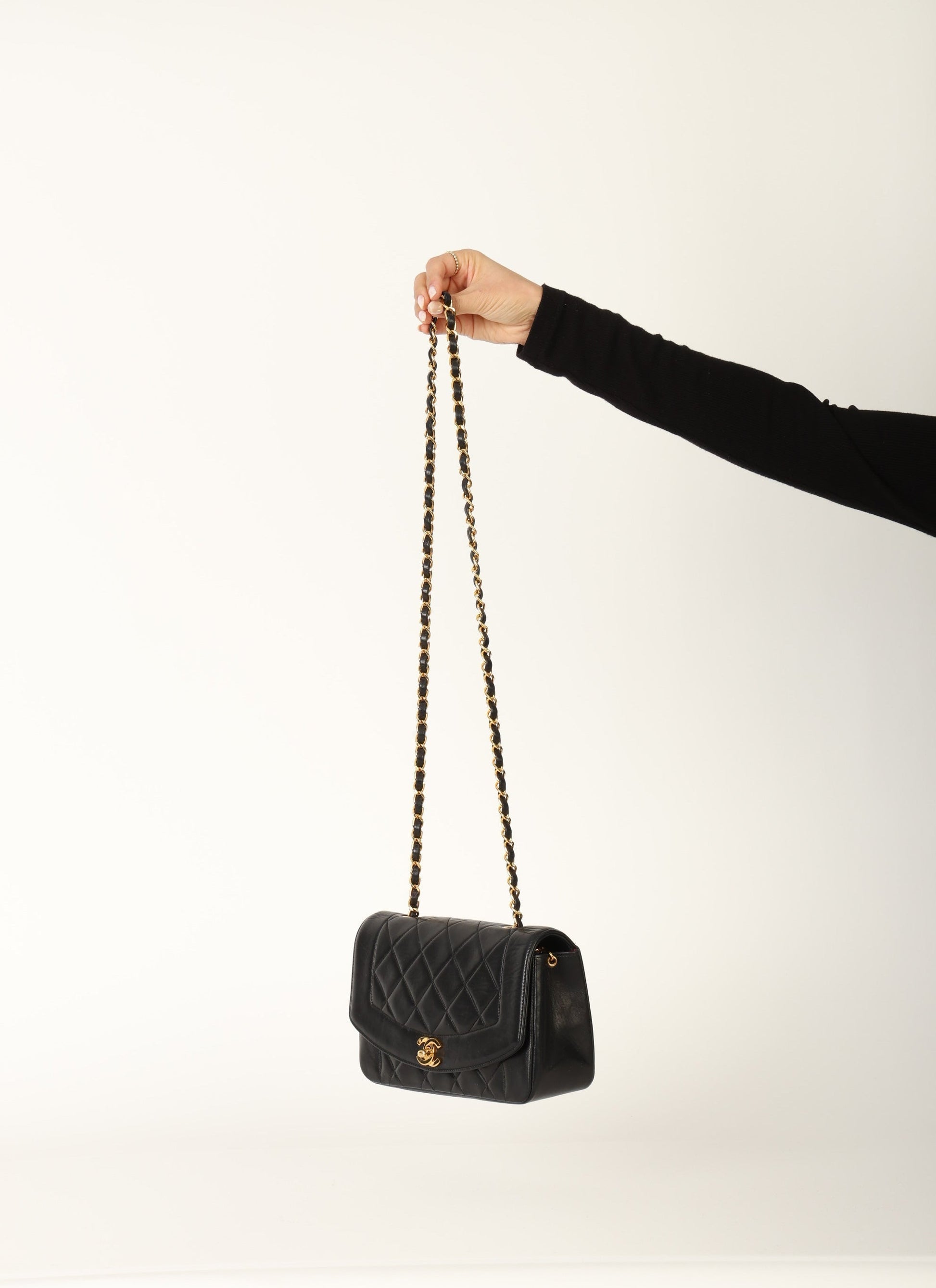 Dropping in the shop is a stunning Chanel Lambskin Diana Flap Bag in black with 24k gold plated hardware!?Crafted from the finest lambskin leather, this?small Chanel Diana bag features a sleek and streamlined design with a stunning 24K gold plated chain and hardware. The black color is versatile and perfect for any occasion, while the signature Chanel diamond quilted pattern adds a touch of luxury and elegance.