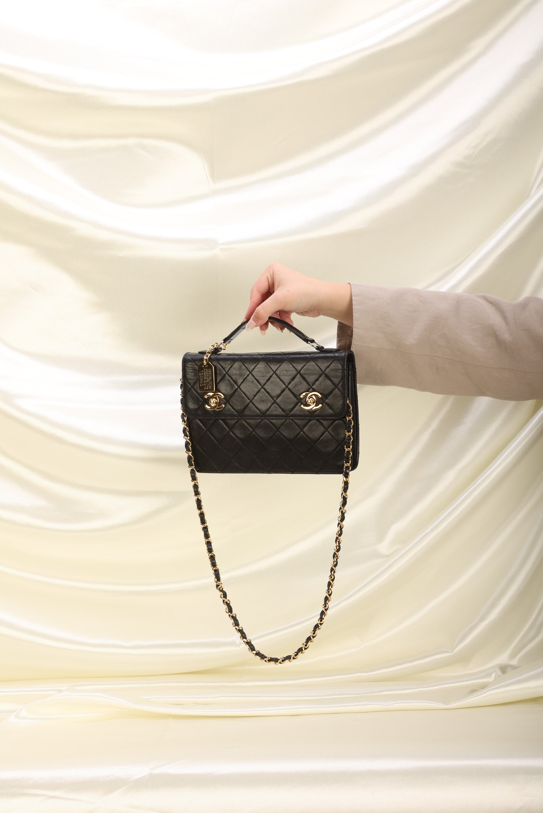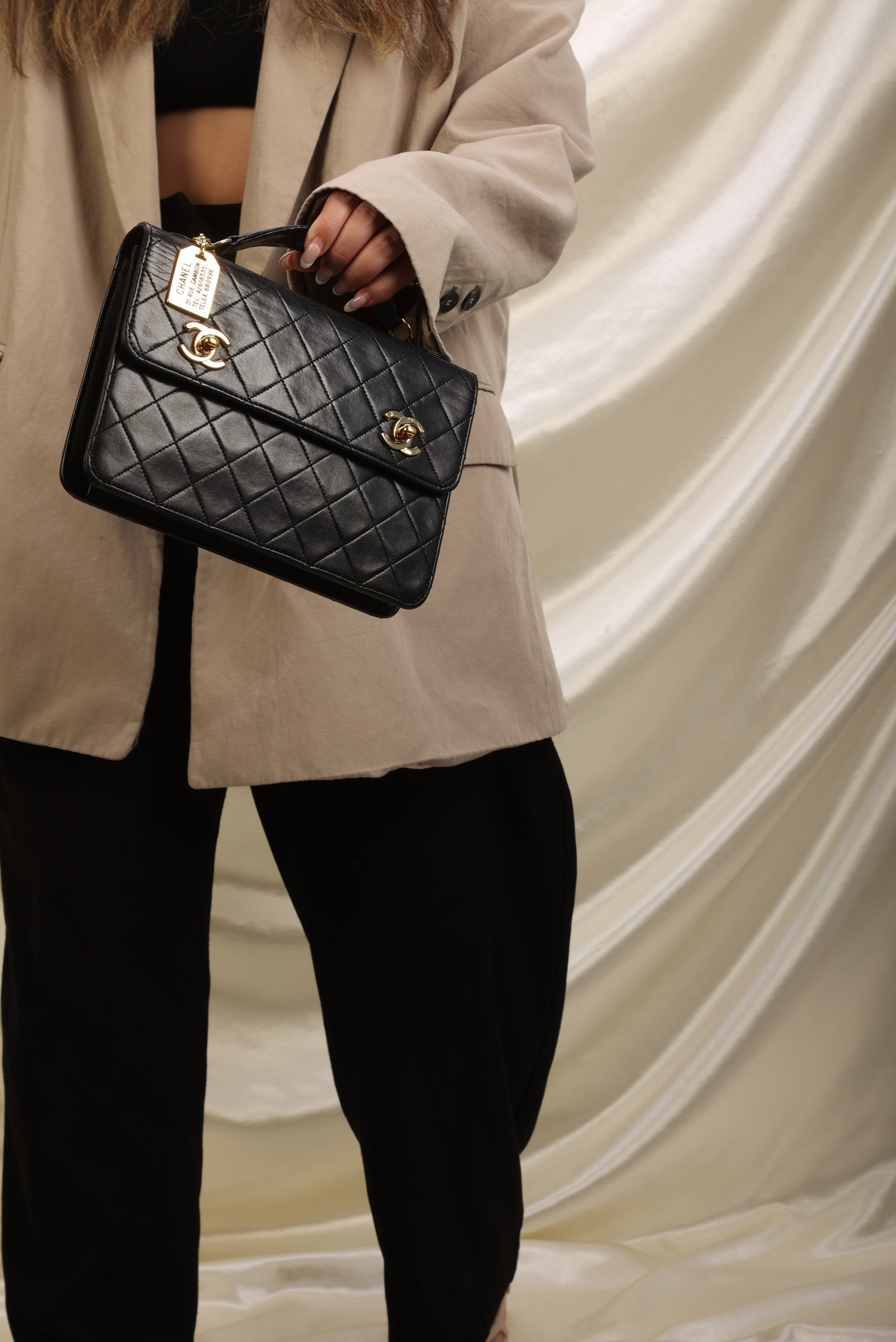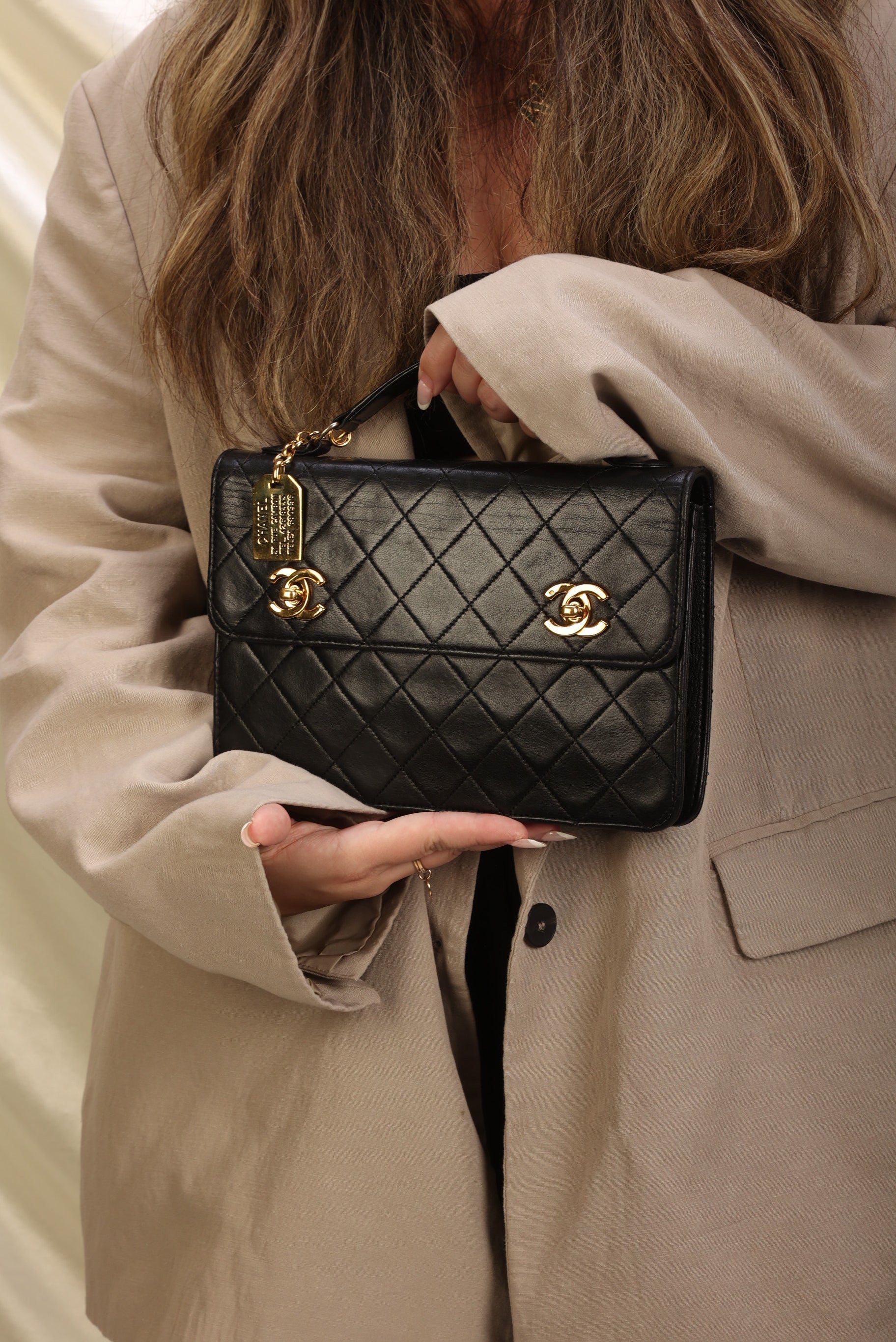 Extremely Rare Chanel 1989 Lambskin Double Turnlock Briefcase Bag