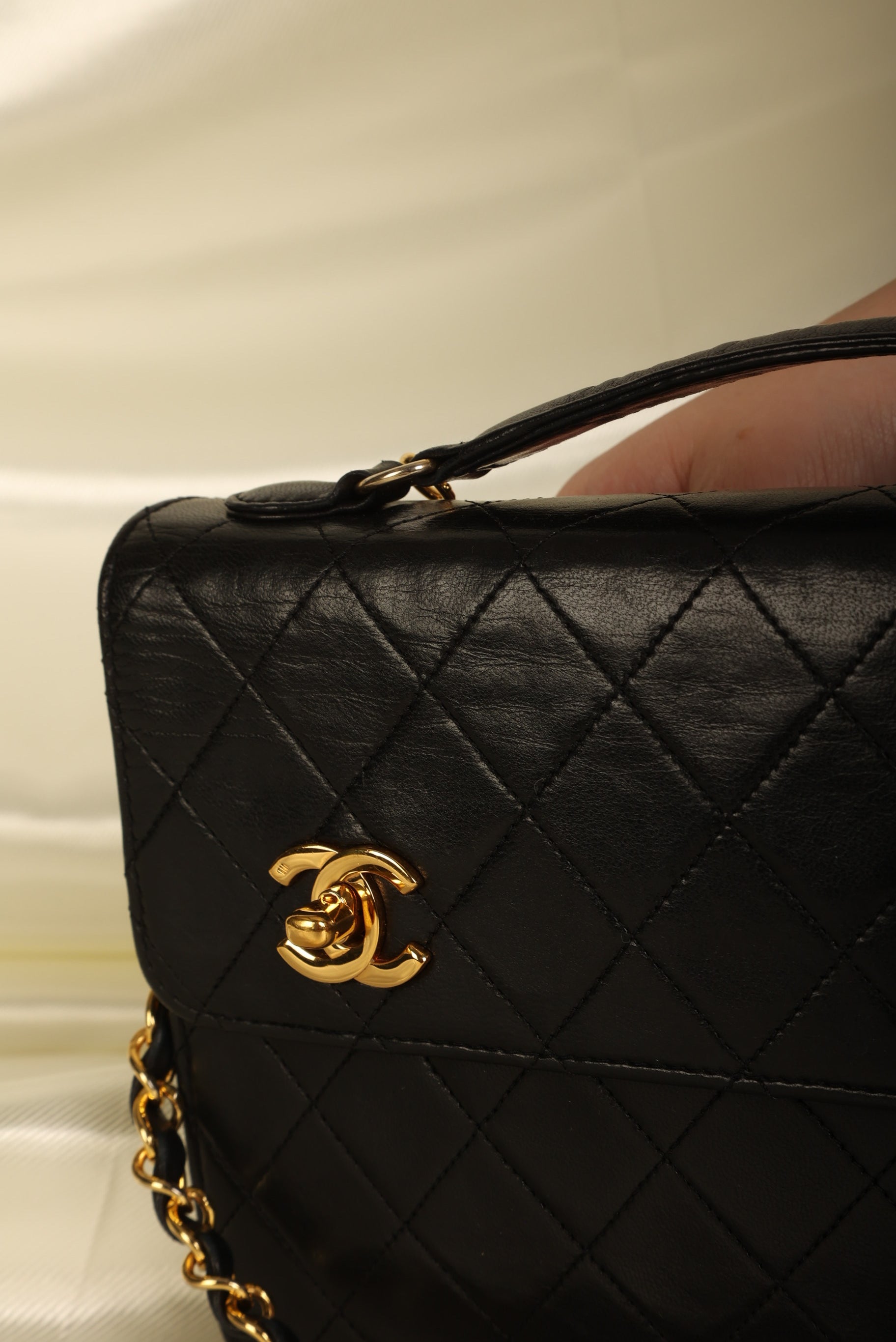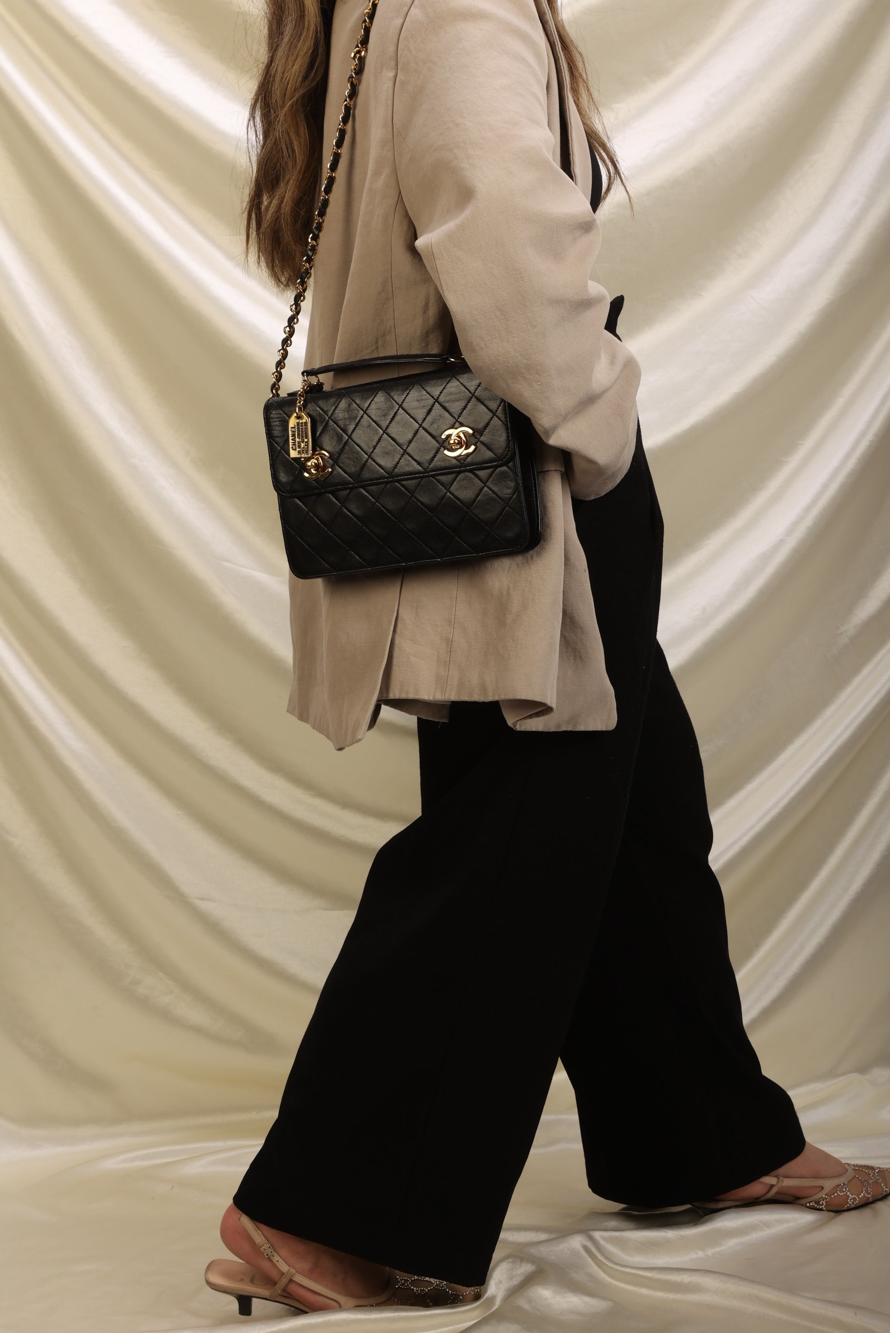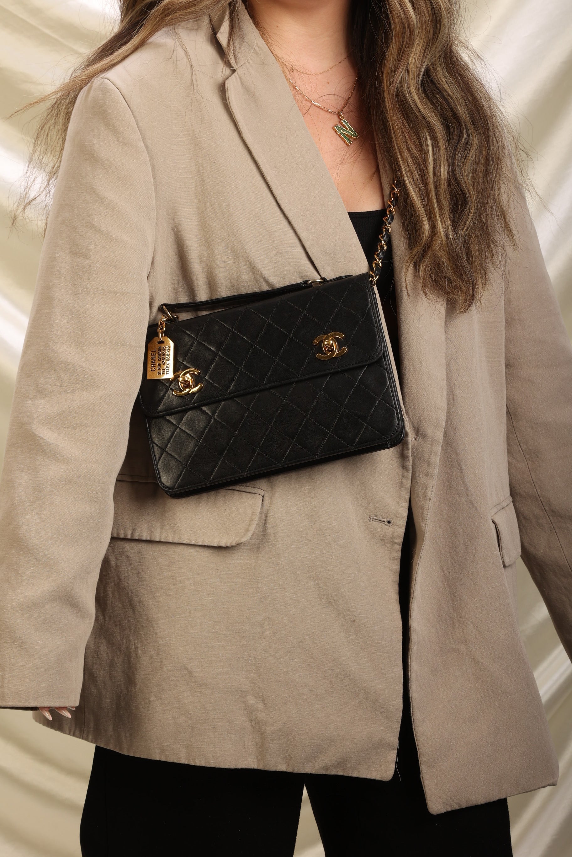 Extremely Rare Chanel 1989 Lambskin Double Turnlock Briefcase Bag