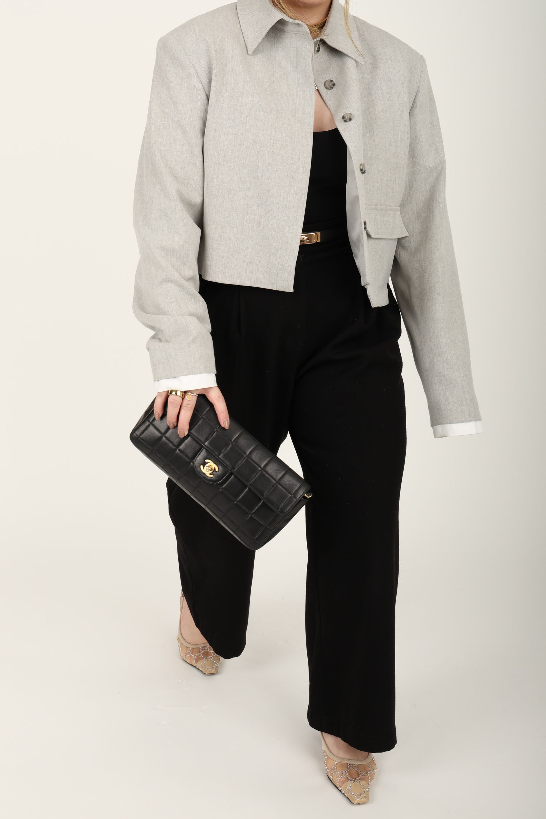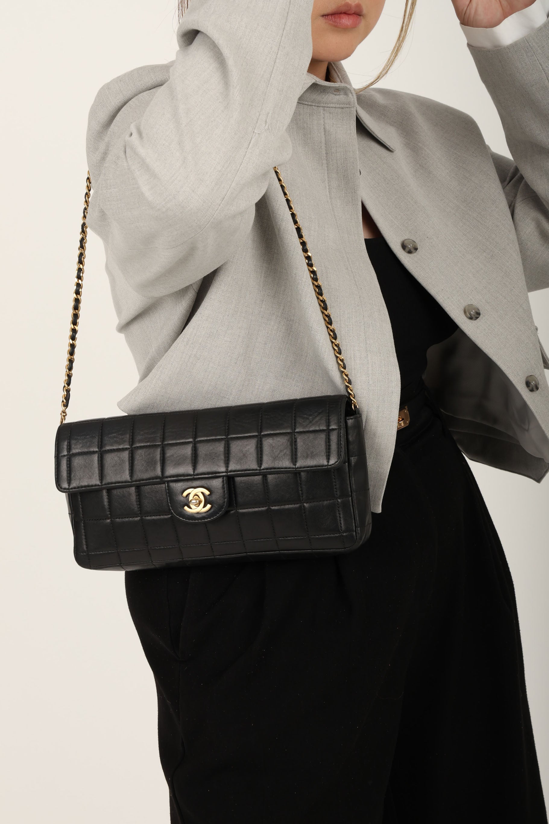 This is the perfect lambskin Chanel bag for someone just starting out with their collection!! The East West bag style is making a comeback, and is perfect to wear year round!