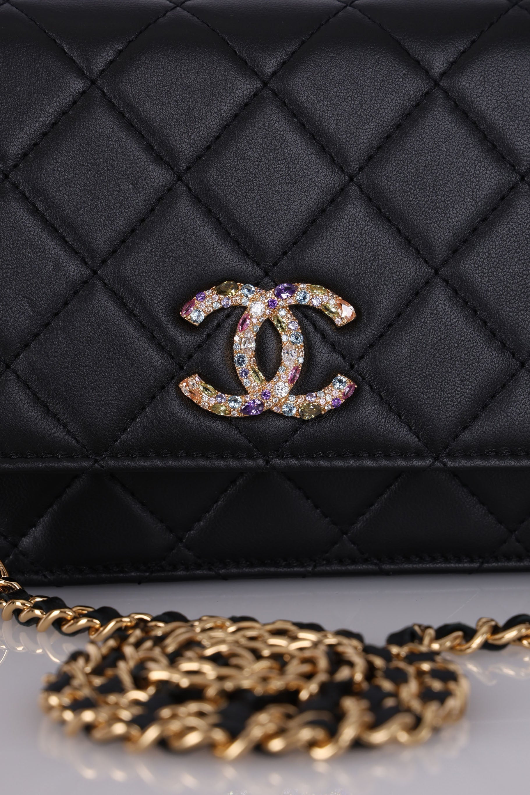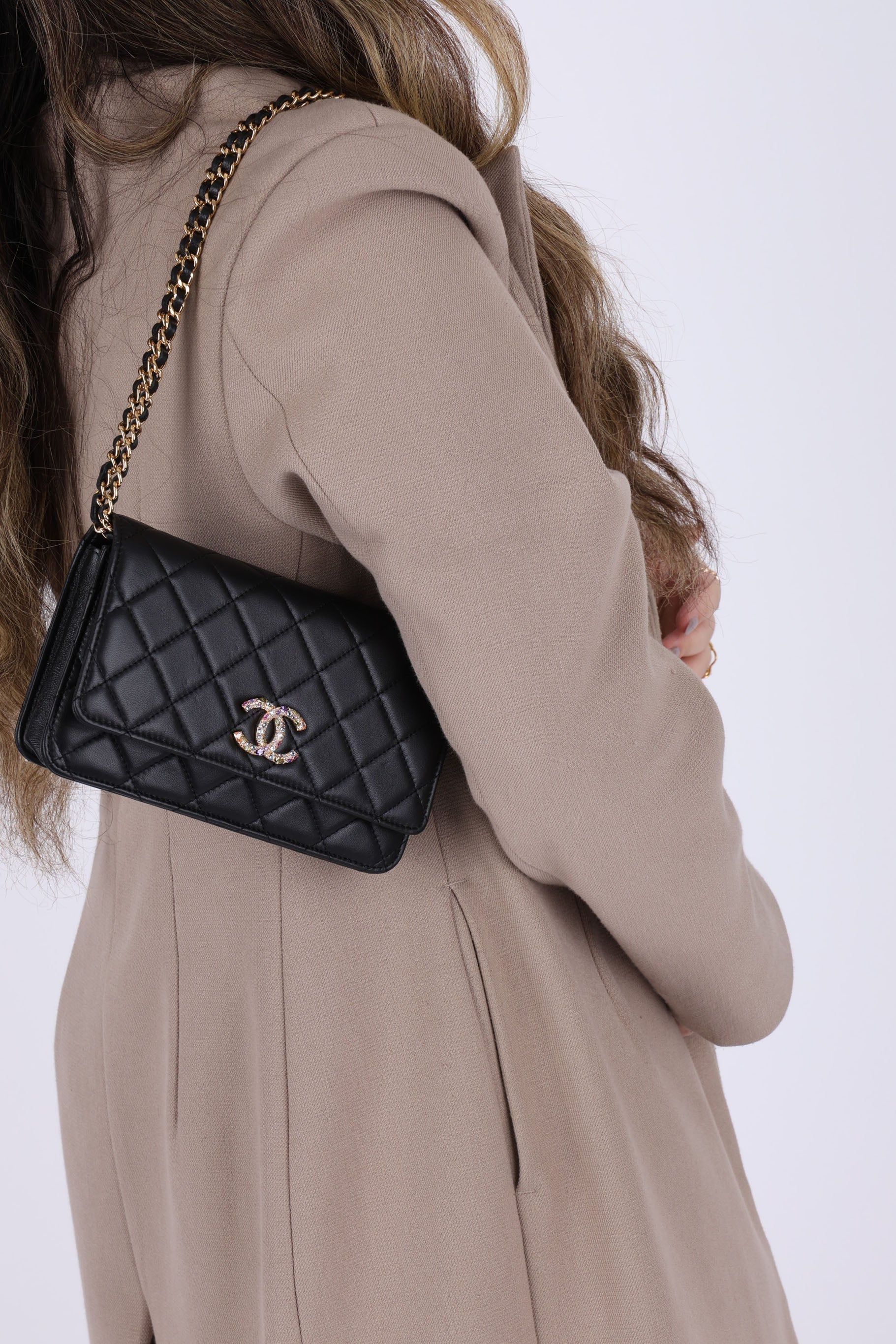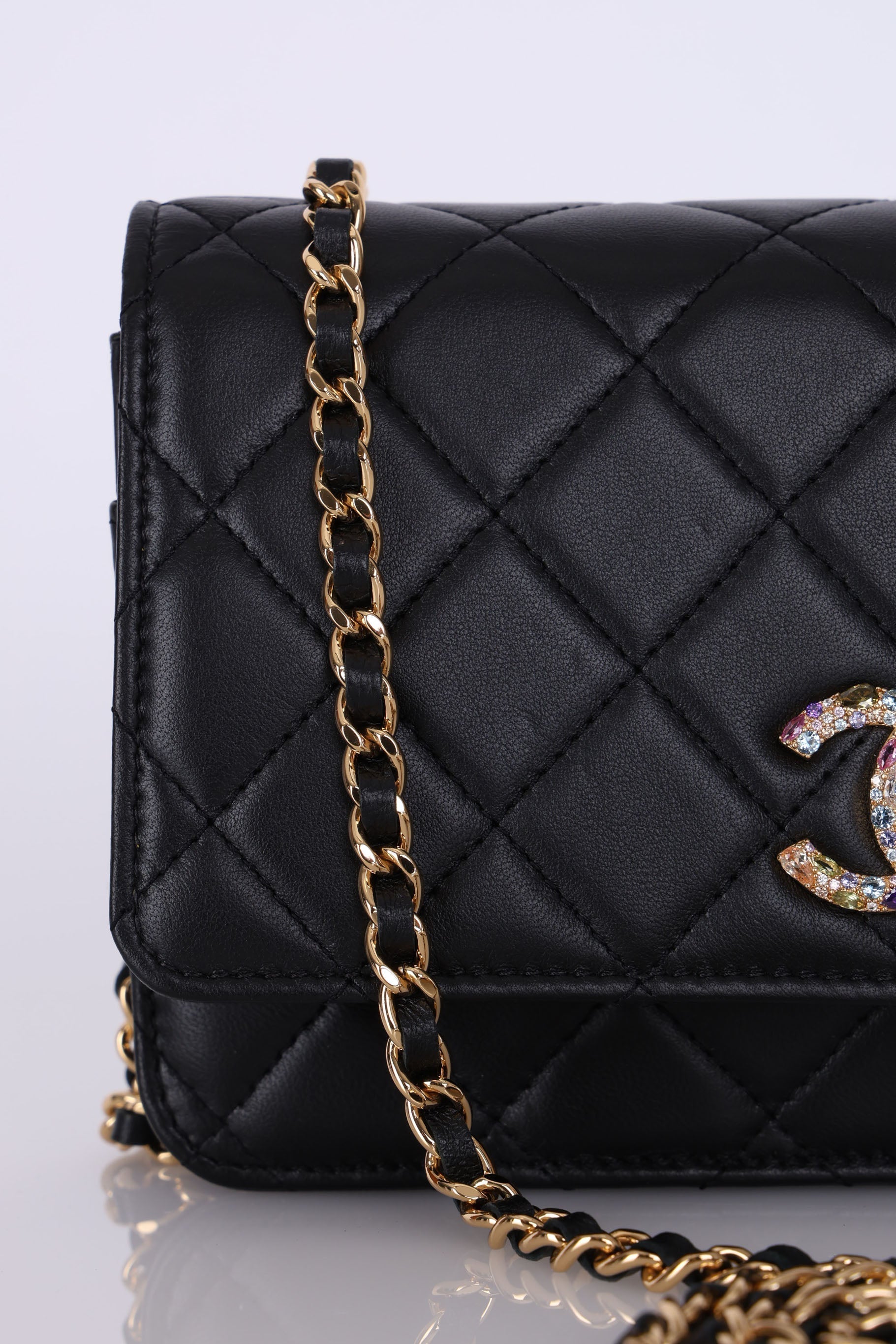 Dropping in the shop is a chic Chanel Lambskin Wallet on Chain with stunning multi-colored cubic zirconia crystals!?The perfect bag to transition from day to night activities.