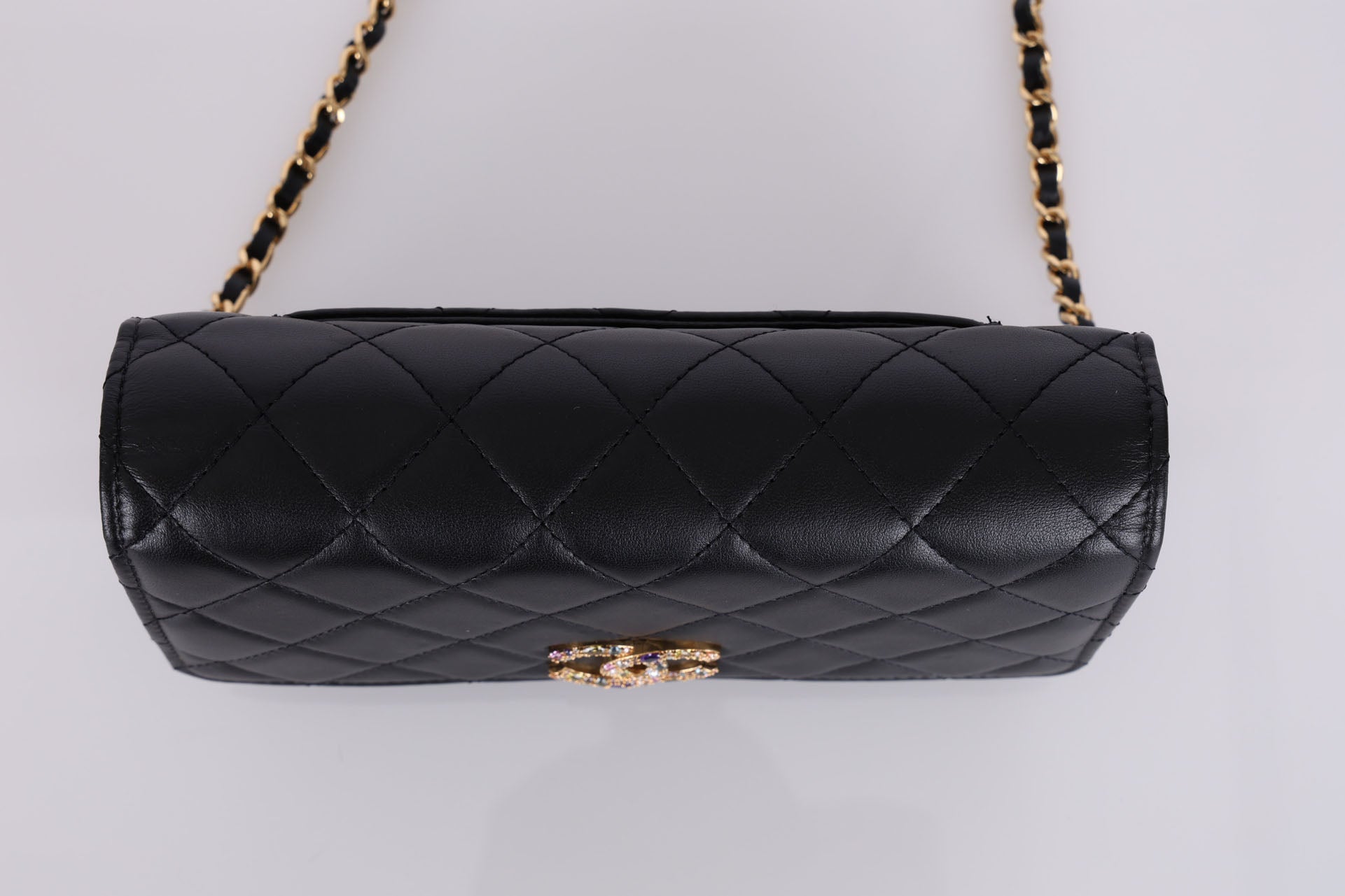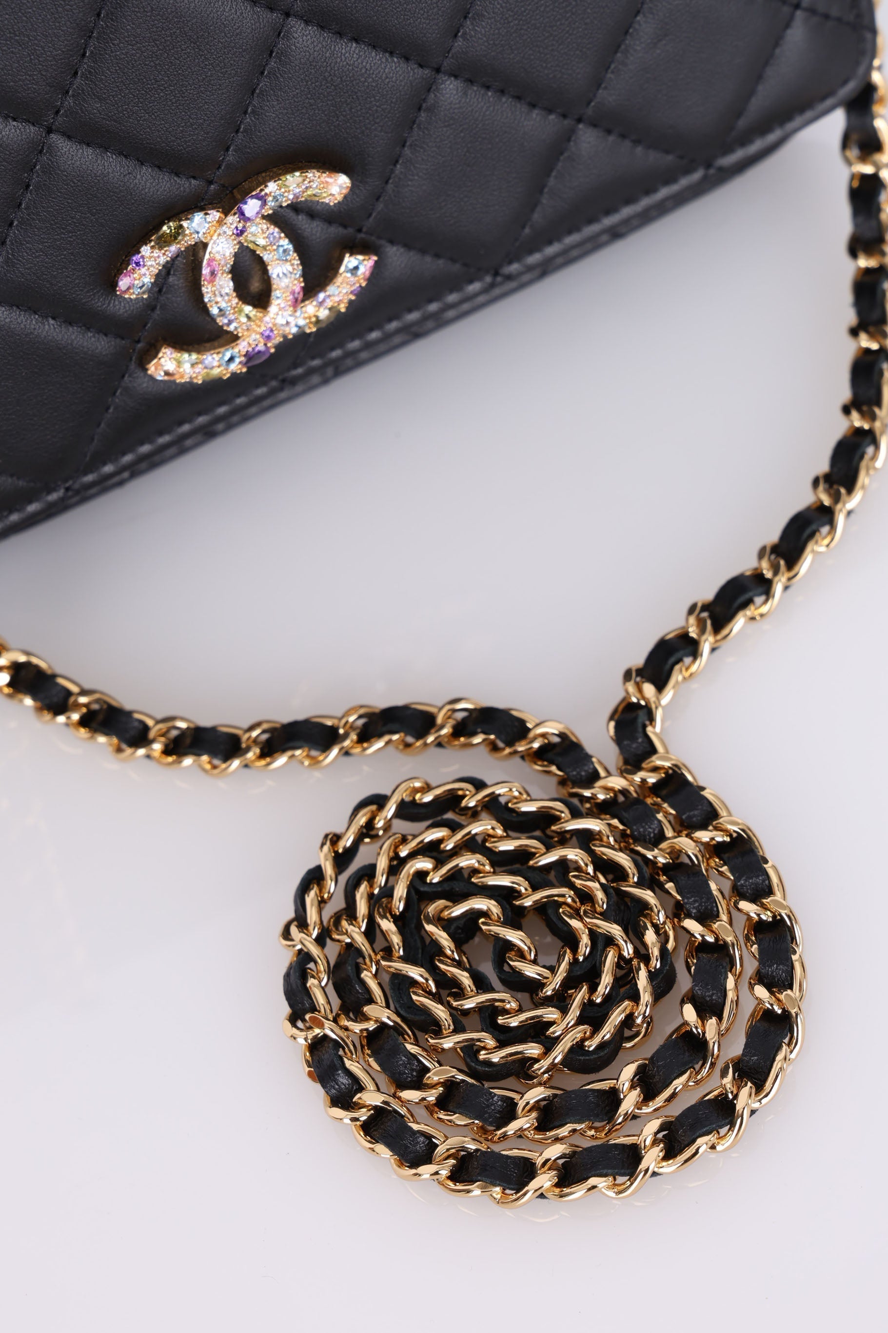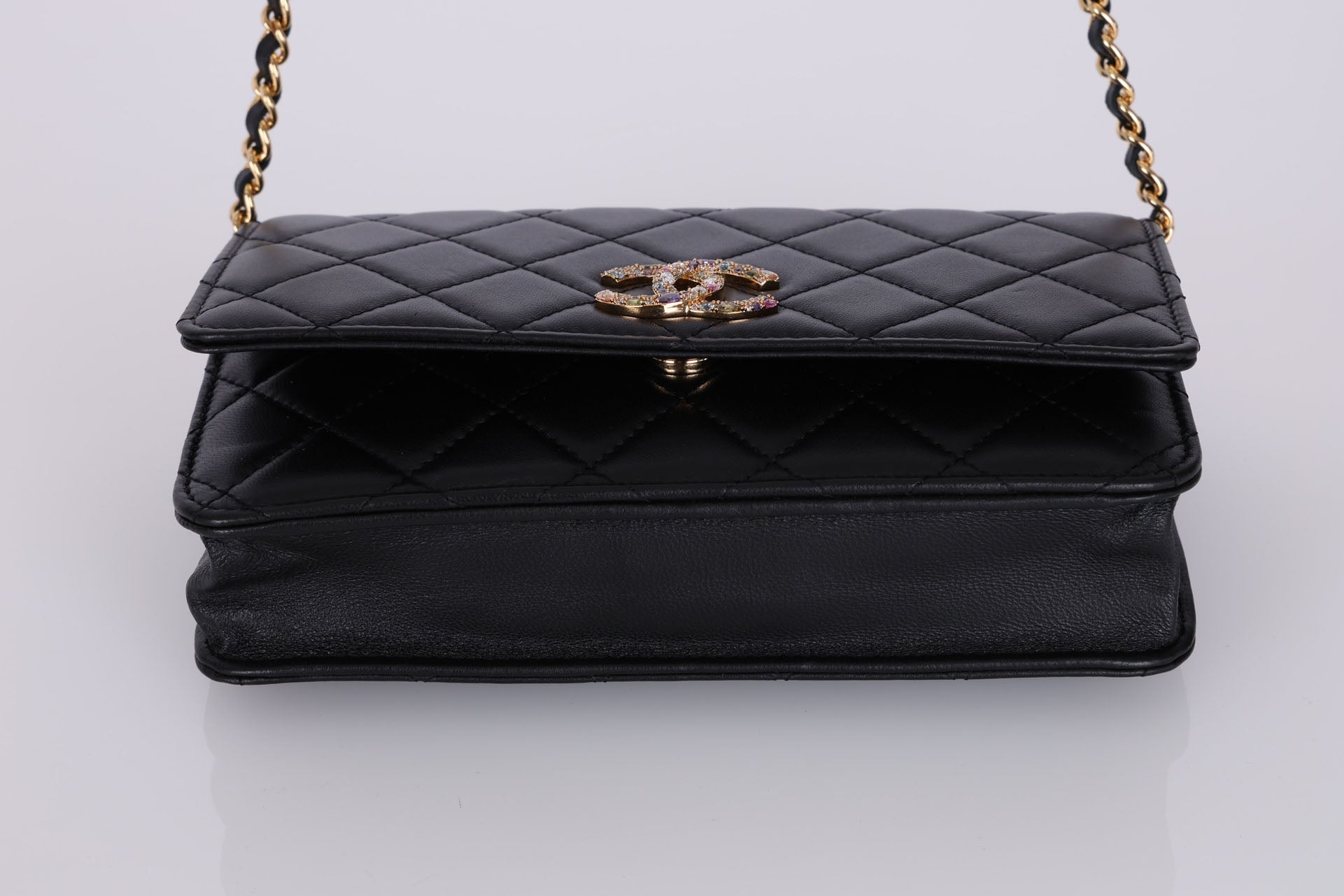 Dropping in the shop is a chic Chanel Lambskin Wallet on Chain with stunning multi-colored cubic zirconia crystals!?The perfect bag to transition from day to night activities.