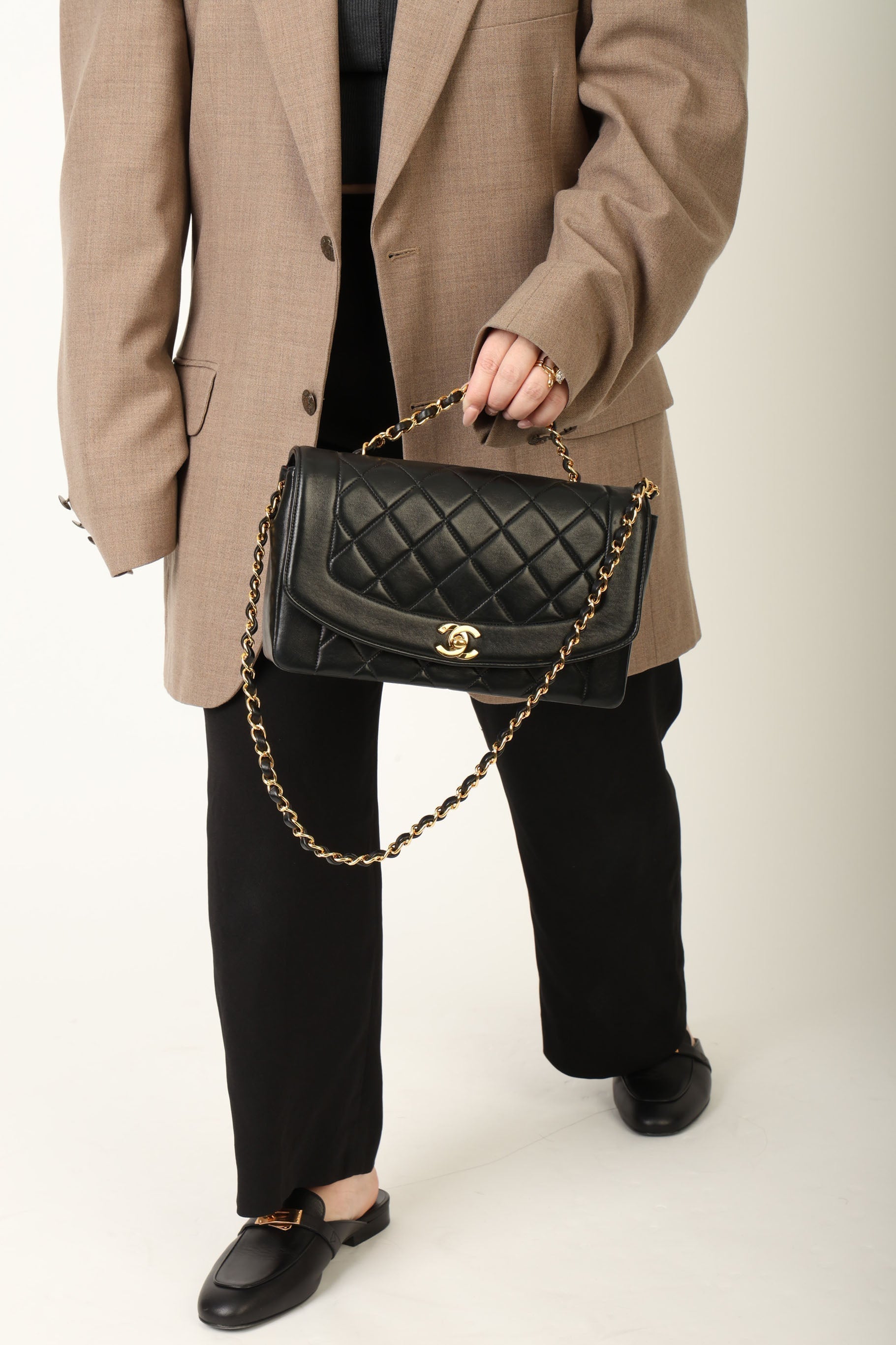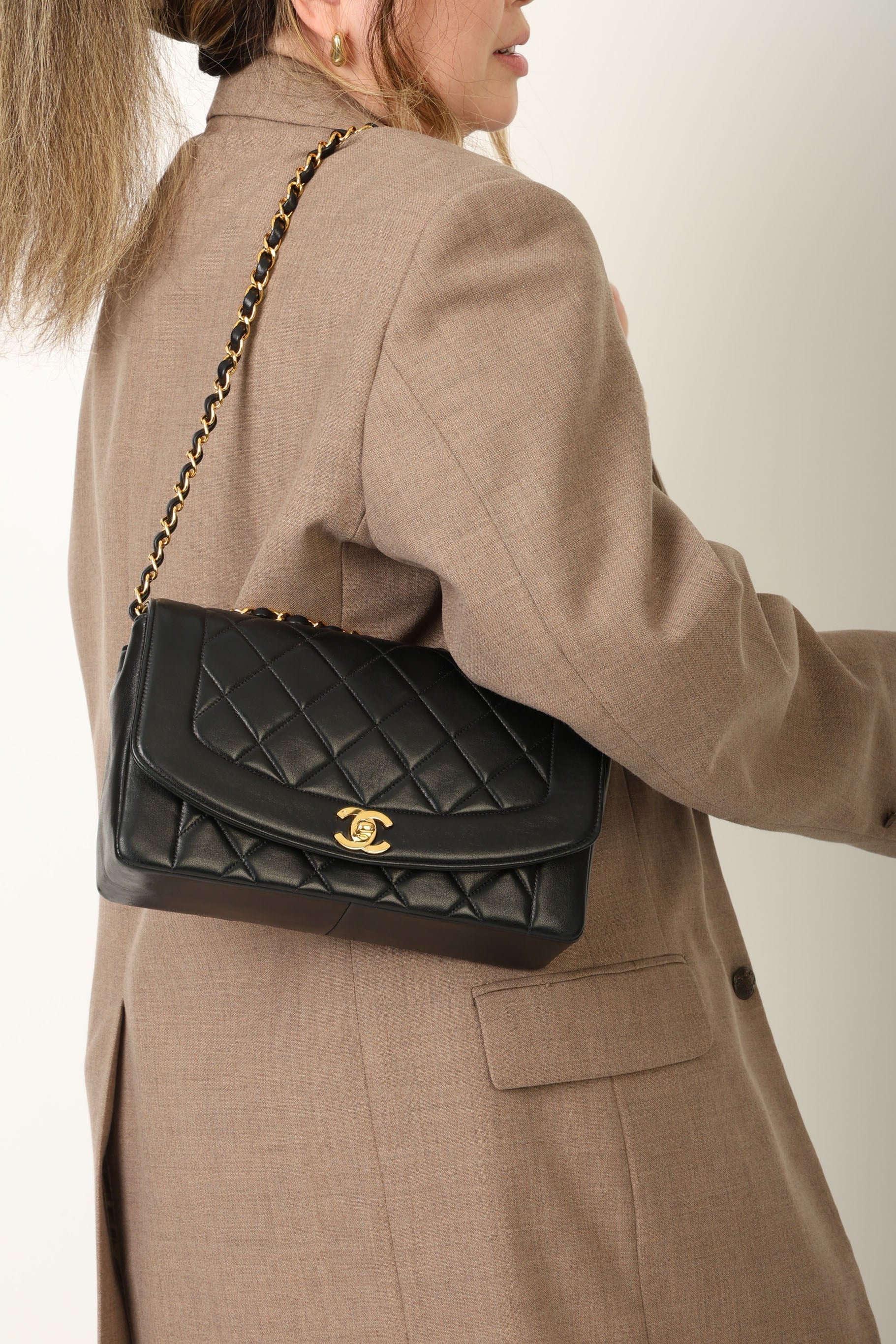Named after one of the most iconic woman in history, this Chanel truly carries on the history and elegance of Princess Diana. Crafted from the finest black lambskin leather, it's perfect for any occasion, while the signature Chanel diamond quilted pattern adds a touch of luxury and elegance.