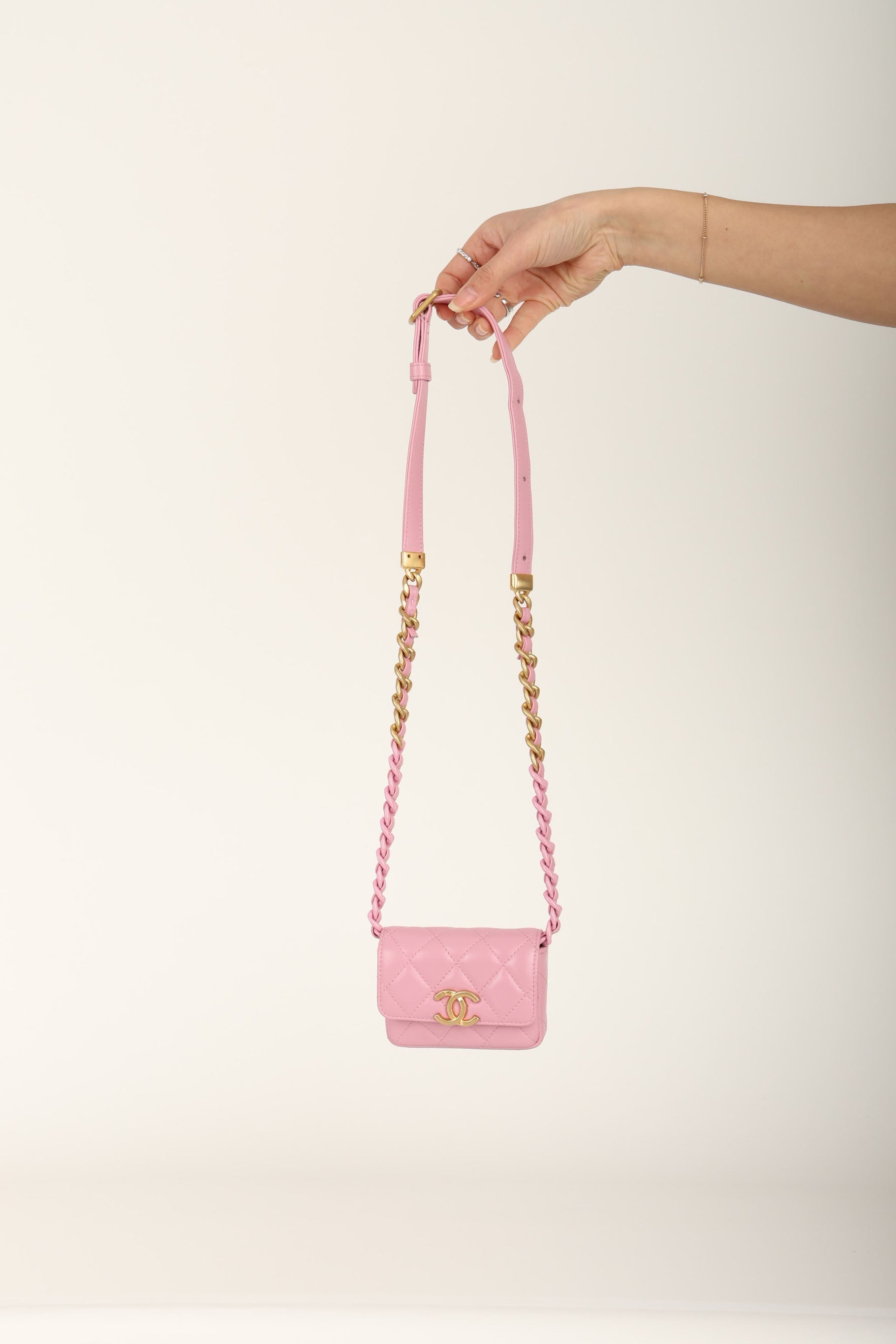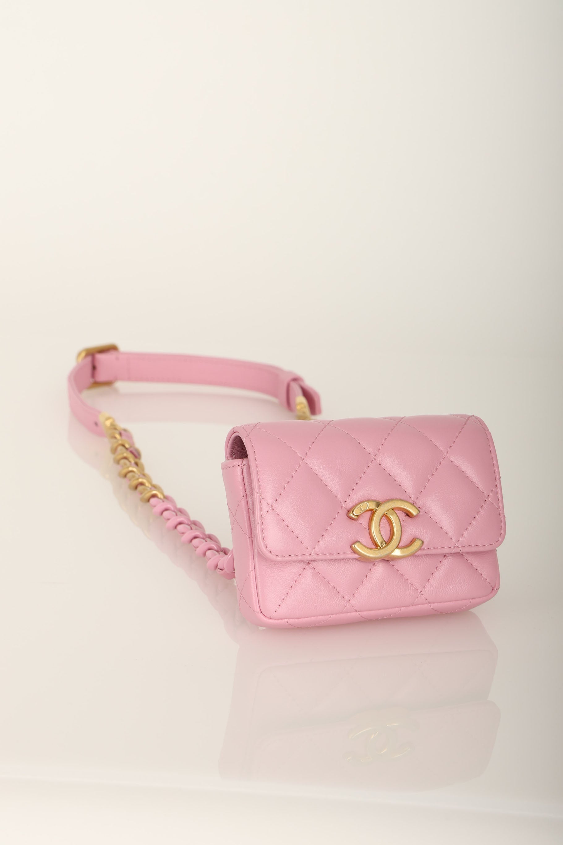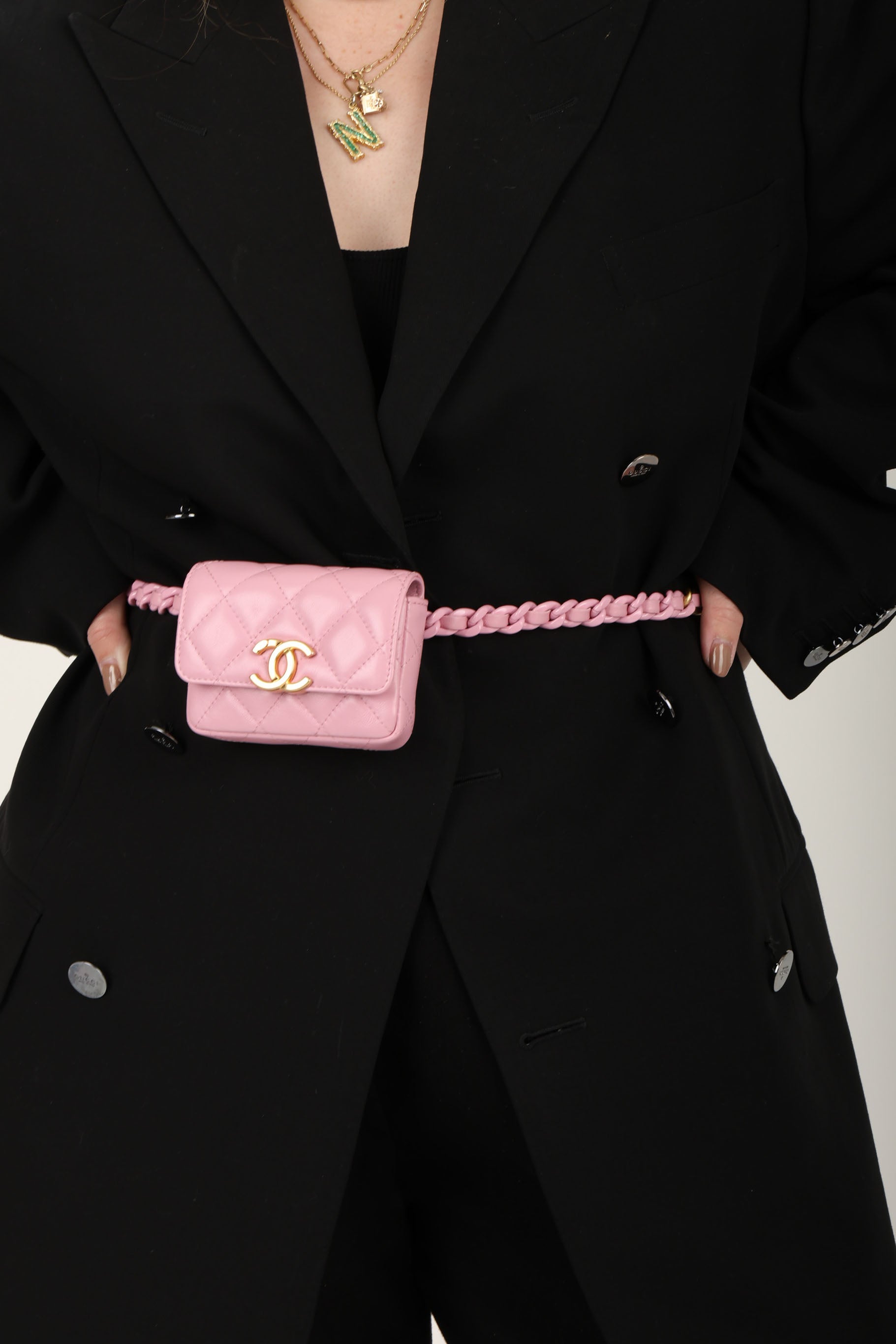 Dropping a coveted Chanel lambskin mini belt bag, but in a newer style! Wear this little cutie for a pop of color on your everyday errands, or take with you on your upcoming travel plans!