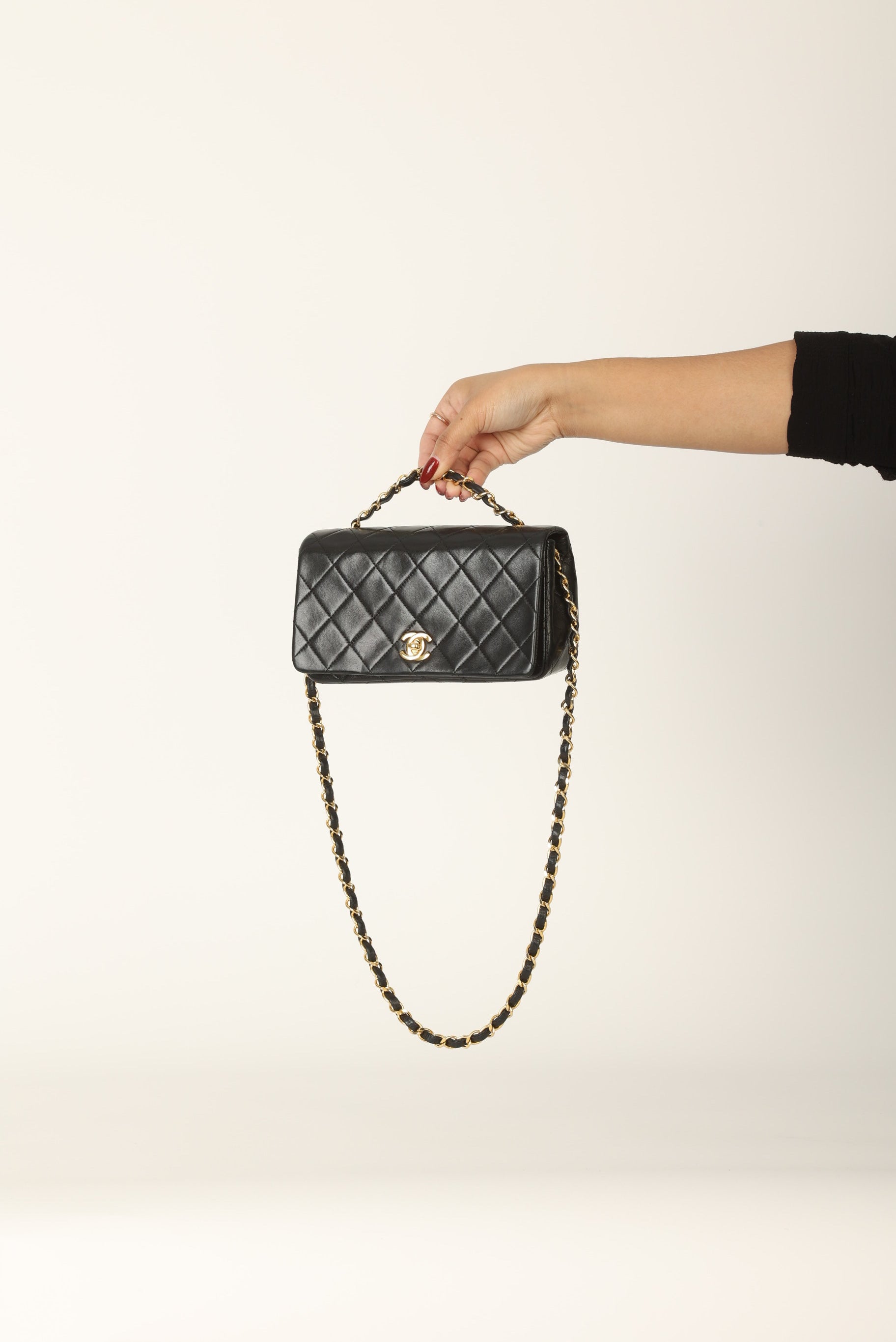 Dropping in the shop is a Chanel Lambskin Mini Full Flap in black with 24k gold plated hardware! Such a versatile piece that can be as a long shoulder or crossbody bag. You can even play around with the straps to wear the piece as a short or top handle bag. You can fit your phone, card holder, keys, and a lippie.?