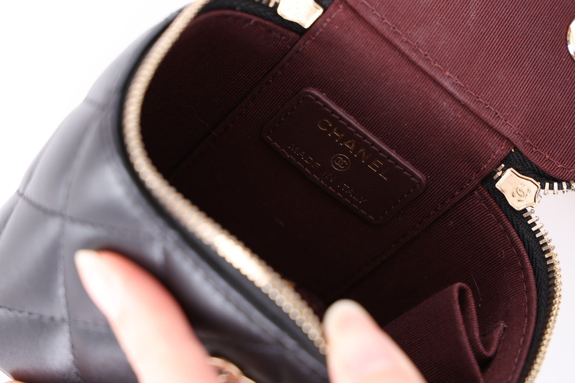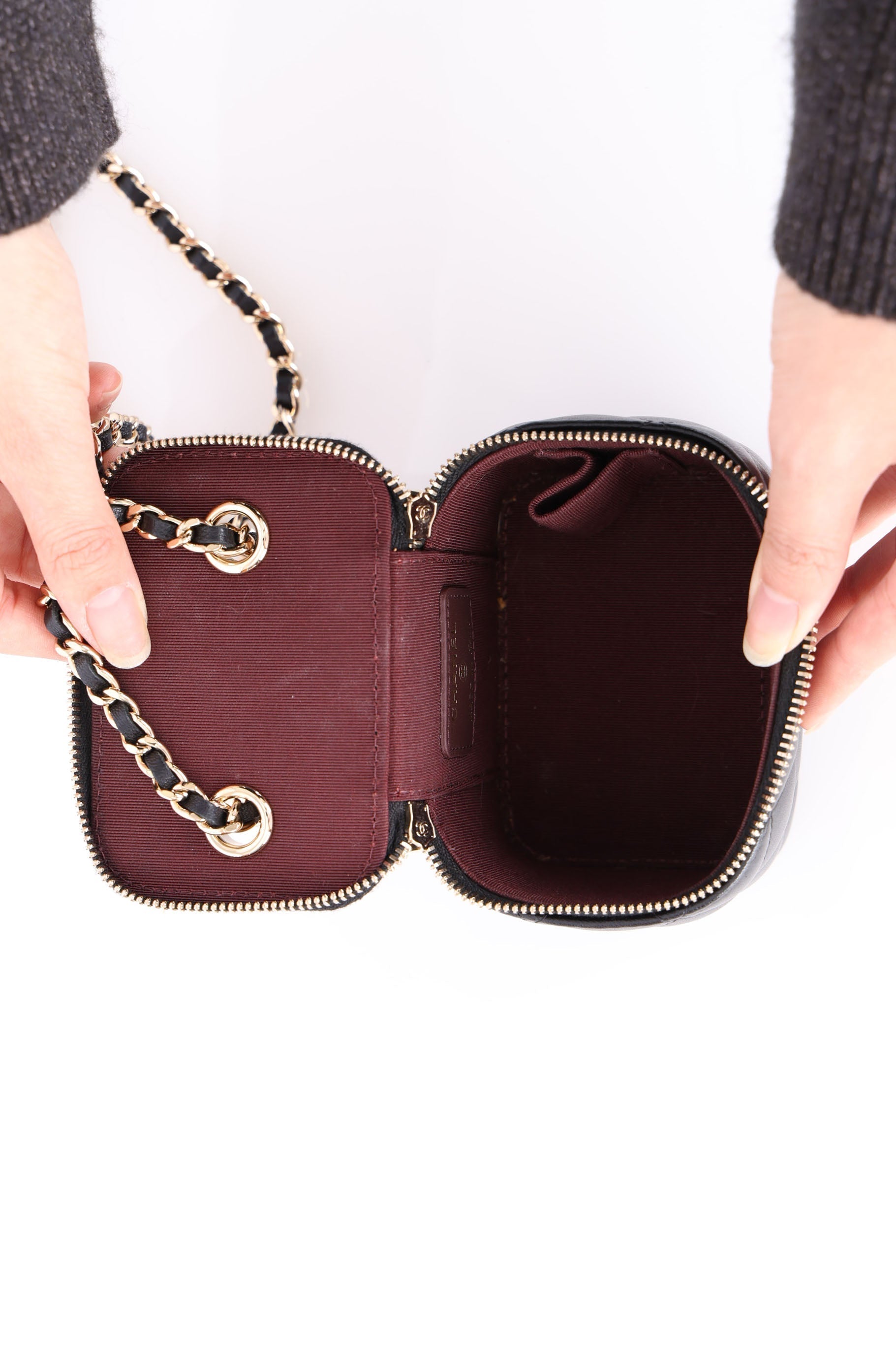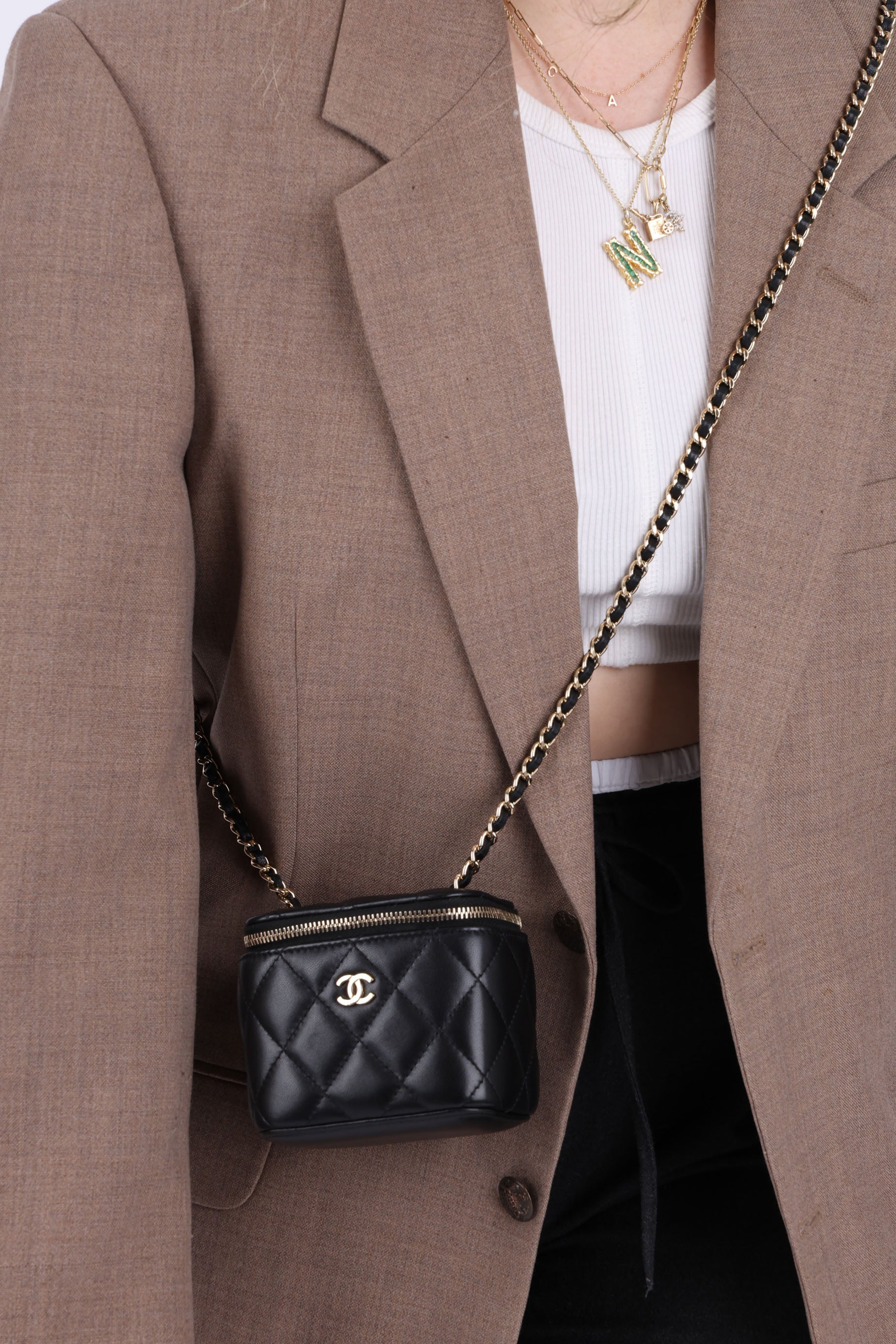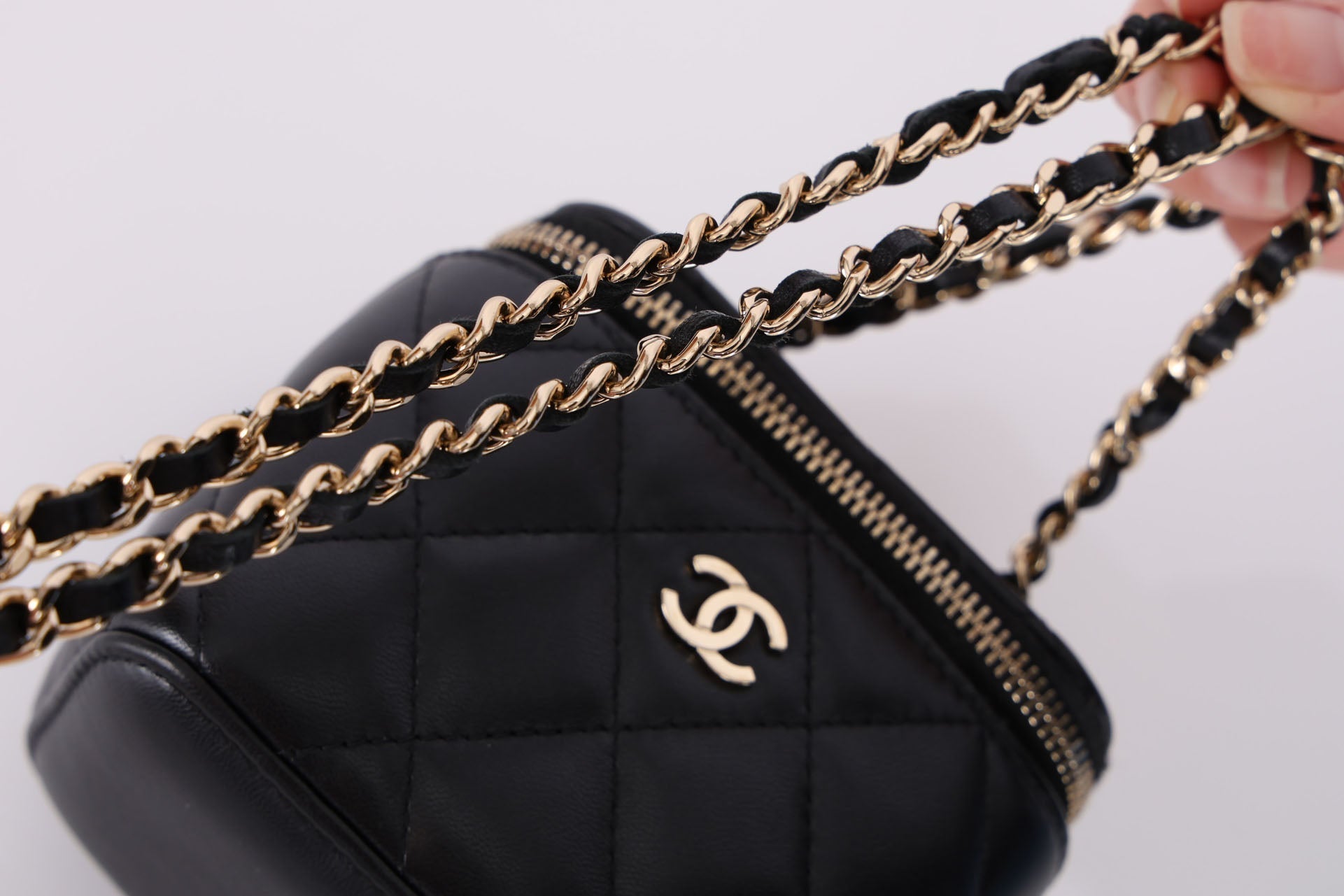 Presenting the cutest Chanel Lambskin mini vanity! The classic lambskin Chanel look but as a little vanity - can definitely be used for any season!