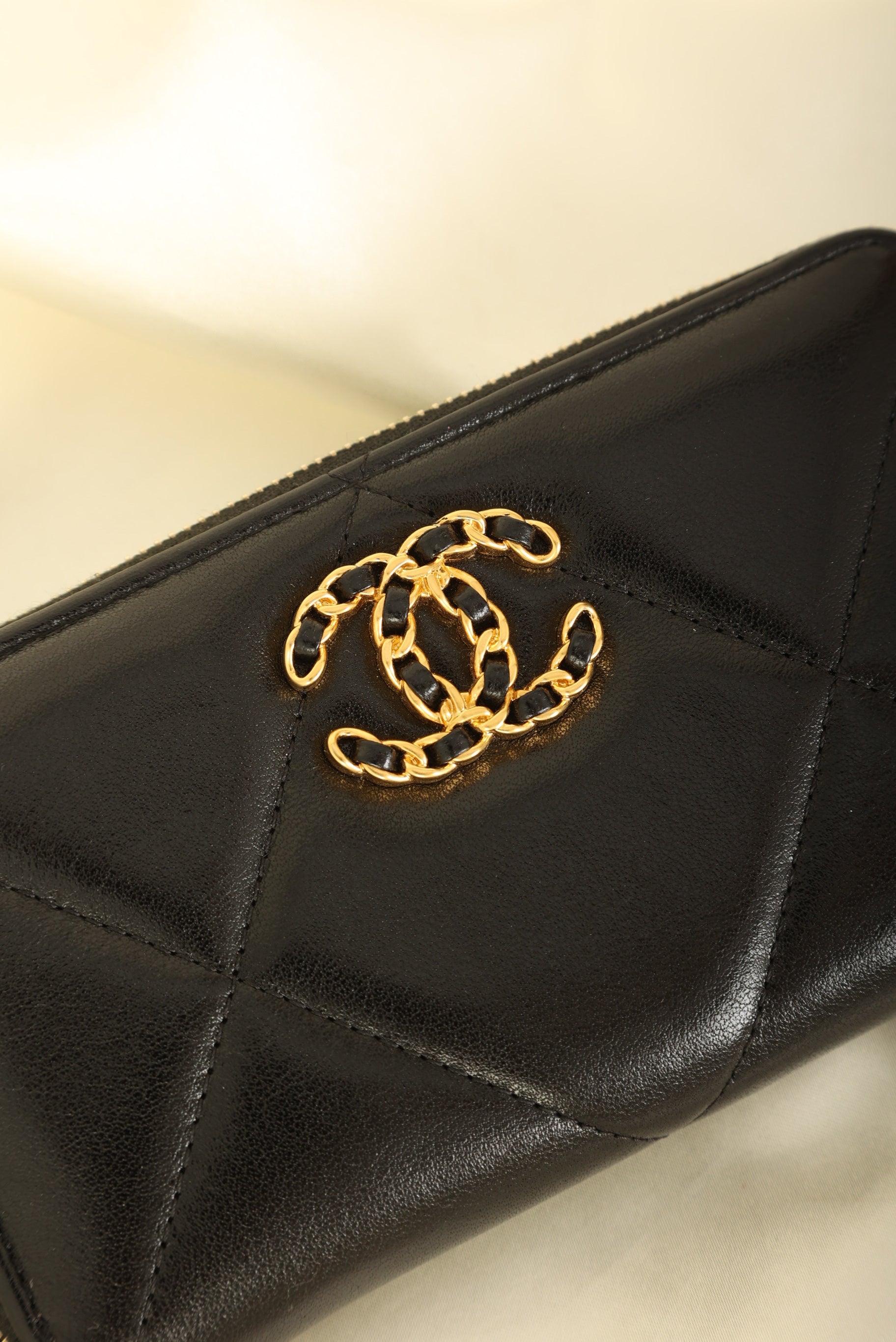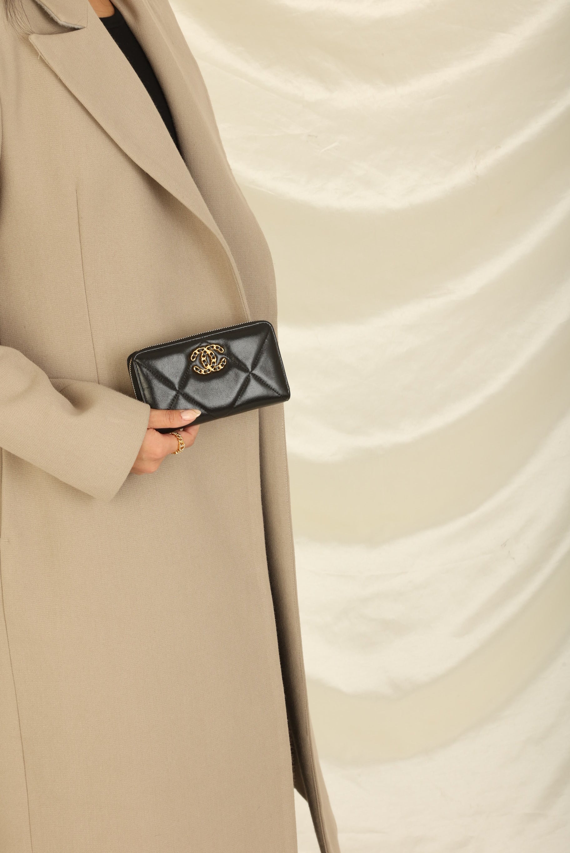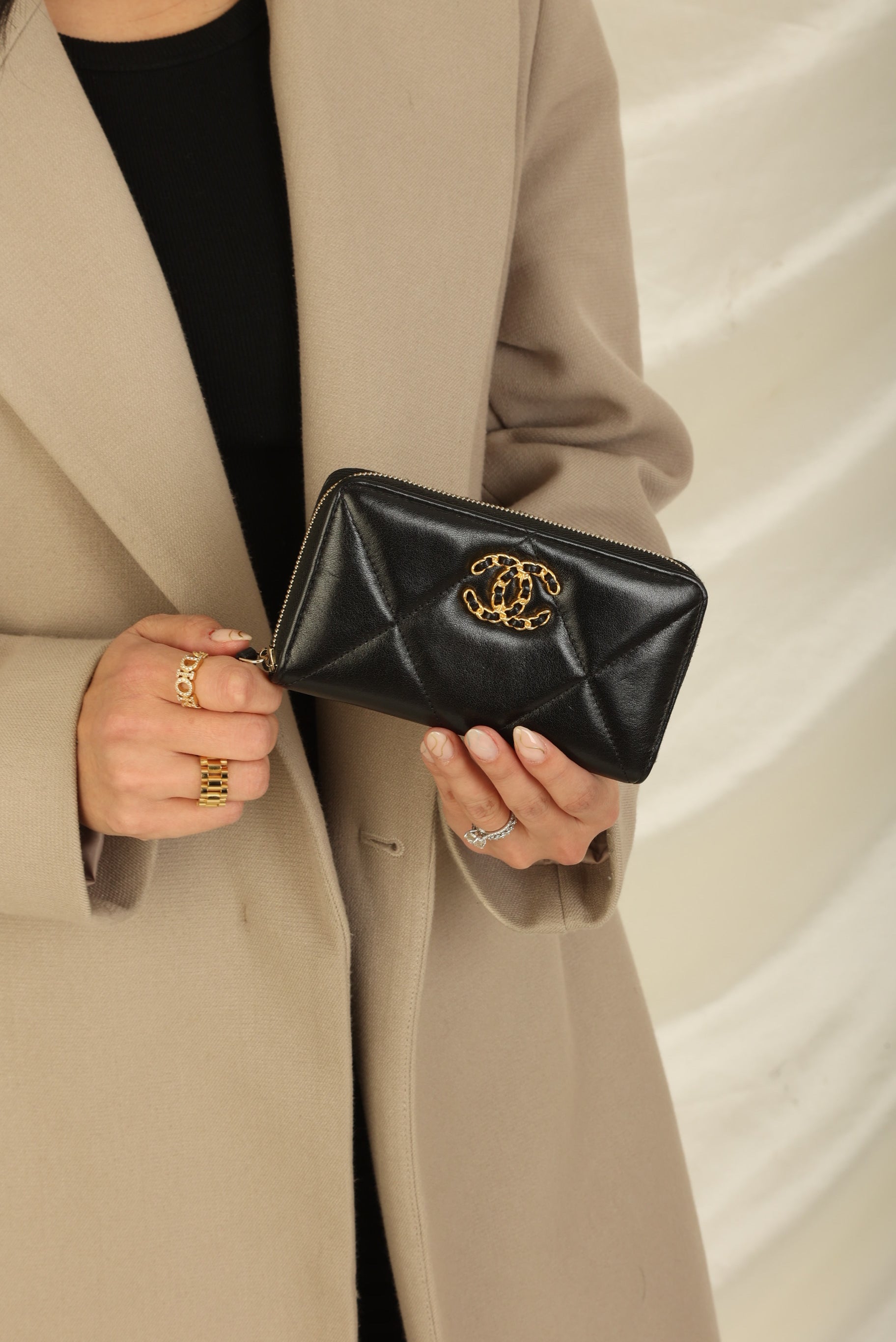 The Chanel 19 Lambskin Zip Wallet is the perfect blend of contemporary and elegance. The inside features a vibrant red with multiple slots for your cards and three compartments, including a zipped compartment. Such a great everyday wallet to throw in your bag or use on its own if you're a minimalist girlie.?