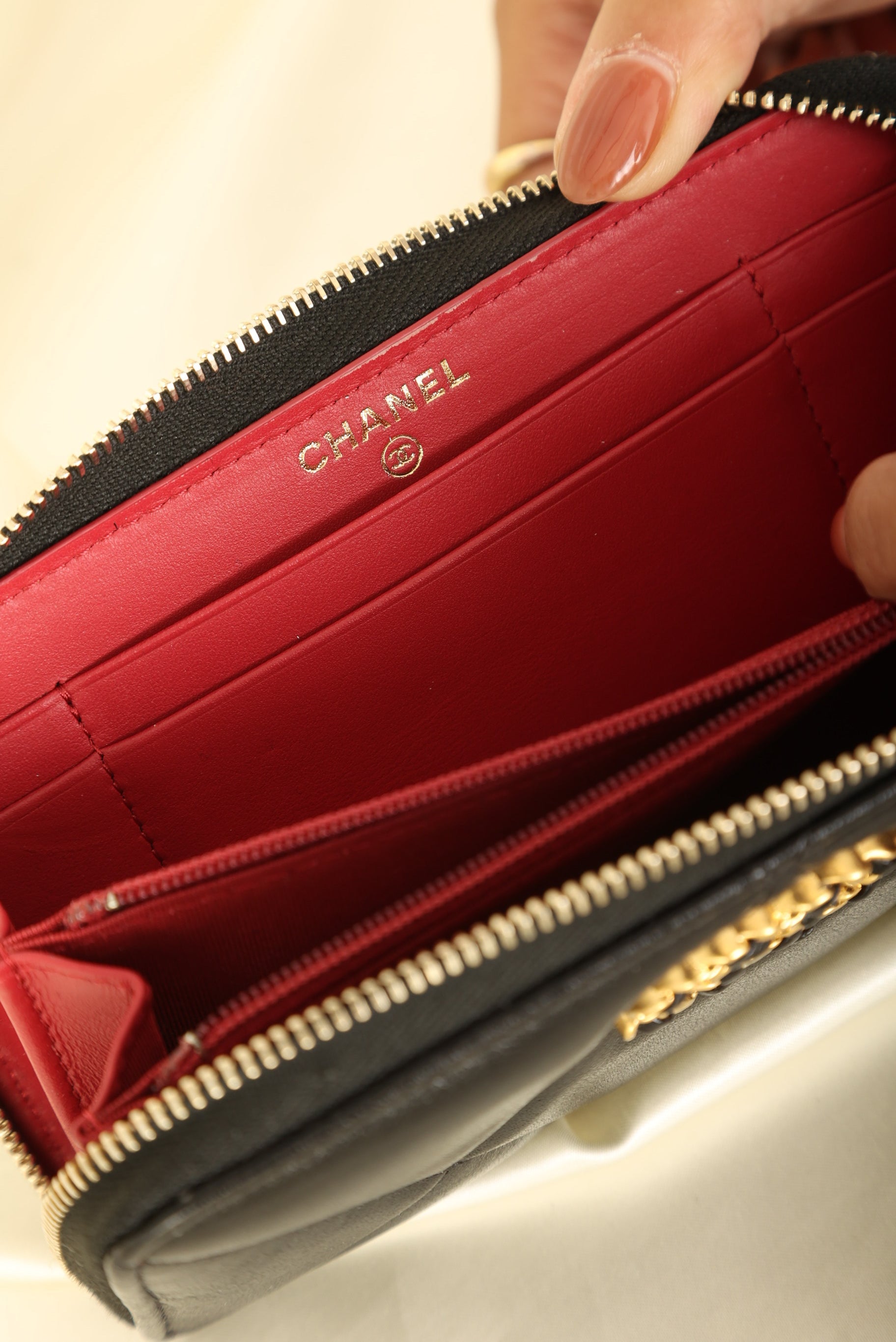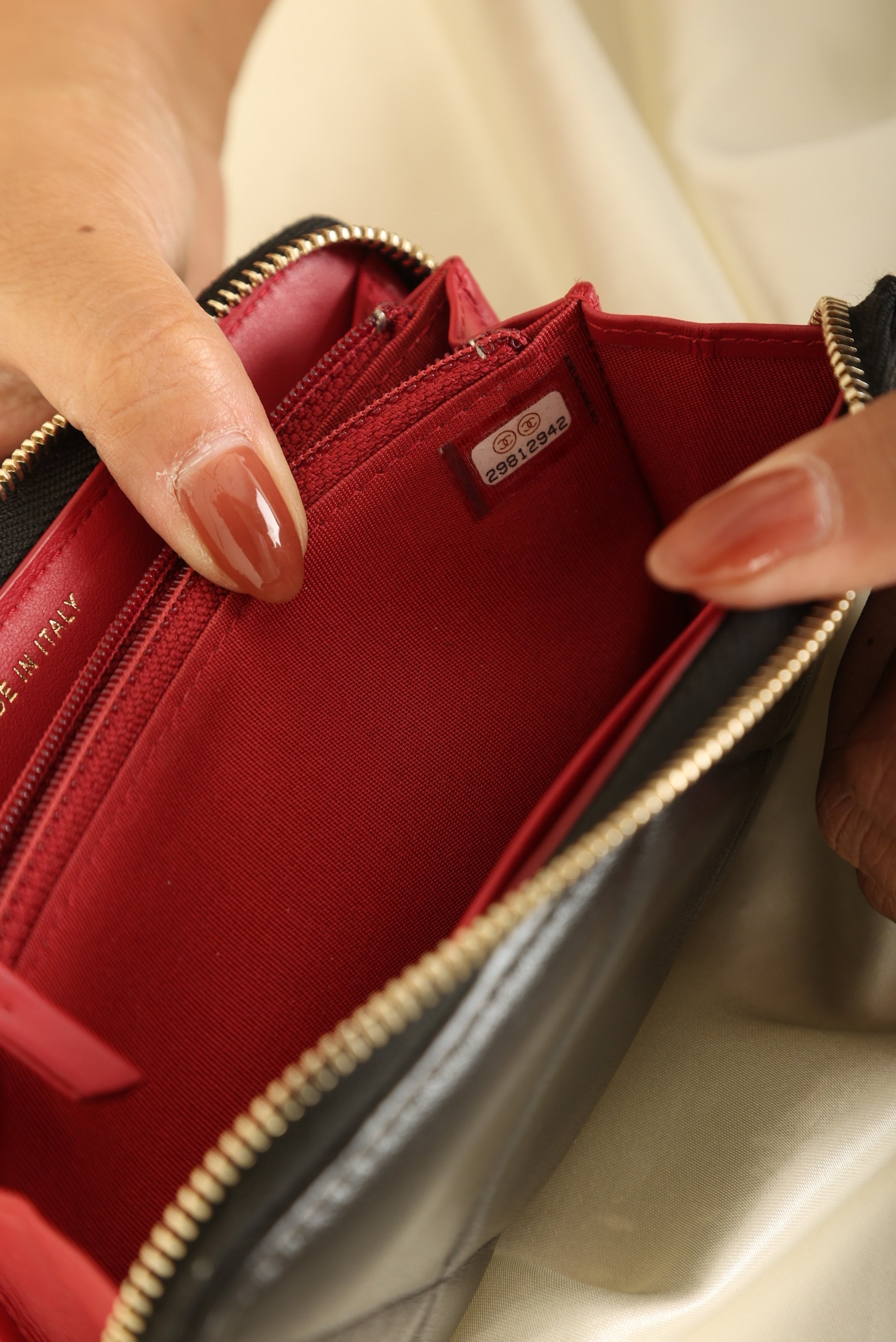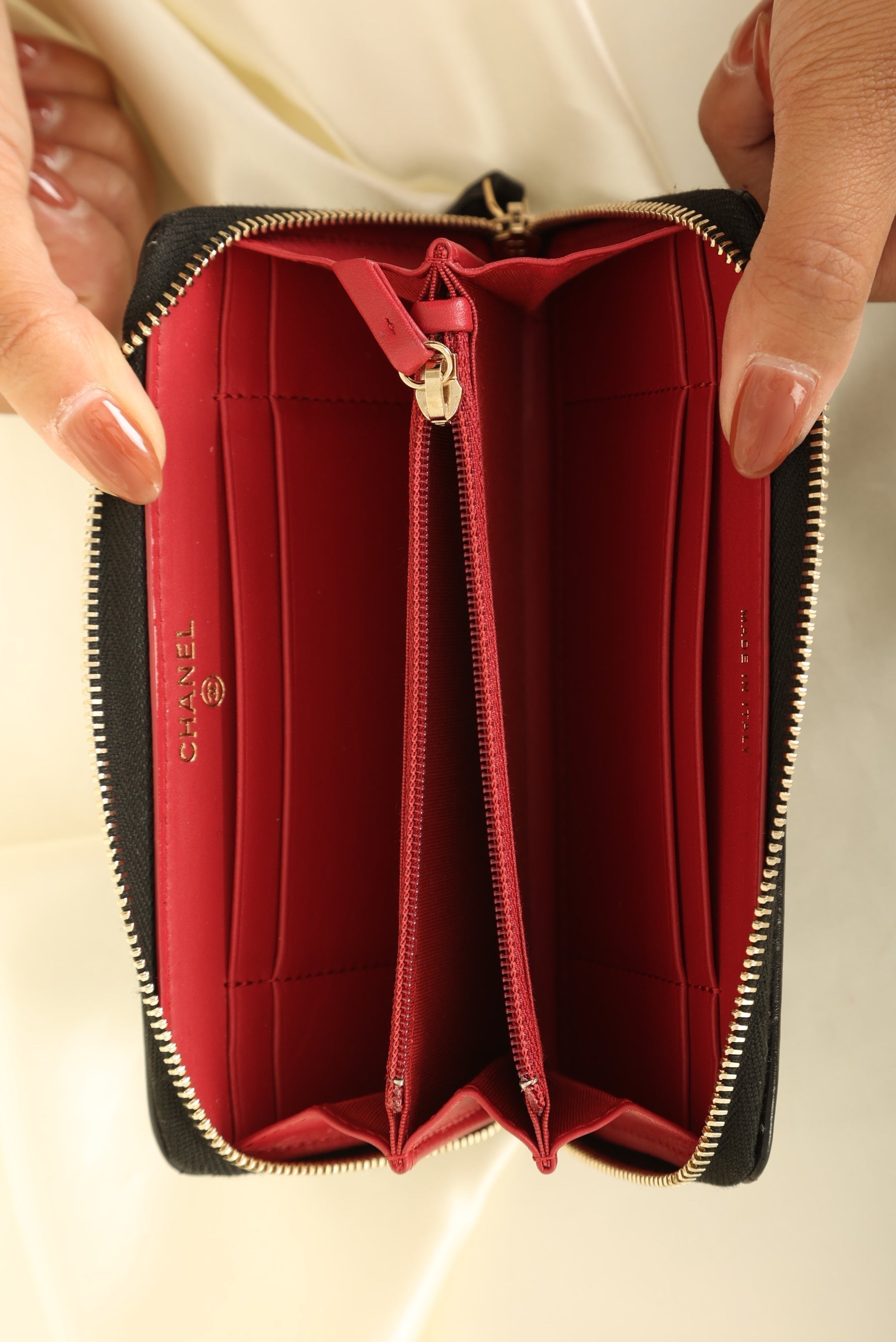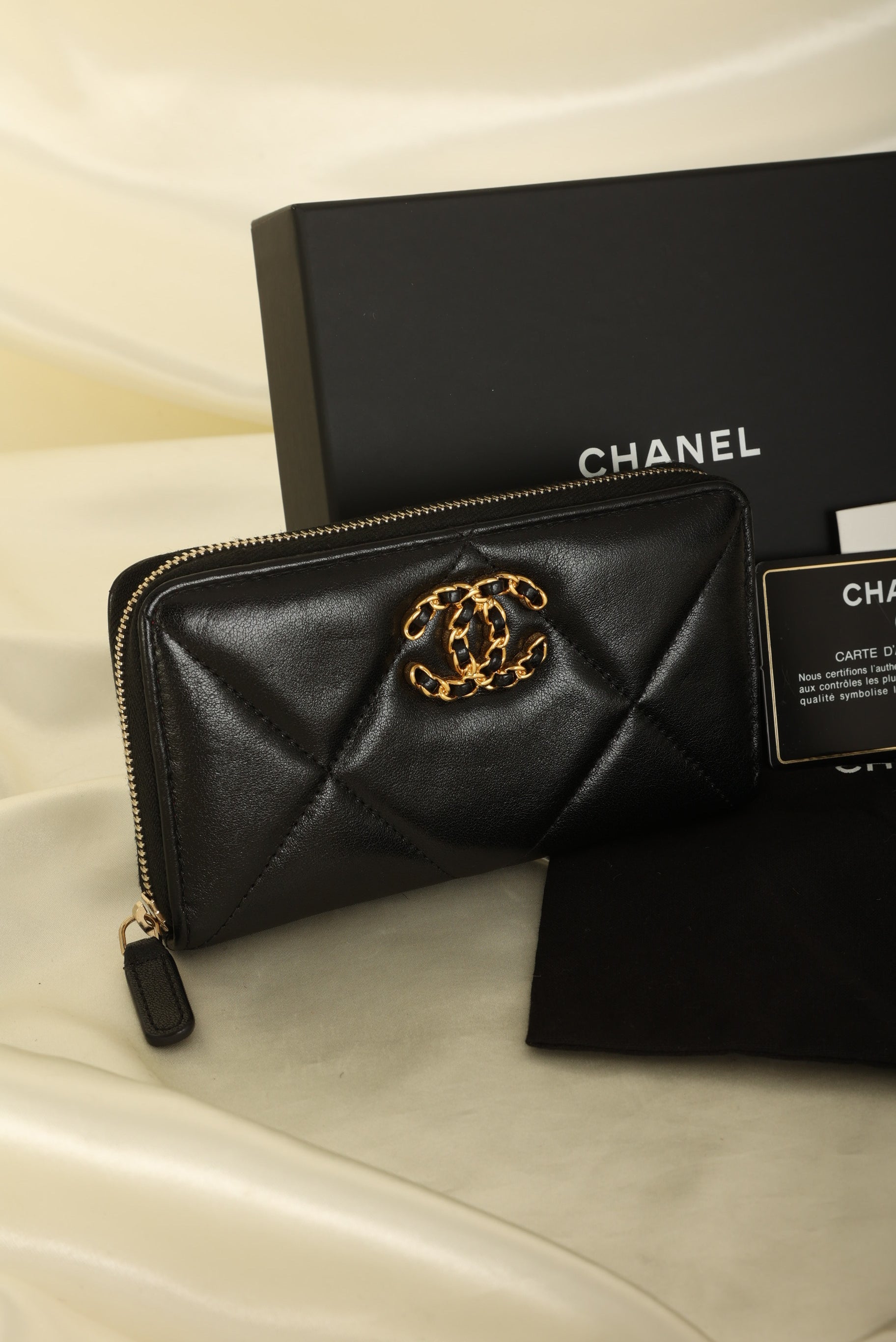 The Chanel 19 Lambskin Zip Wallet is the perfect blend of contemporary and elegance. The inside features a vibrant red with multiple slots for your cards and three compartments, including a zipped compartment. Such a great everyday wallet to throw in your bag or use on its own if you're a minimalist girlie.?