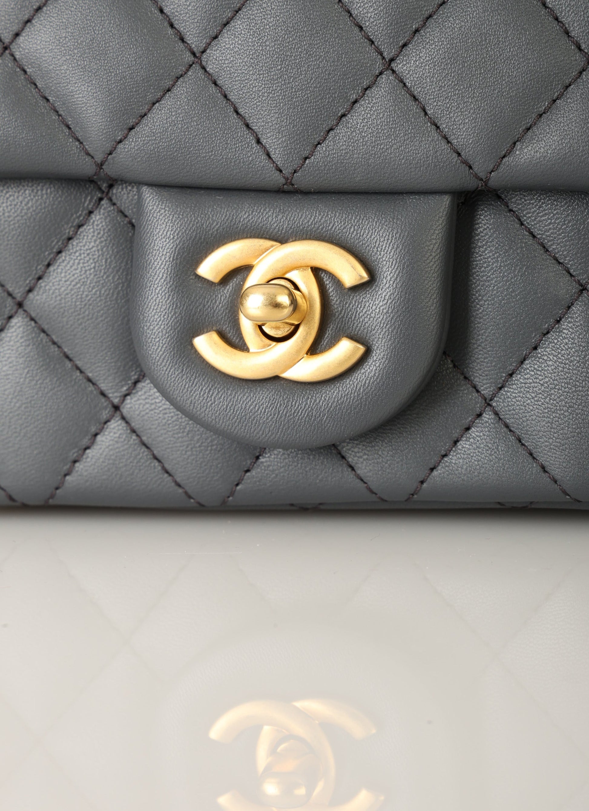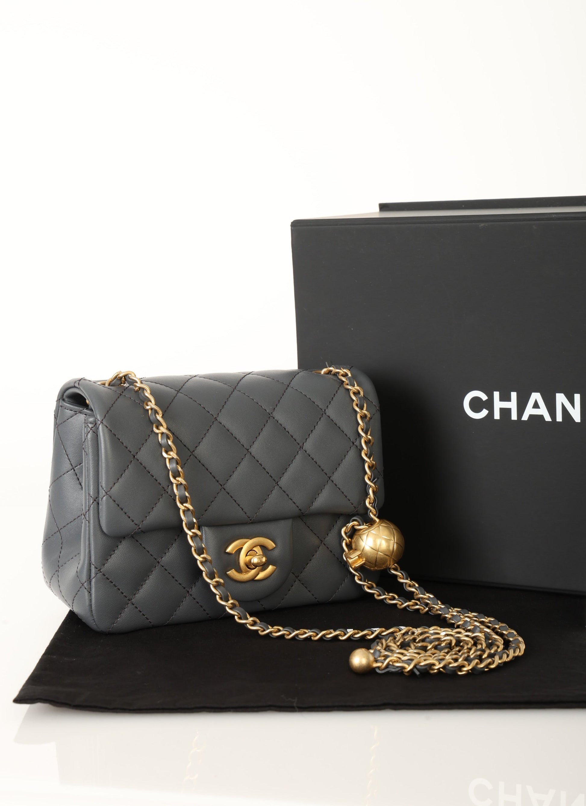 Dropping in the shop is a stunning Chanel Lambskin Pearl Crush Mini Rectangle Flap in a gorgeous gray with antique gold hardware. This piece would pair perfectly with a simple fit such as jeans and a white tee, but can be elevated to wear on a night out. The strap allows you to adjust the length to your perfect shoulder length. Such a gorgeous piece to add to your collection! You can fit your phone, small wallet, keys, and a lippie.?