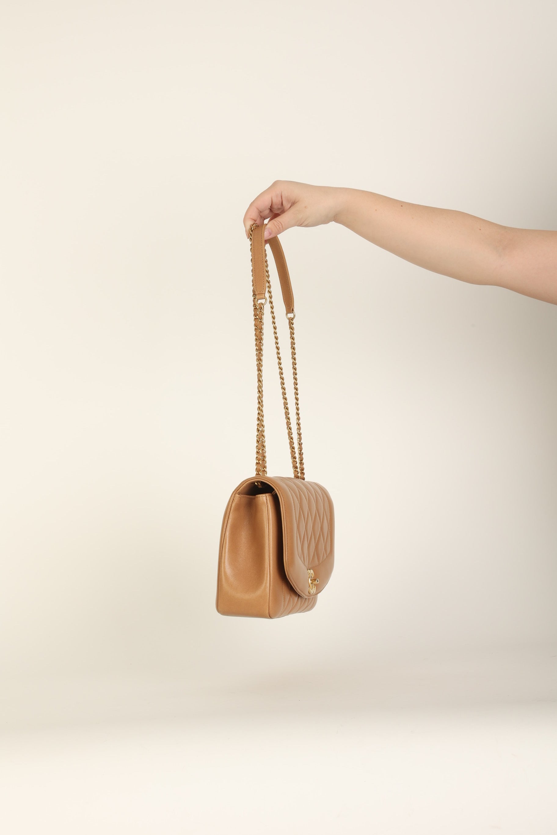Dropping in the shop is a gorgeous Chanel Lambskin Reissue Diana in a caramel brown with gold hardware! The Diana Reissue was reproduced in 2015 and the ONLY ever season to re-run this cult classic.This beauty has soft and supple lambskin with so much poof! The reissued version of the Diana is a great homage to the vintage Diana we all know and love. The strap can be adjusted to wear as a long or short shoulder strap and is such a great piece to be both casually and elevated. You can fit your iPad mini/kindle and the rest of your daily essentials!