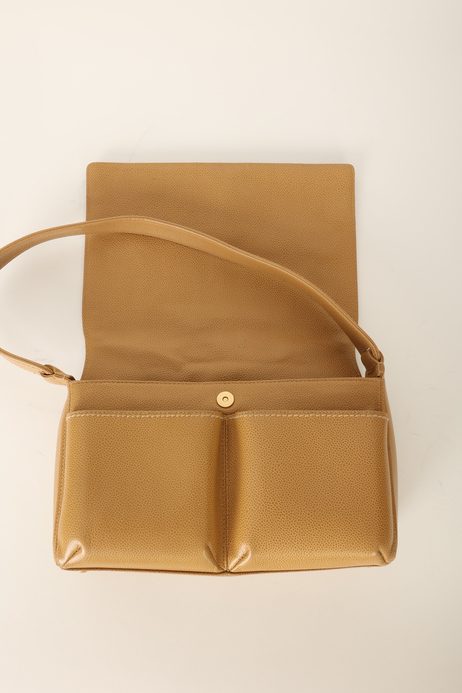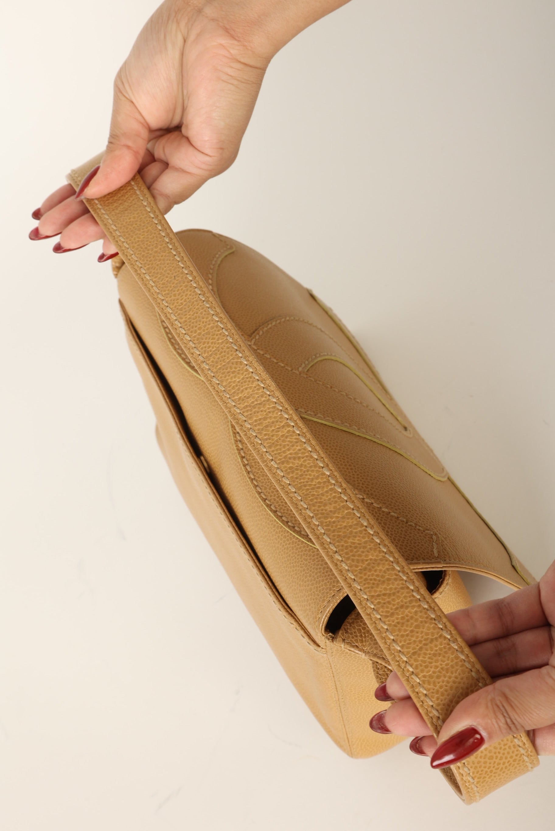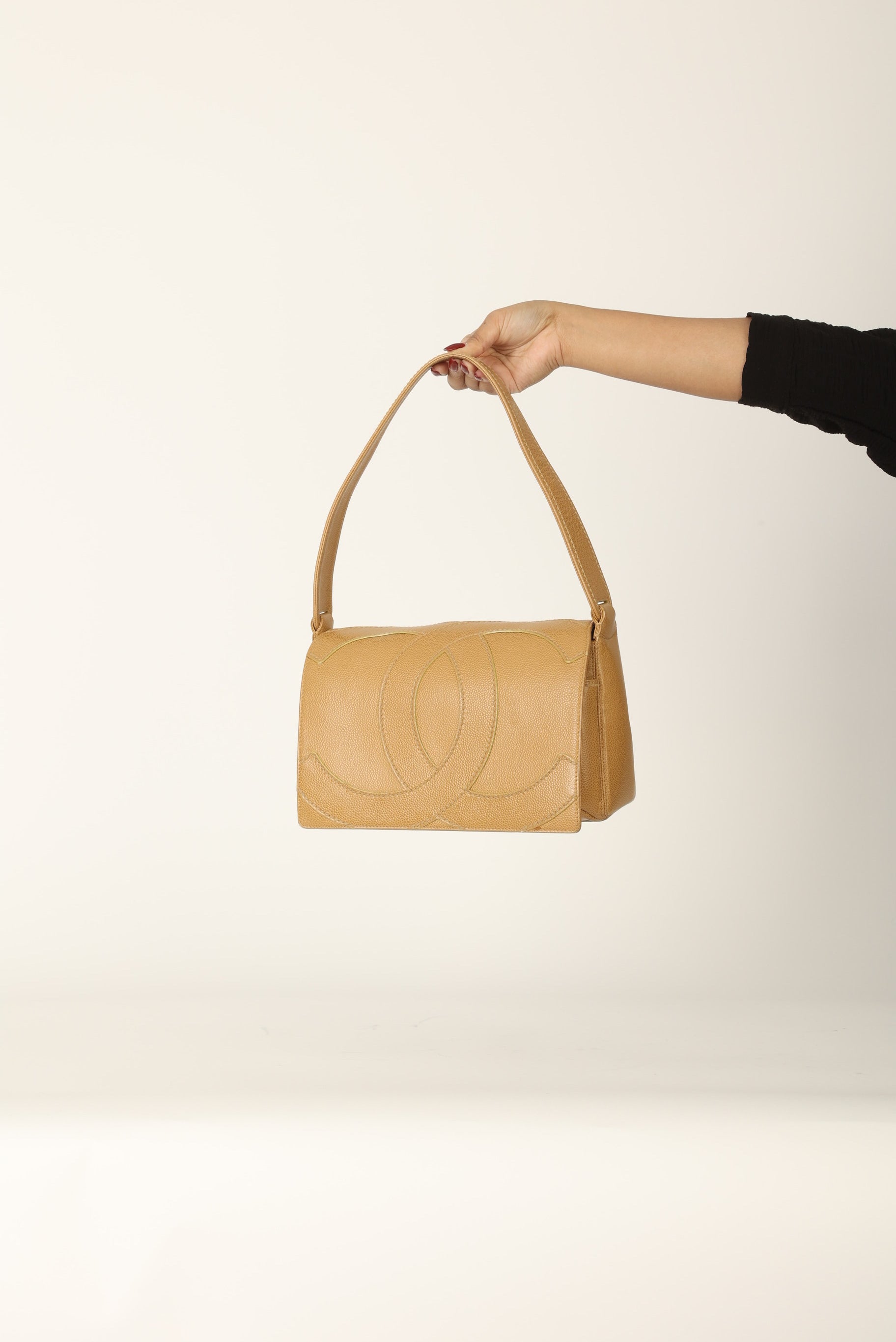 Dropping in the shop is a Chanel Caviar Shoulder Flap Bag in beige with antique gold hardware! The perfect everyday piece that would pair well with a pair of jeans and a white tee. This bag features the biggest CC logos on the front of the bag, but still giving subtle vibes. The interior features two small front compartments with one large compartment with a zipped pocket. You can fit your iPad Mini/Kindle and the rest of your daily essentials.?