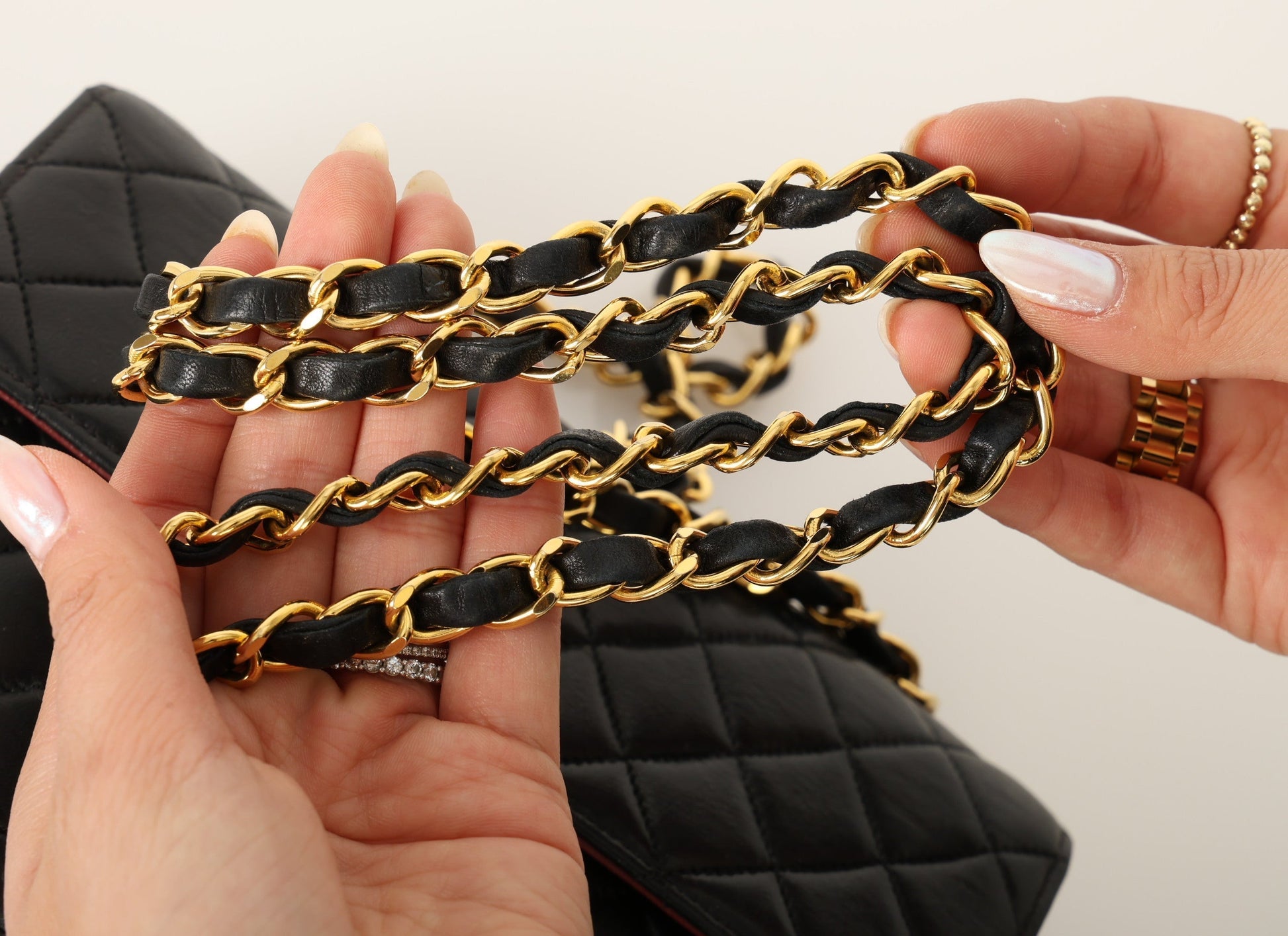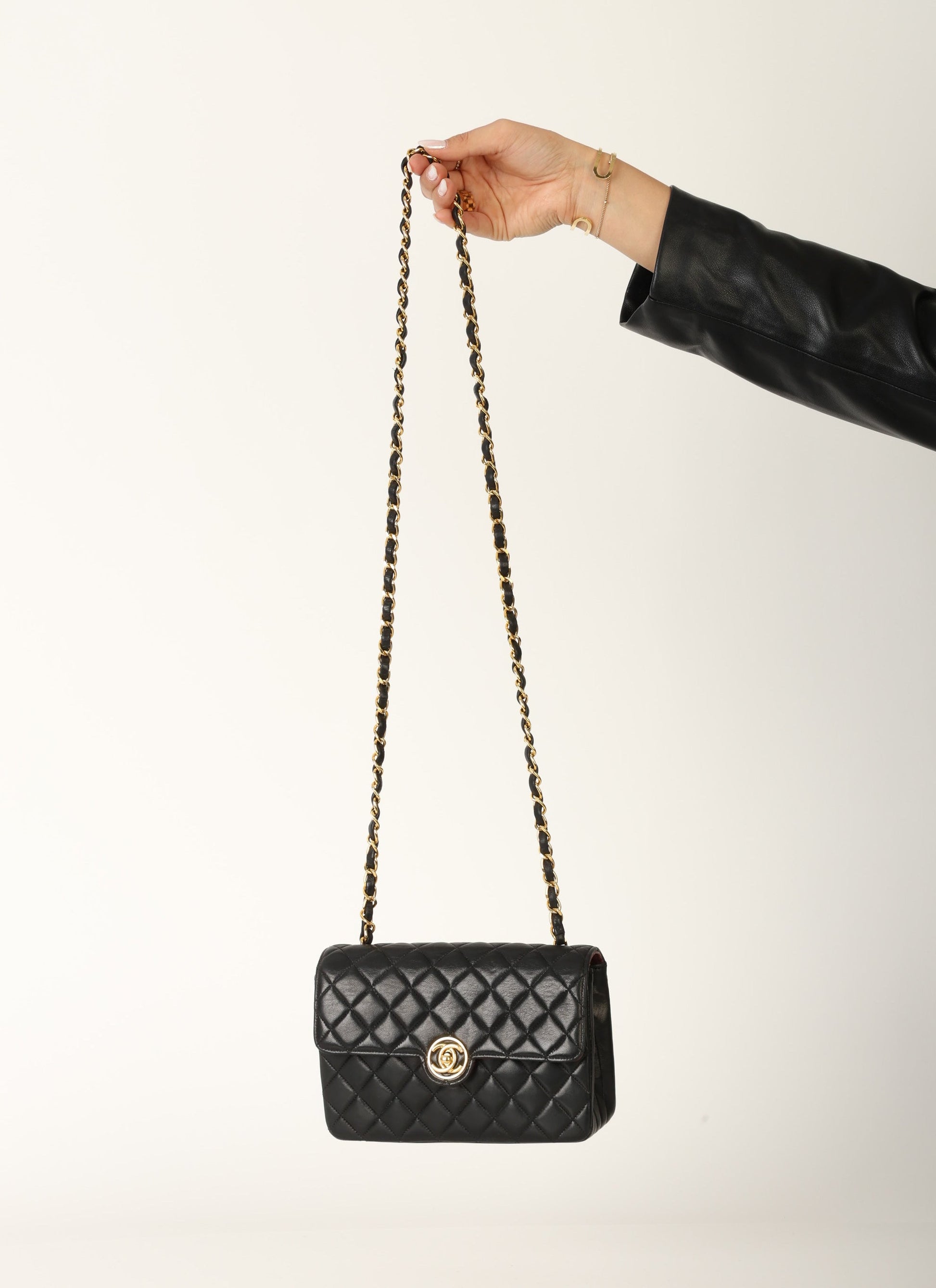 Dropping in the shop is a stunning Chanel Lambskin Mini Single Flap in black with 24k gold plated hardware. This beauty is the perfect piece to transition from day to night! You can wear it as a long shoulder bag or play around with the straps to turn into a short shoulder or top handle bag. Such a versatile piece and unique with the CC turnlock circle. You can fit your phone, small wallet, keys, and a few other smaller essentials.?