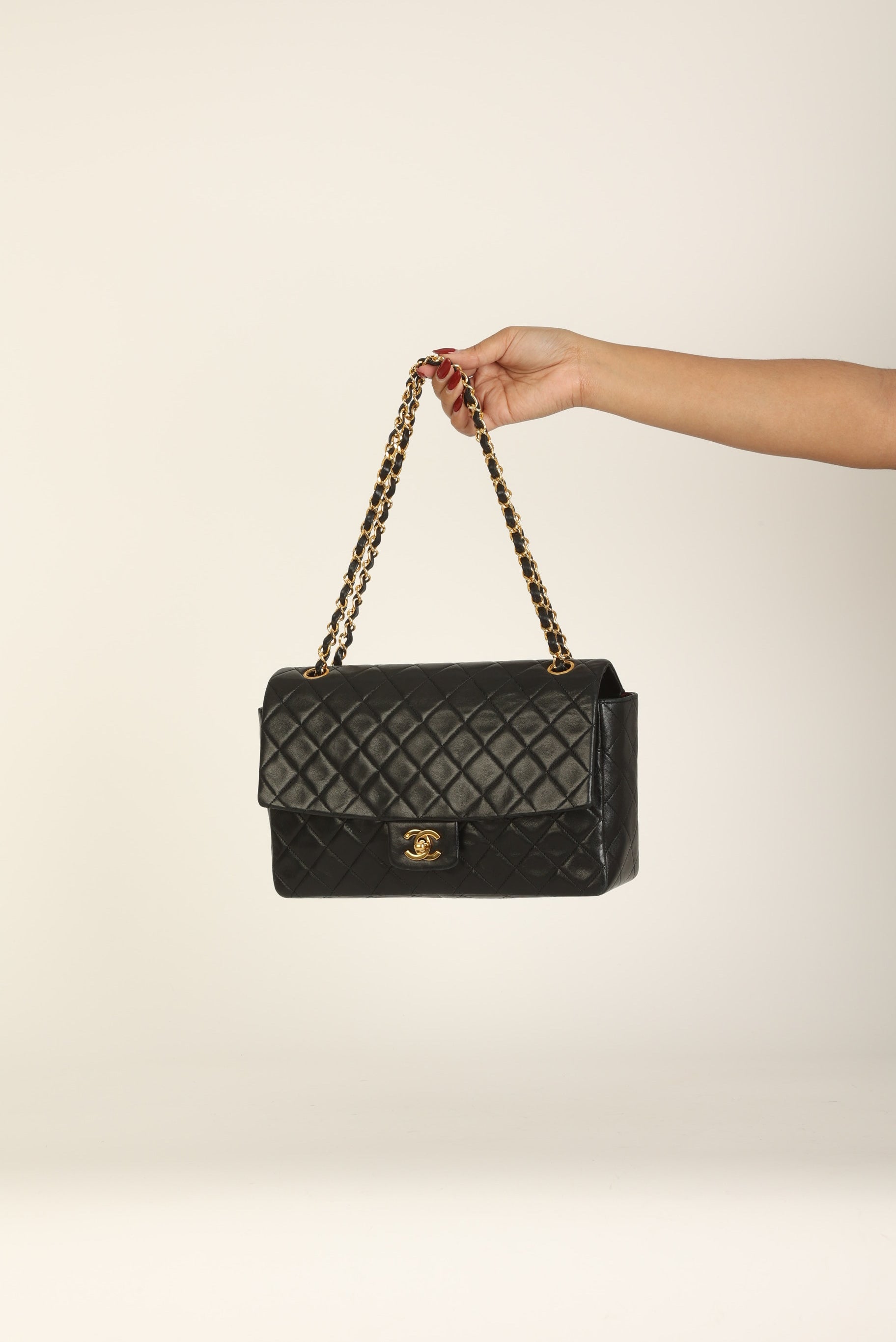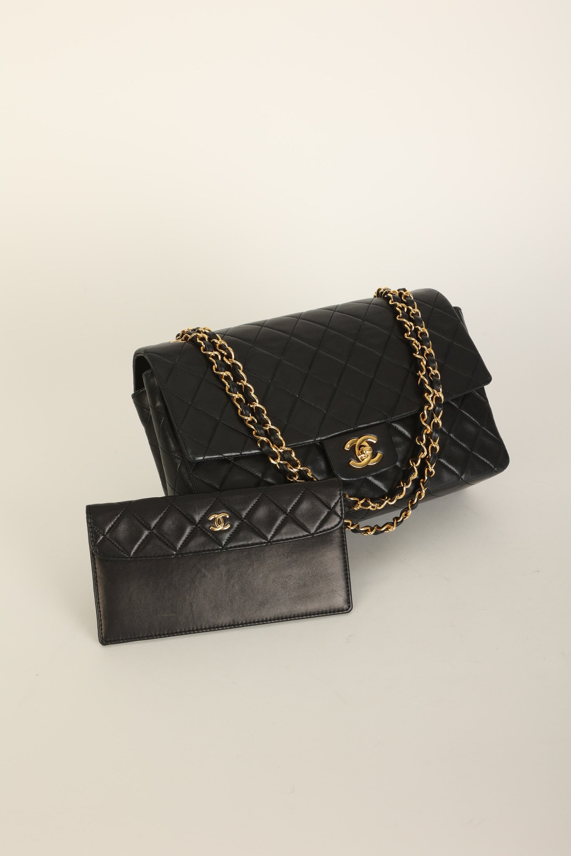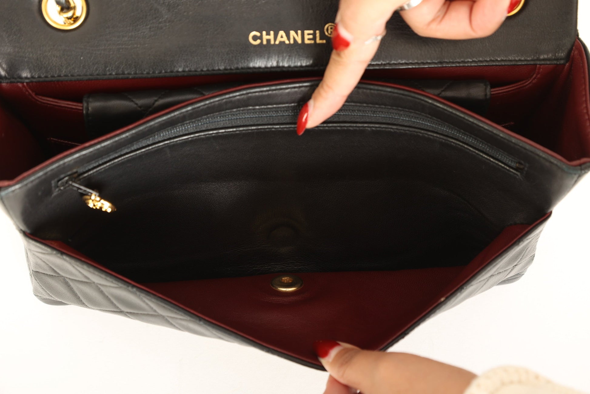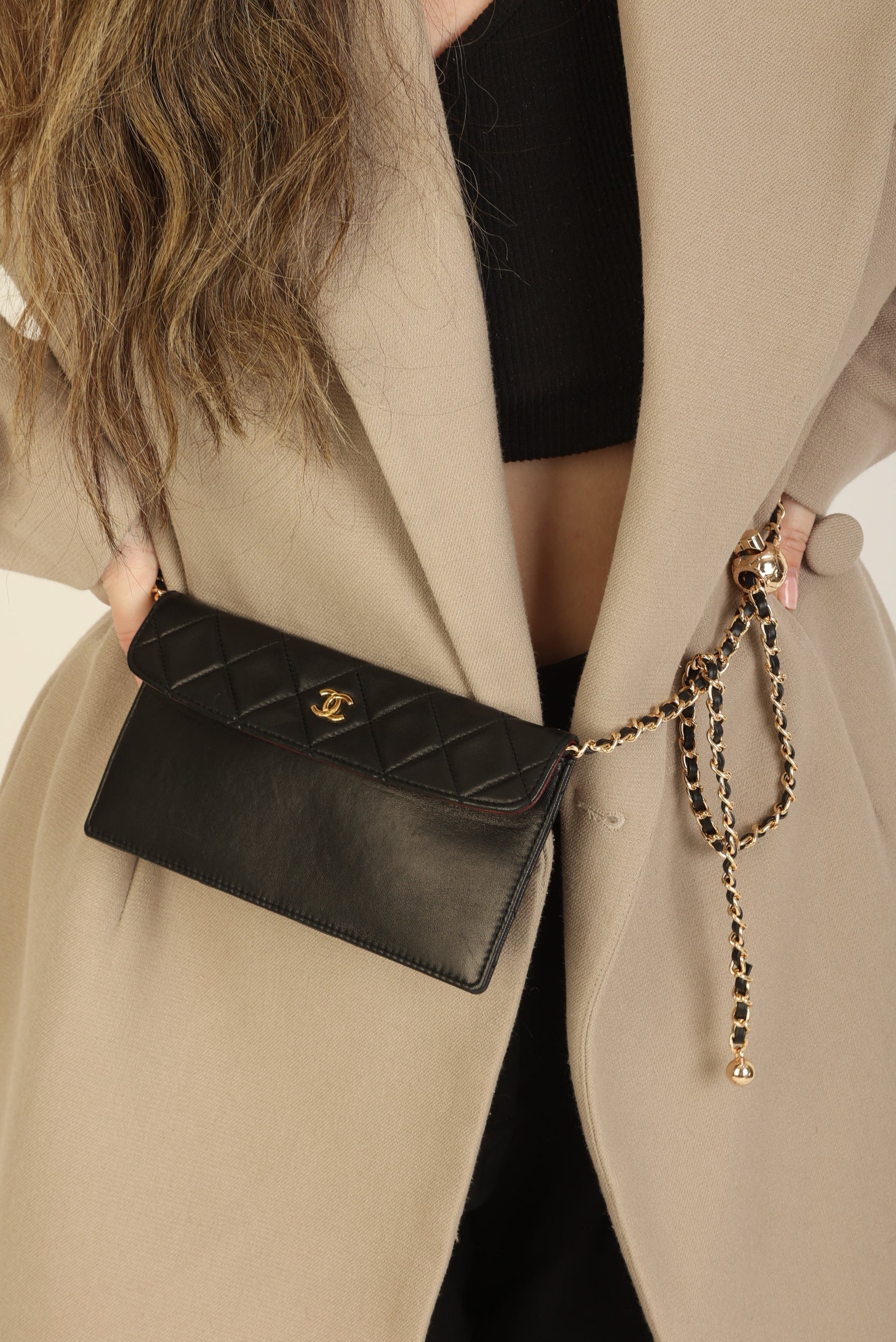 Dropping in the shop is a Chanel Lambskin Single Flap w/ Pouch in black with 24k gold plated hardware! It is so special and unique to find a vintage bag with its pouch still attached! Two bags in one, anyone?! We've included a generic strap to use?the pouch as a belt bag or as a crossbody or shoulder bag. This bag is the perfect size for everyday use. You can fit your iPad mini/kindle and the rest of your daily essentials!?