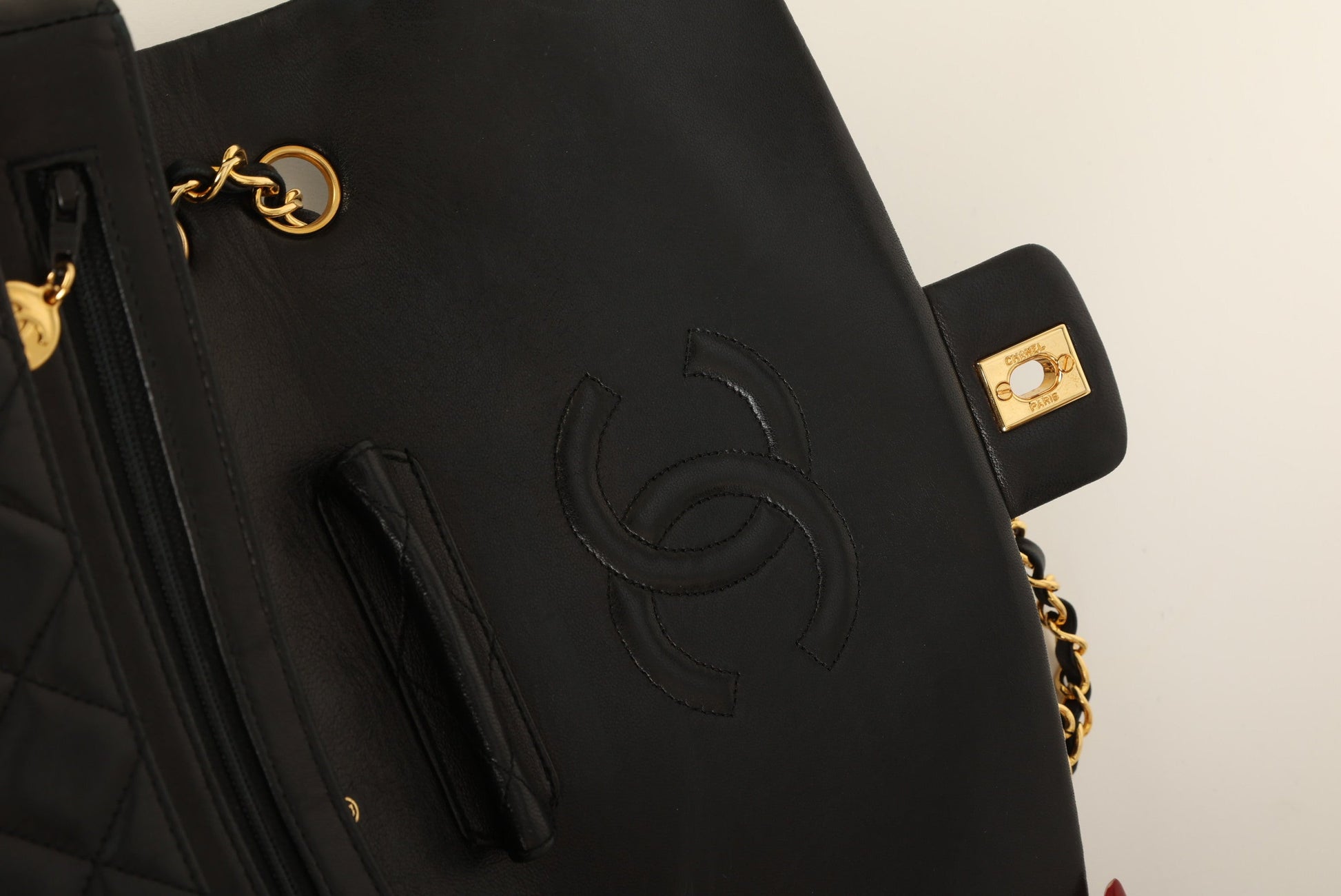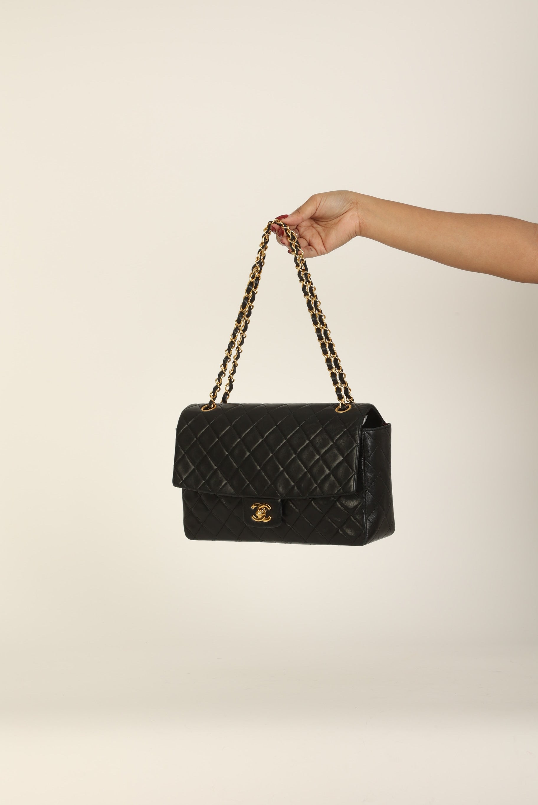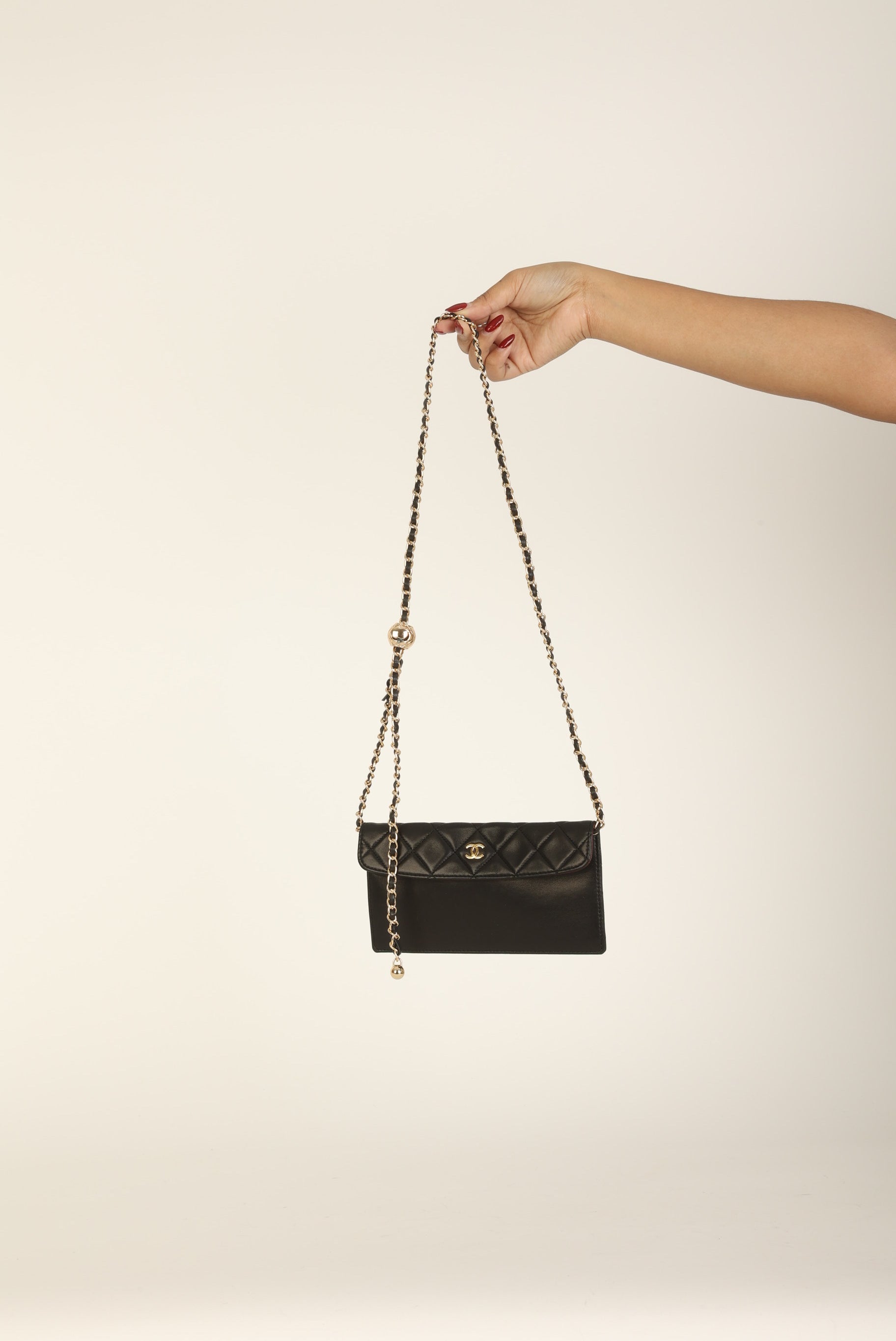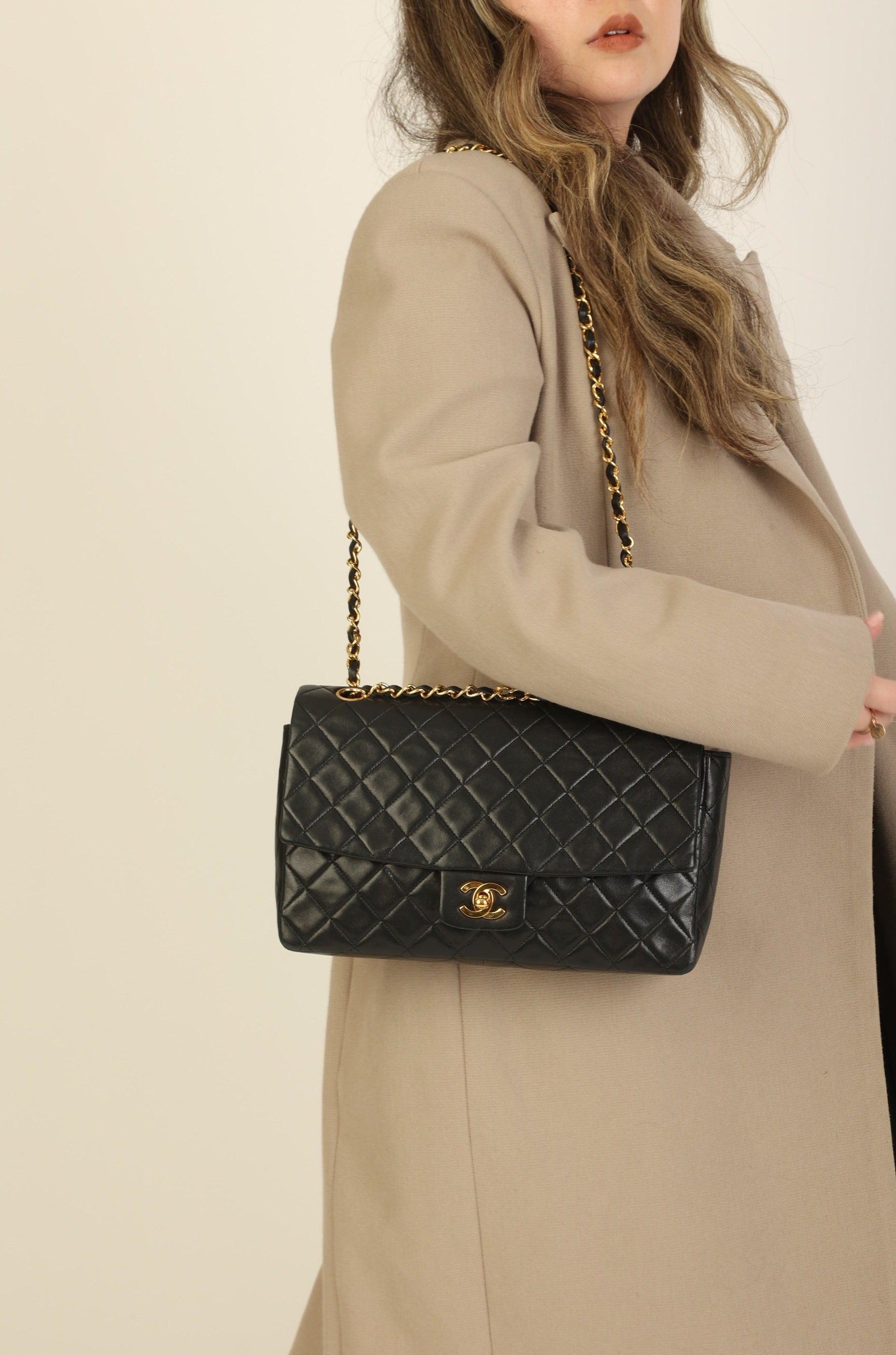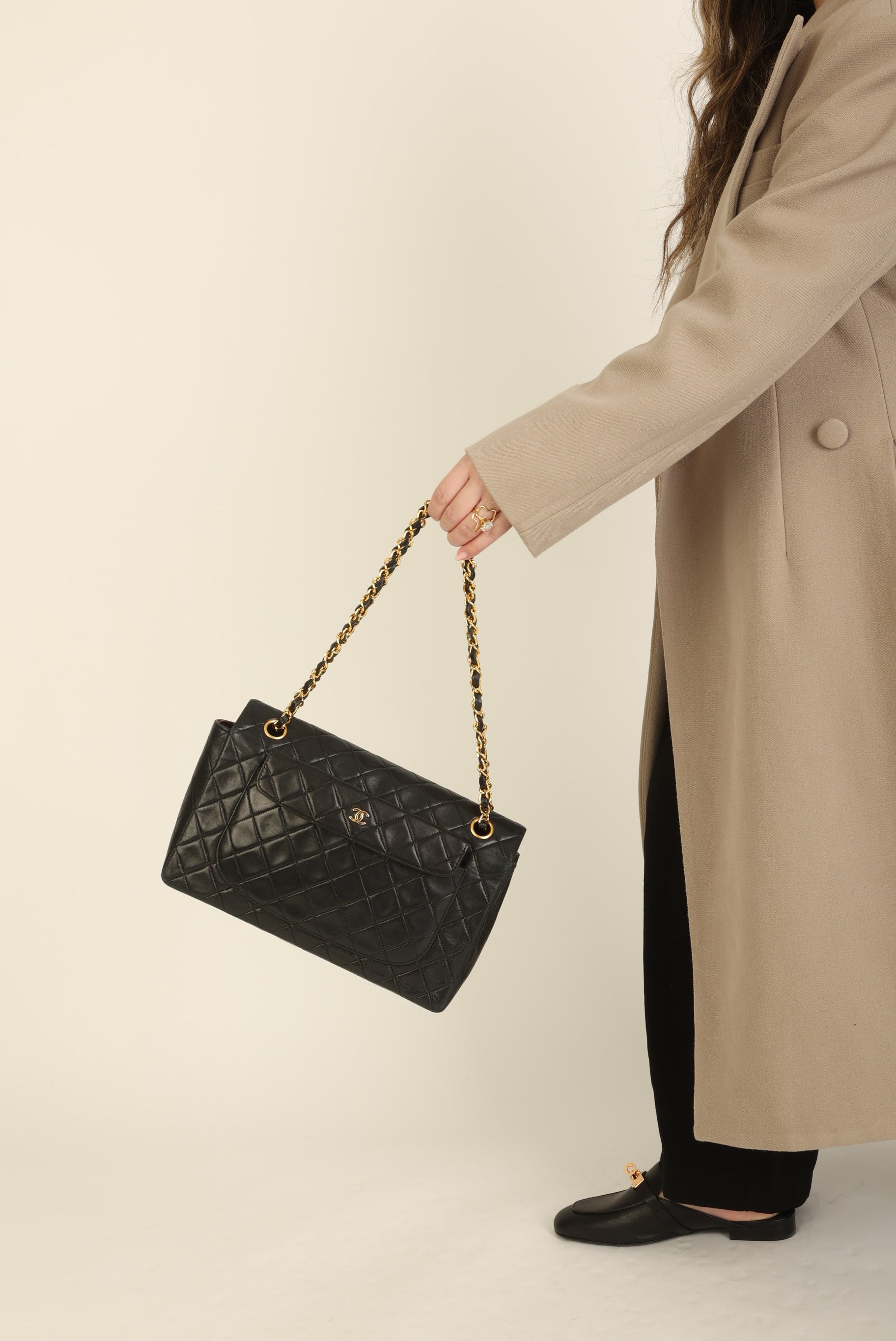 Dropping in the shop is a Chanel Lambskin Single Flap w/ Pouch in black with 24k gold plated hardware! It is so special and unique to find a vintage bag with its pouch still attached! Two bags in one, anyone?! We've included a generic strap to use?the pouch as a belt bag or as a crossbody or shoulder bag. This bag is the perfect size for everyday use. You can fit your iPad mini/kindle and the rest of your daily essentials!?