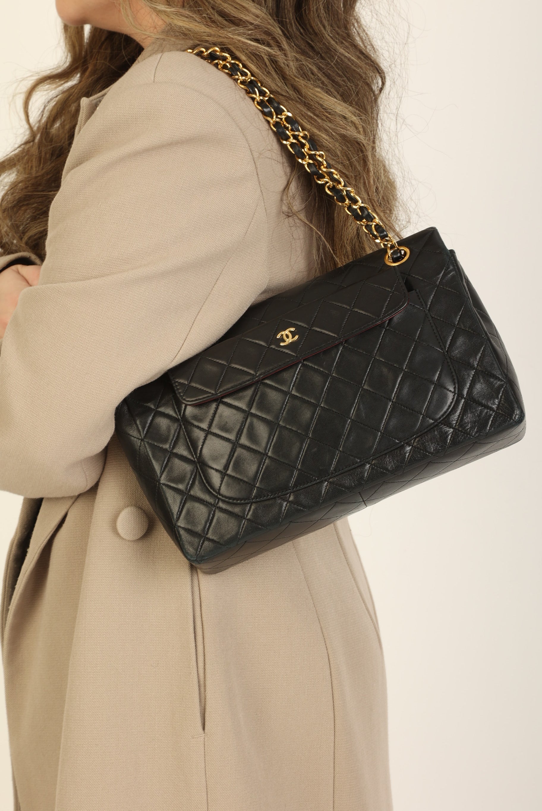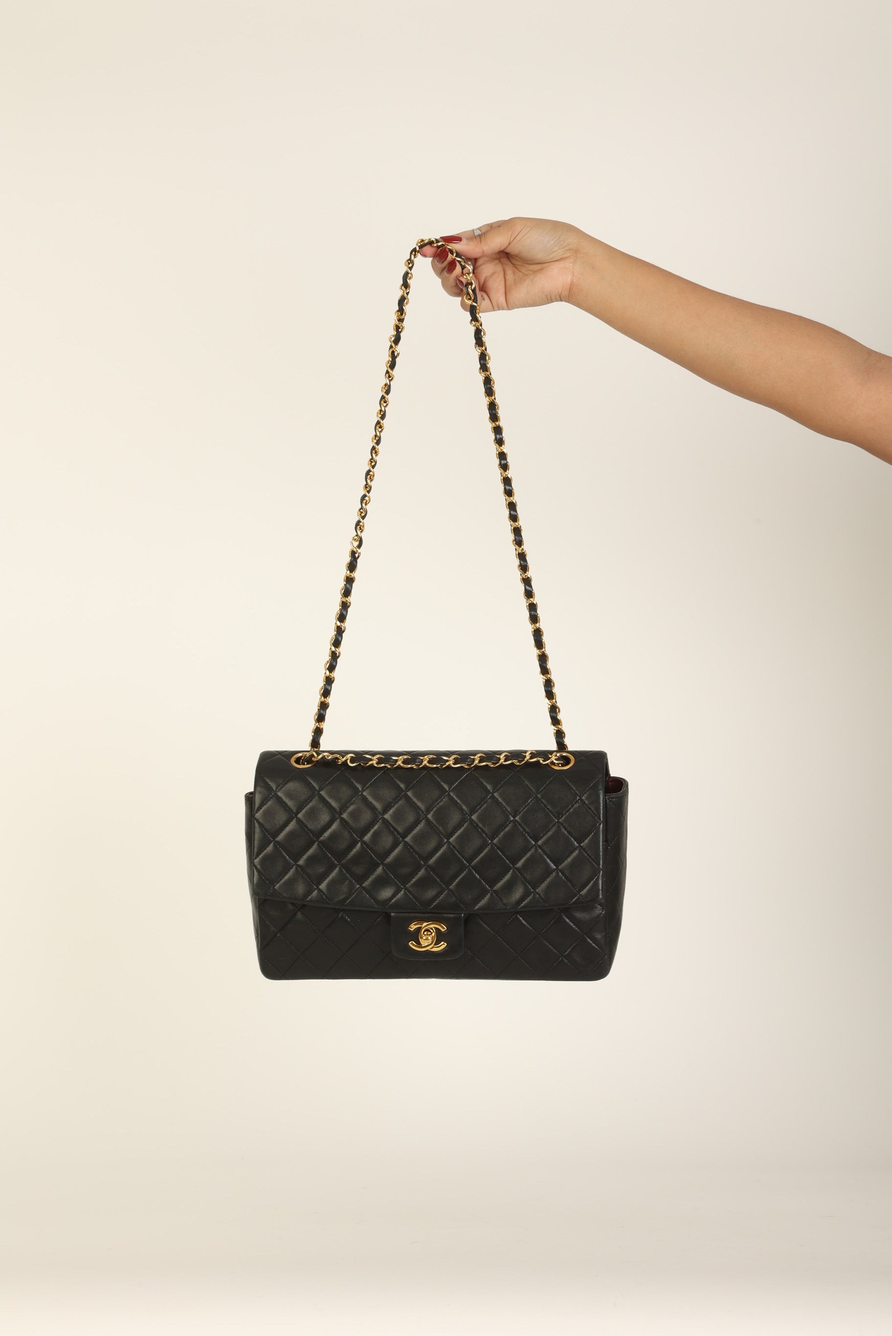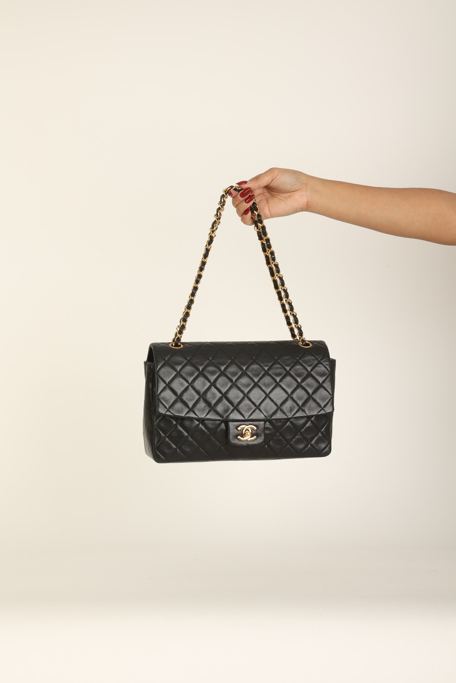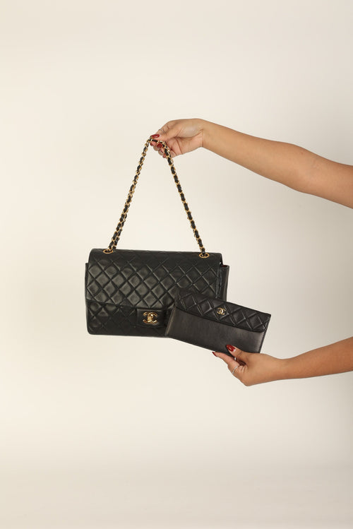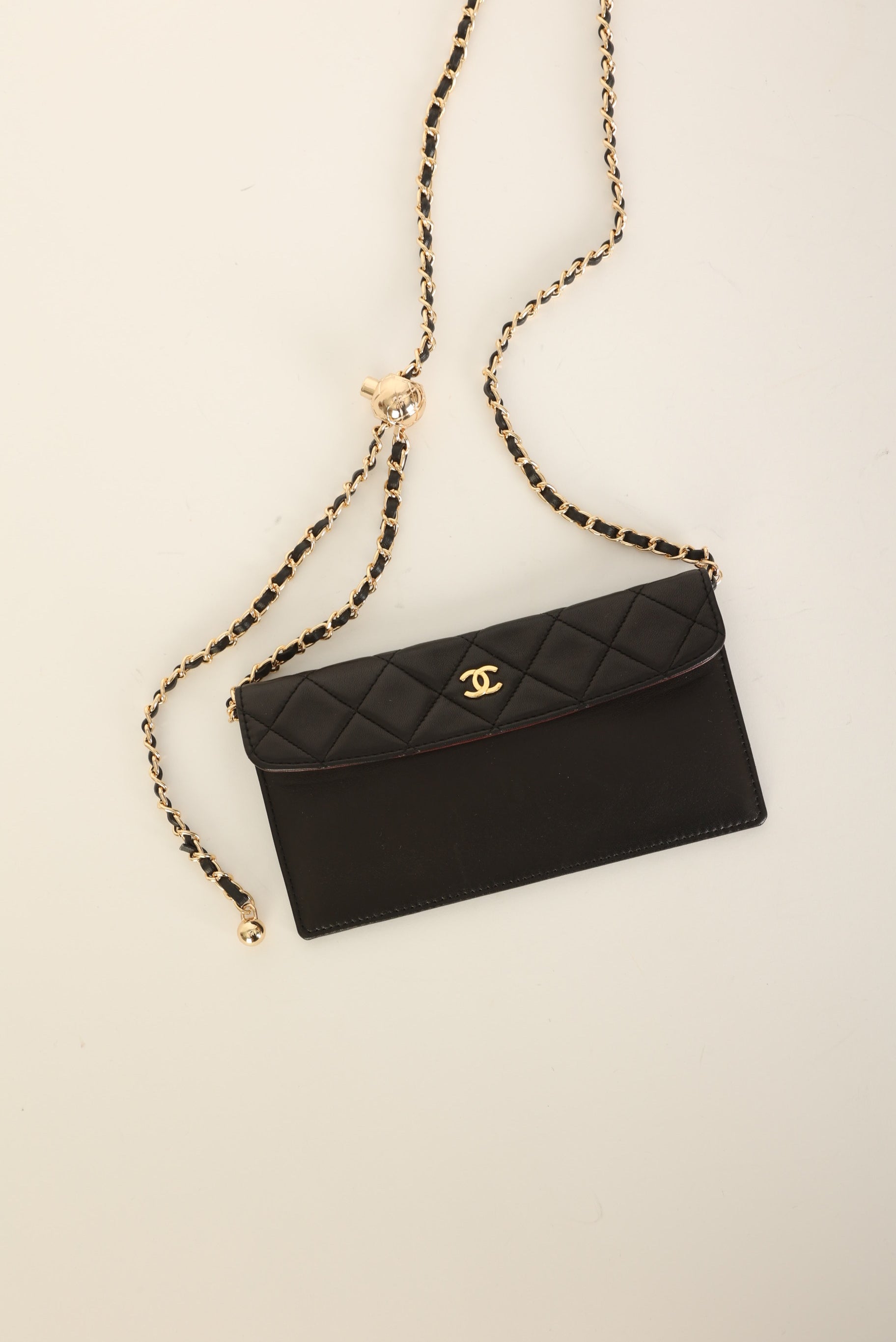Dropping in the shop is a Chanel Lambskin Single Flap w/ Pouch in black with 24k gold plated hardware! It is so special and unique to find a vintage bag with its pouch still attached! Two bags in one, anyone?! We've included a generic strap to use?the pouch as a belt bag or as a crossbody or shoulder bag. This bag is the perfect size for everyday use. You can fit your iPad mini/kindle and the rest of your daily essentials!?