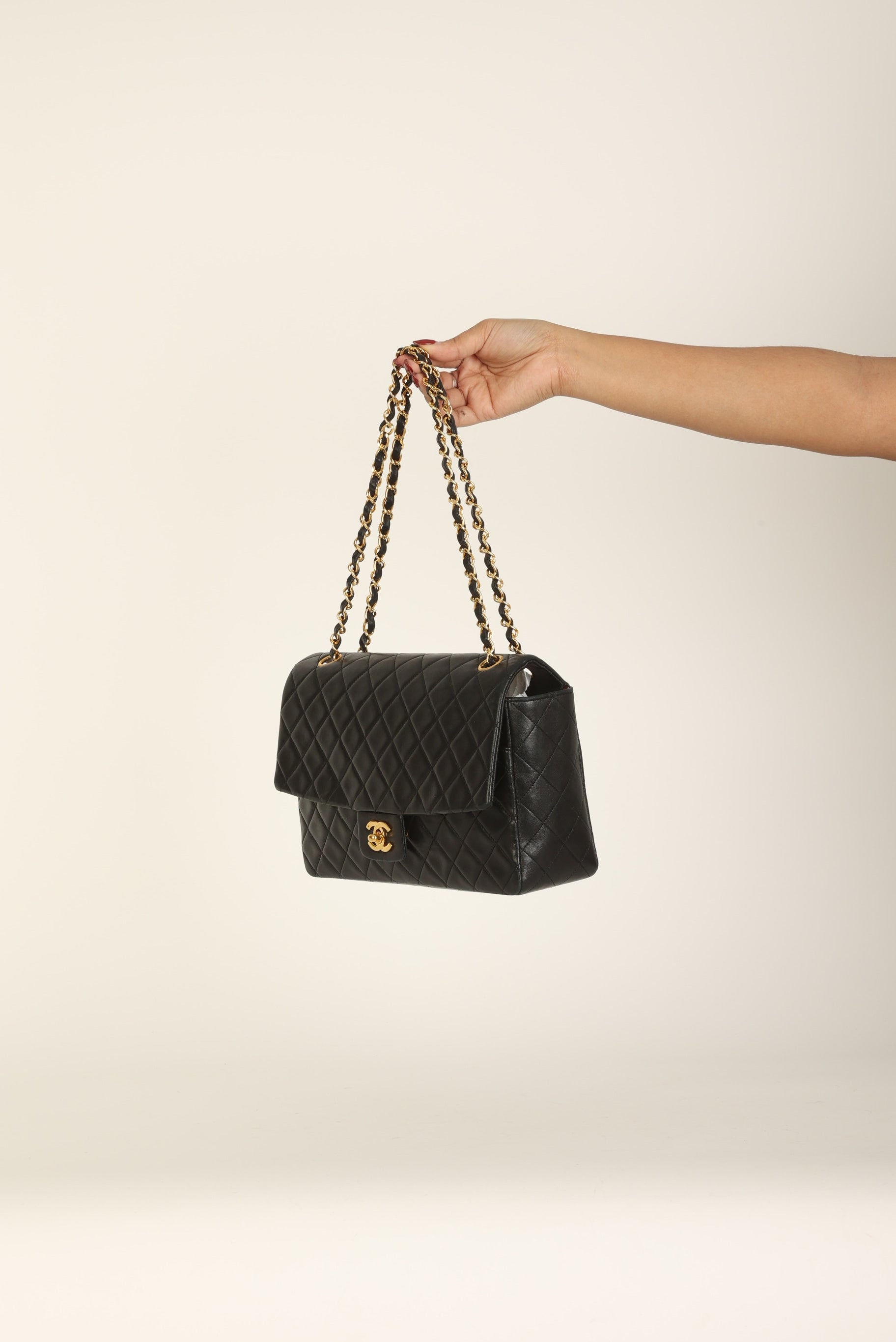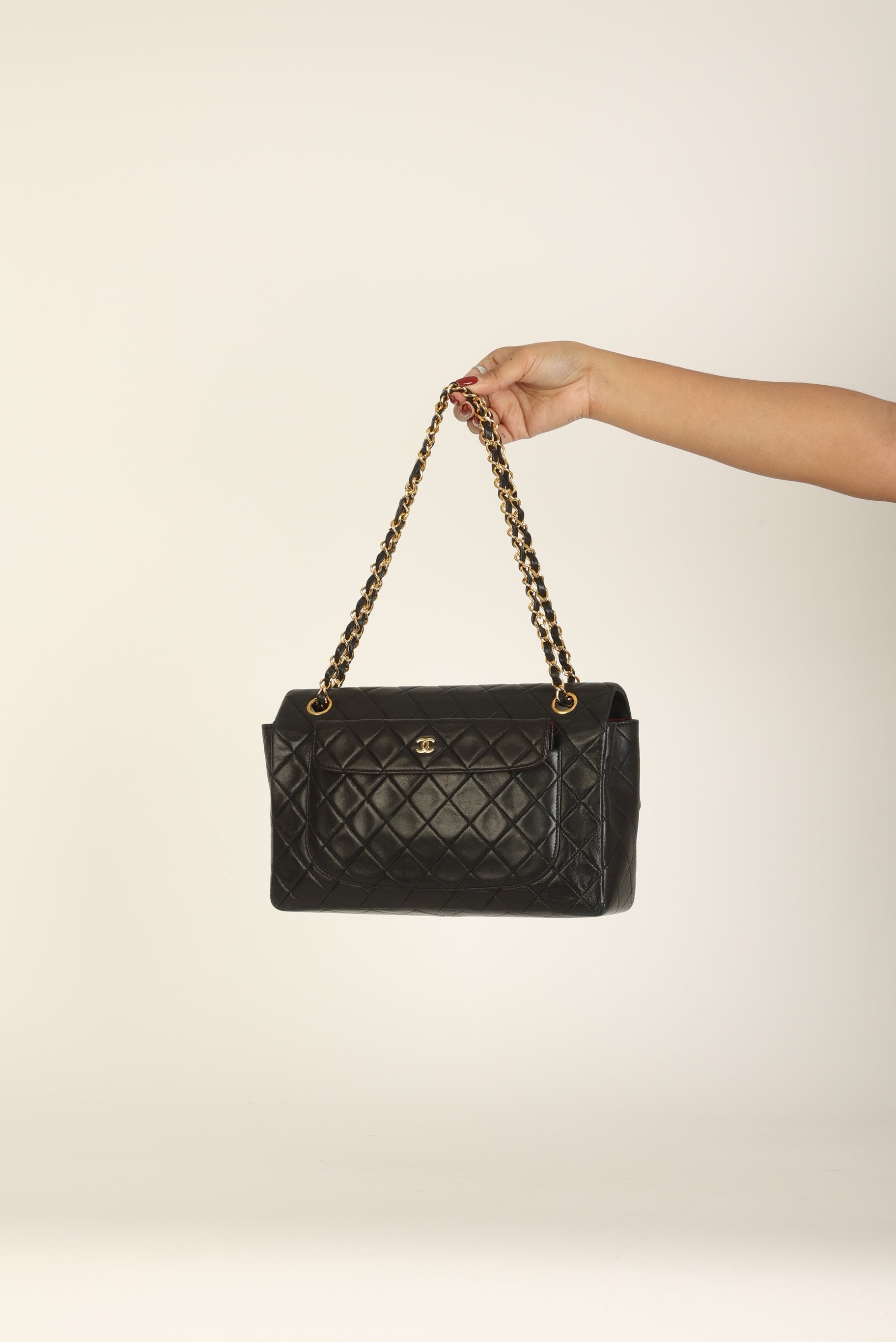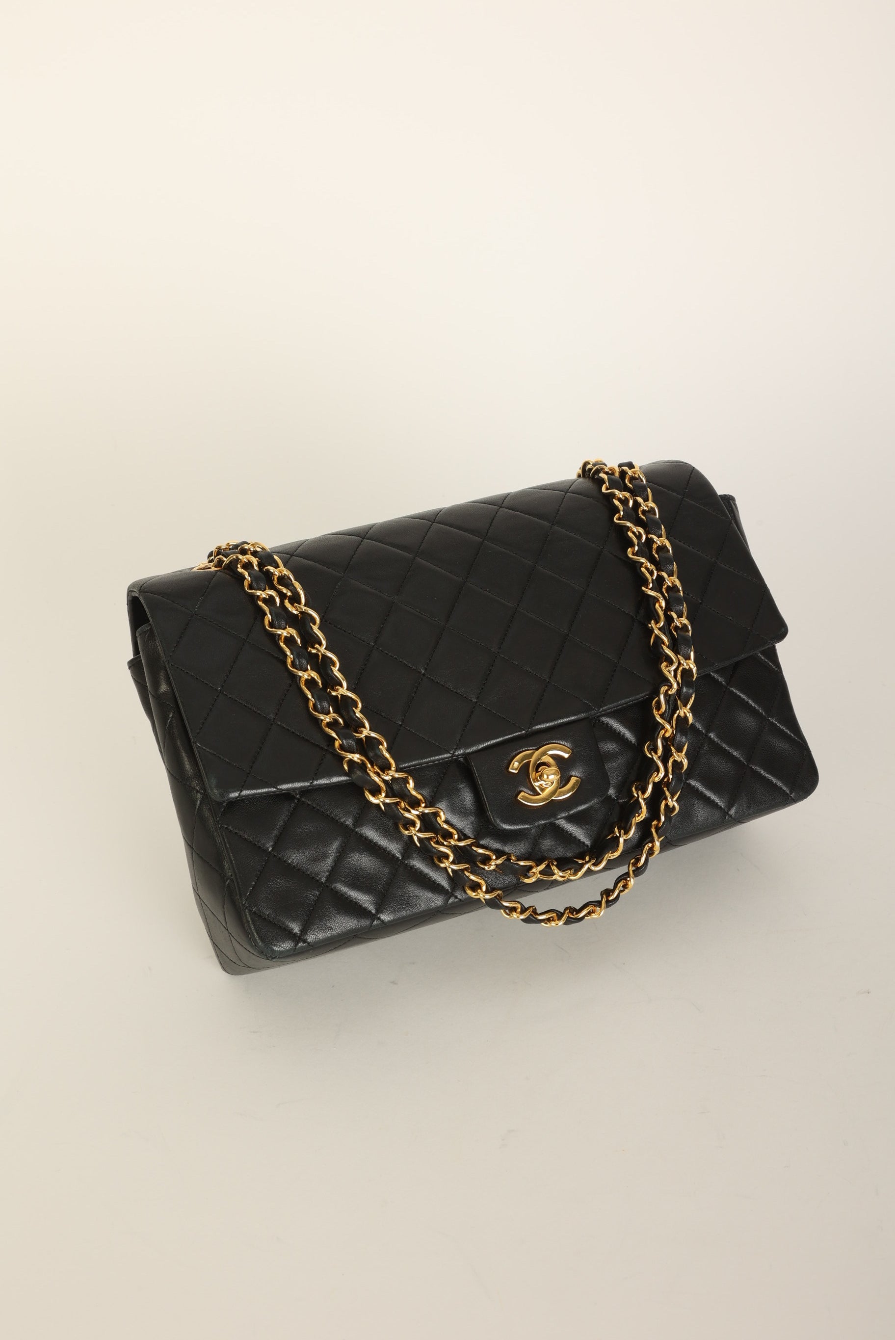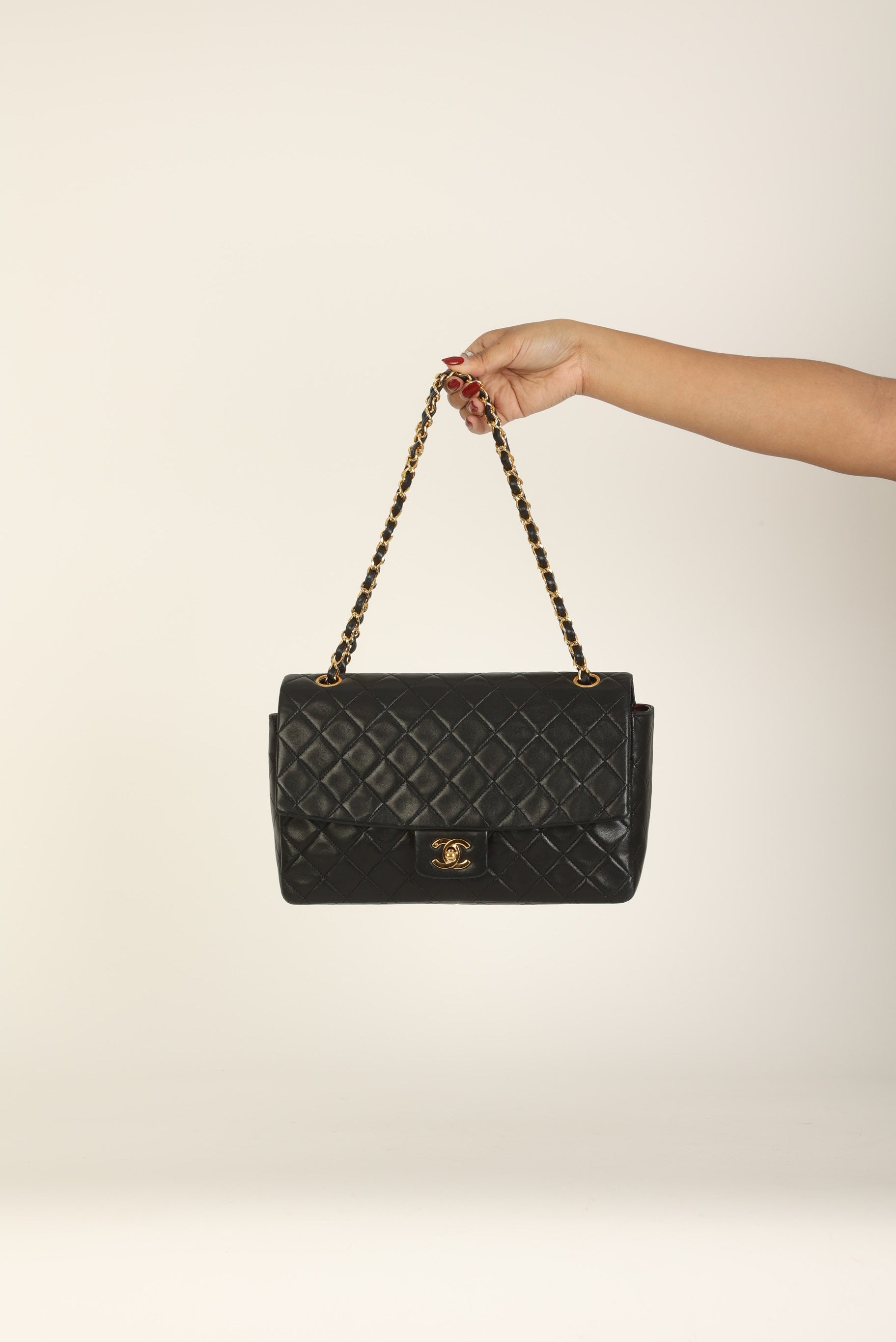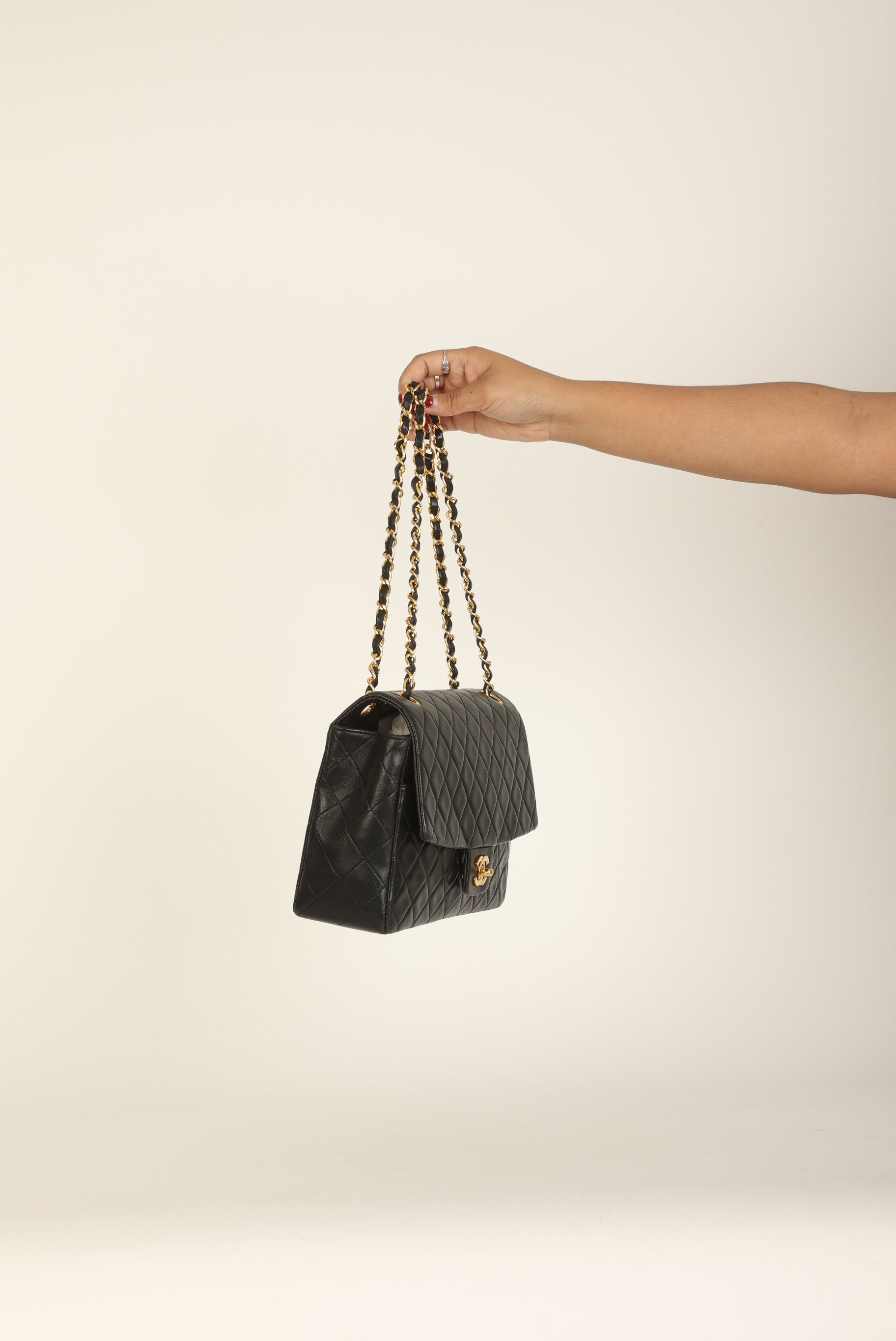 Dropping in the shop is a Chanel Lambskin Single Flap w/ Pouch in black with 24k gold plated hardware! It is so special and unique to find a vintage bag with its pouch still attached! Two bags in one, anyone?! We've included a generic strap to use?the pouch as a belt bag or as a crossbody or shoulder bag. This bag is the perfect size for everyday use. You can fit your iPad mini/kindle and the rest of your daily essentials!?