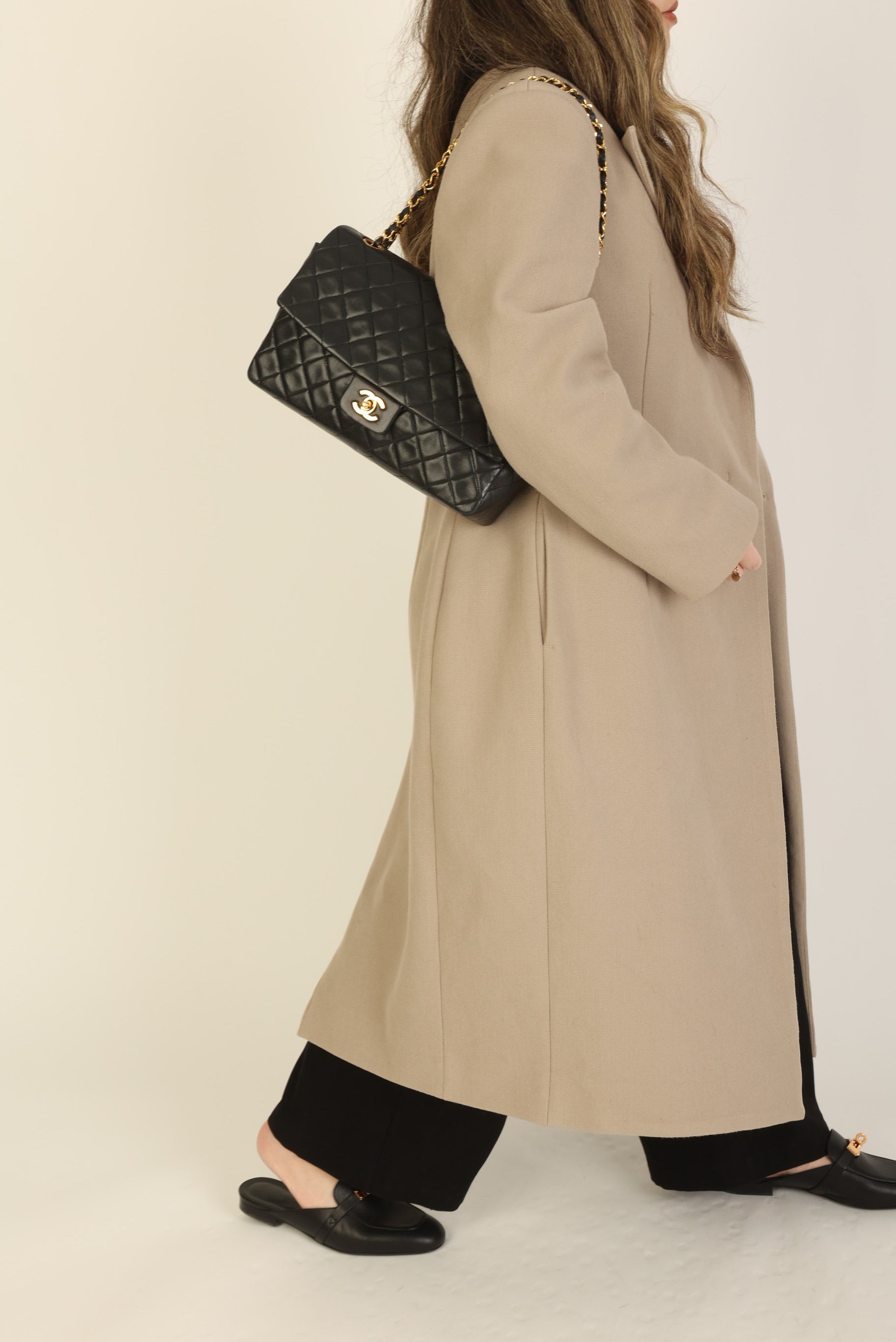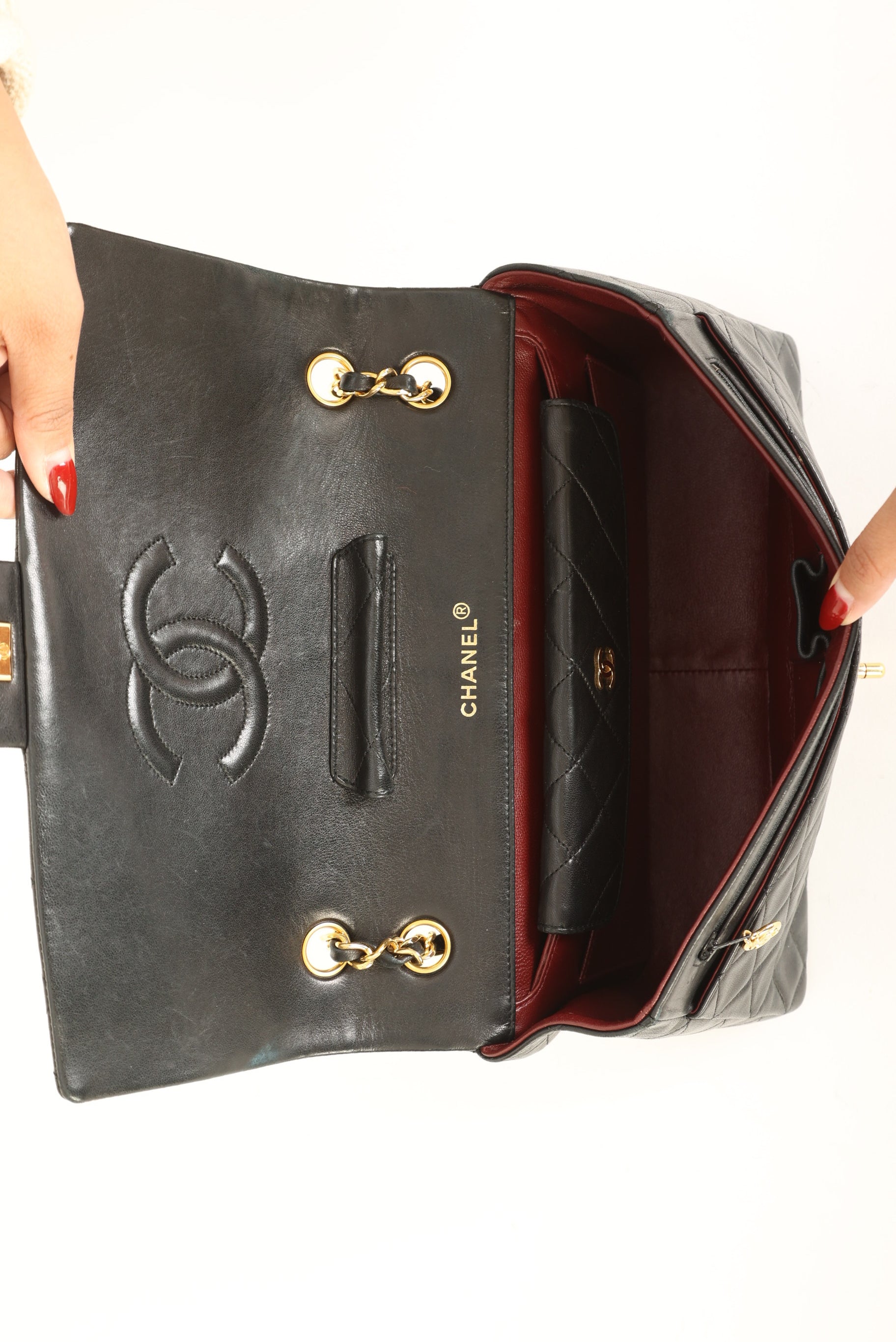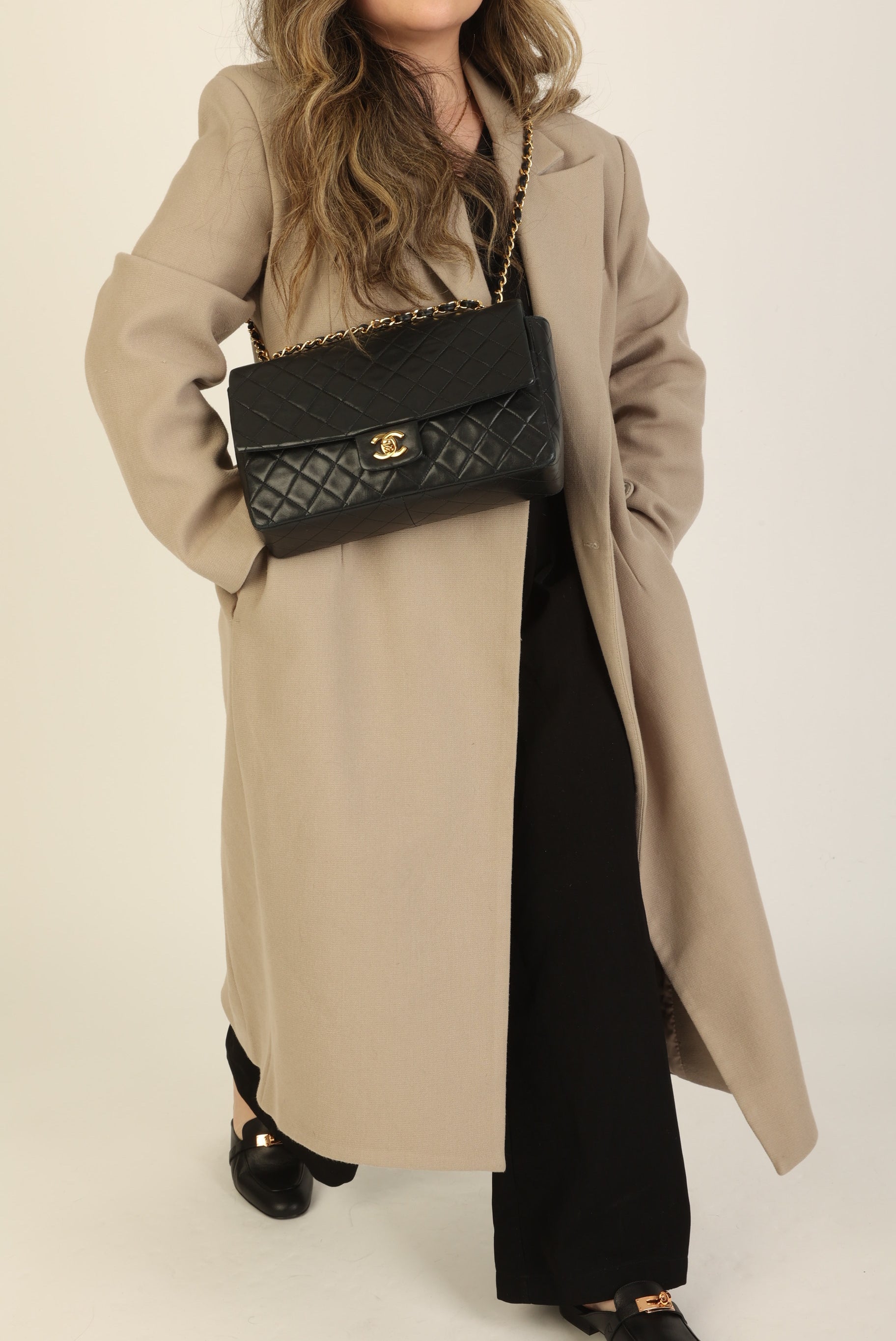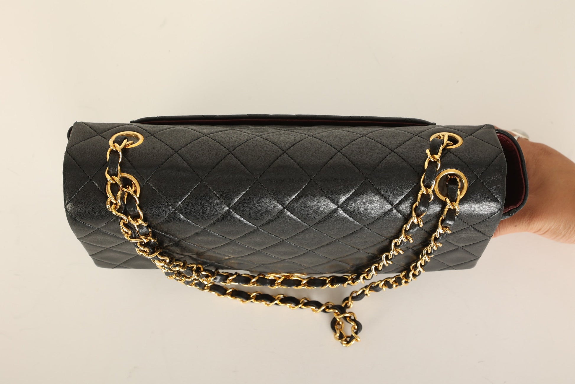 Dropping in the shop is a Chanel Lambskin Single Flap w/ Pouch in black with 24k gold plated hardware! It is so special and unique to find a vintage bag with its pouch still attached! Two bags in one, anyone?! We've included a generic strap to use?the pouch as a belt bag or as a crossbody or shoulder bag. This bag is the perfect size for everyday use. You can fit your iPad mini/kindle and the rest of your daily essentials!?