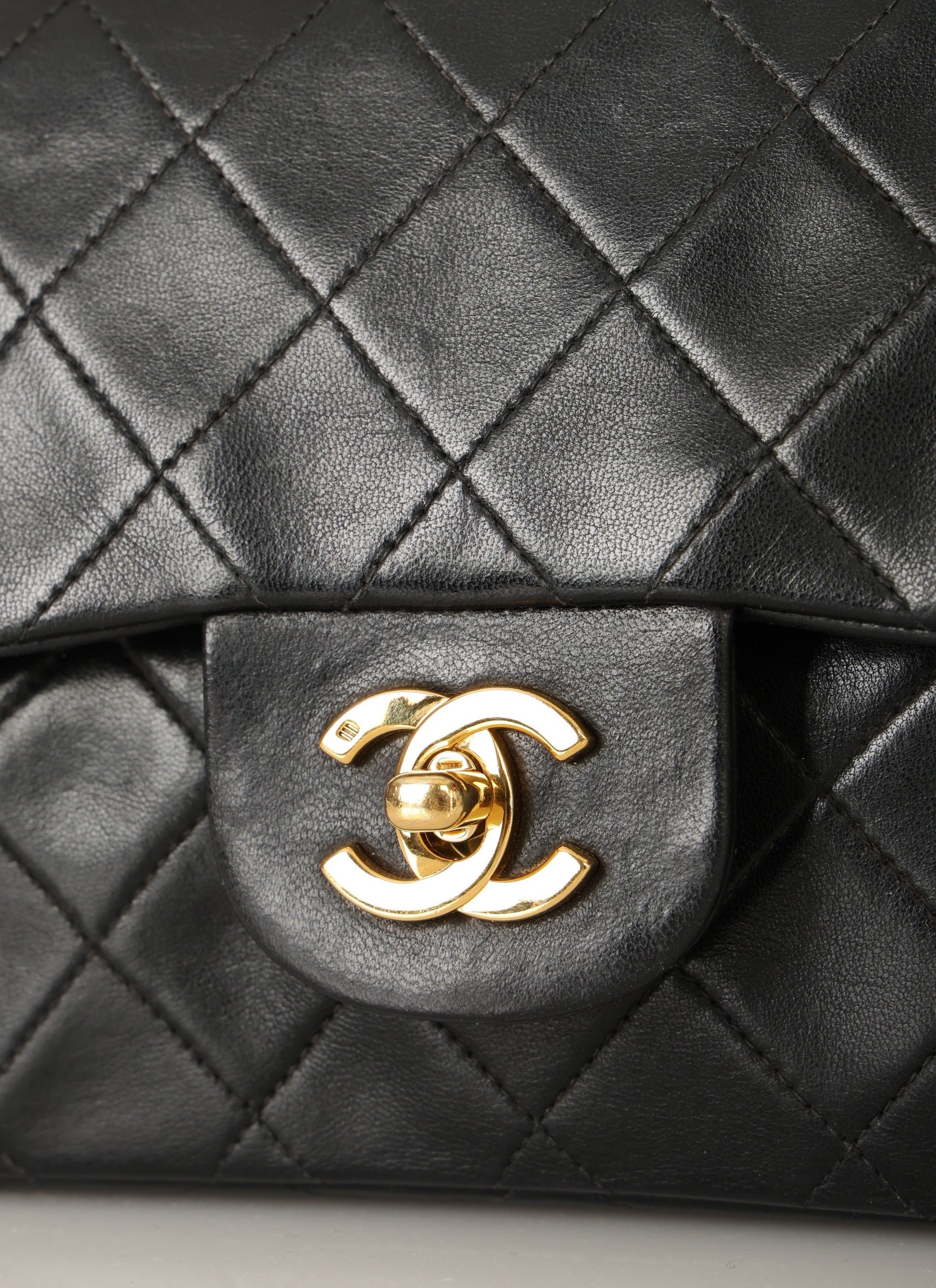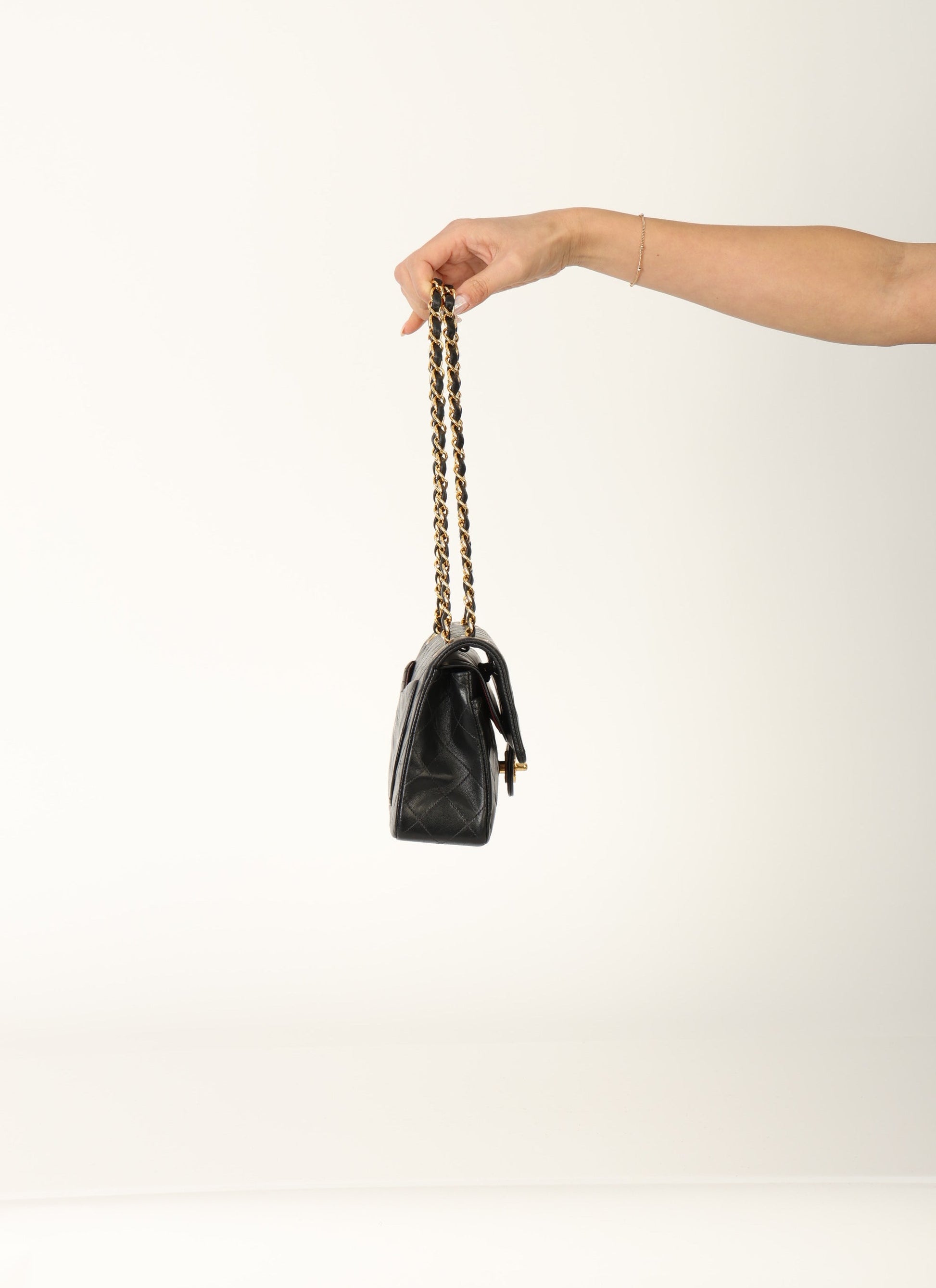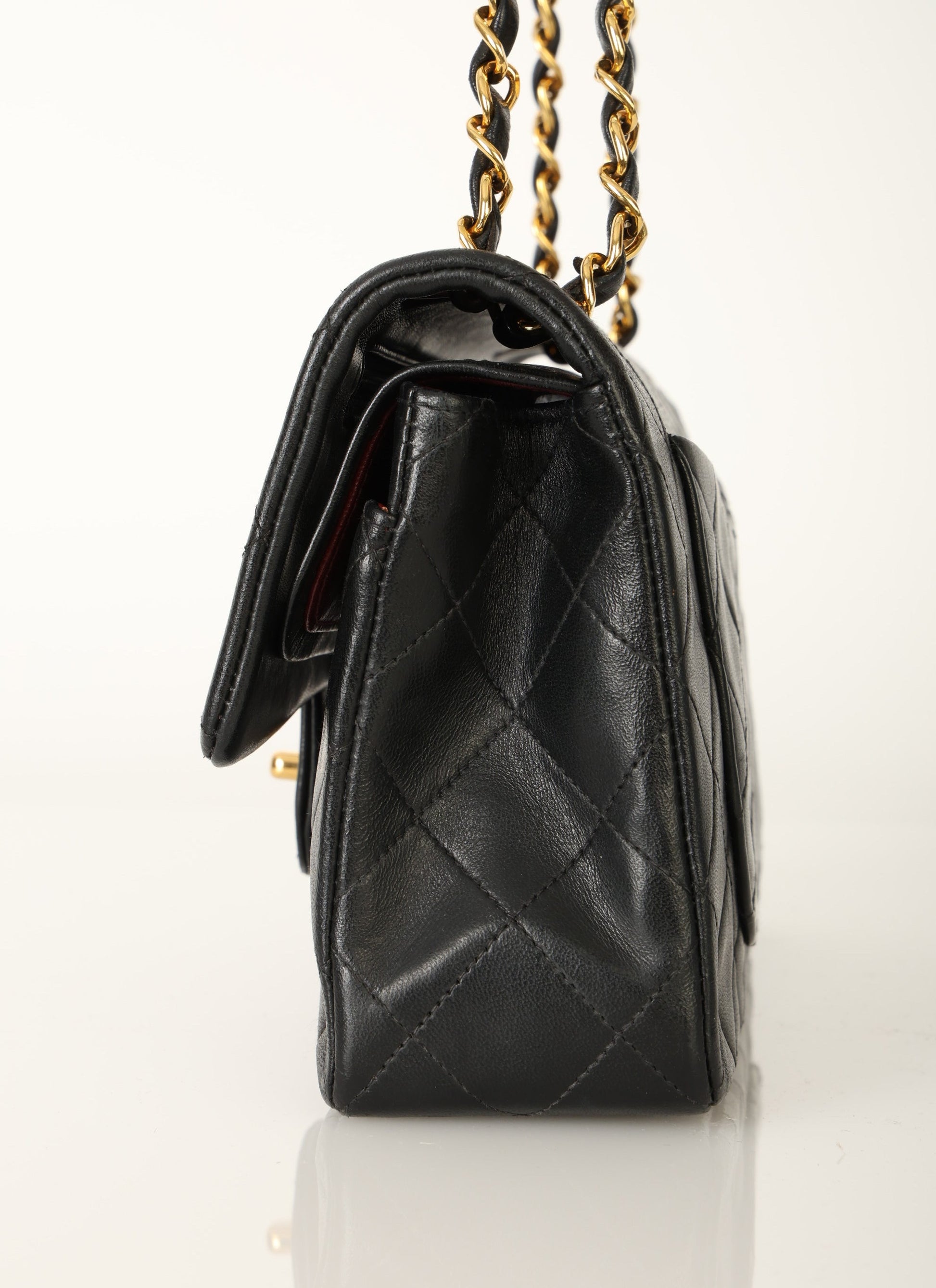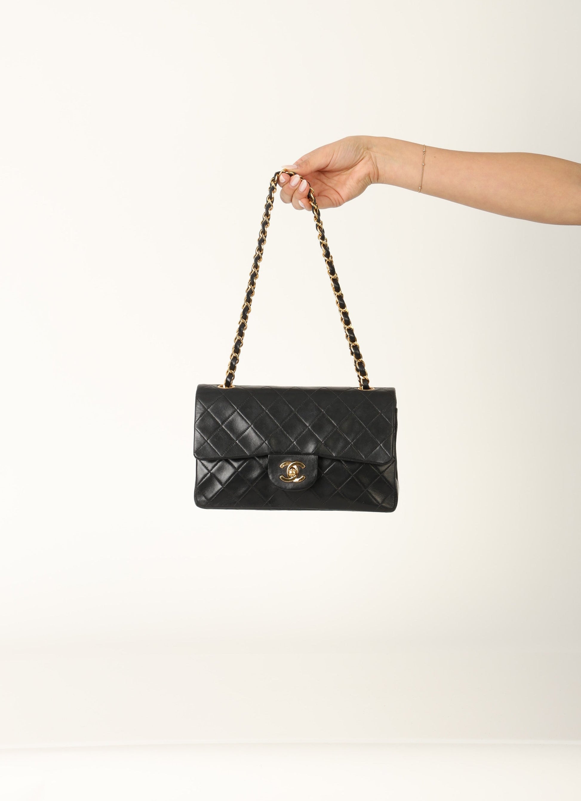 Dropping in the shop is a stunning, soft classic Chanel Lambskin Small Double Flap in black with gold hardware! An New investment piece that?can be loved for years to come. Vintage Chanel crafted in the 90s is crafted with 24k hardware and soft buttery lambskin. Don't miss out on this gorgeous find! Can be as a long or short-shoulder bag. You can fit your phone, keys wallet, and a few other smaller essentials.?