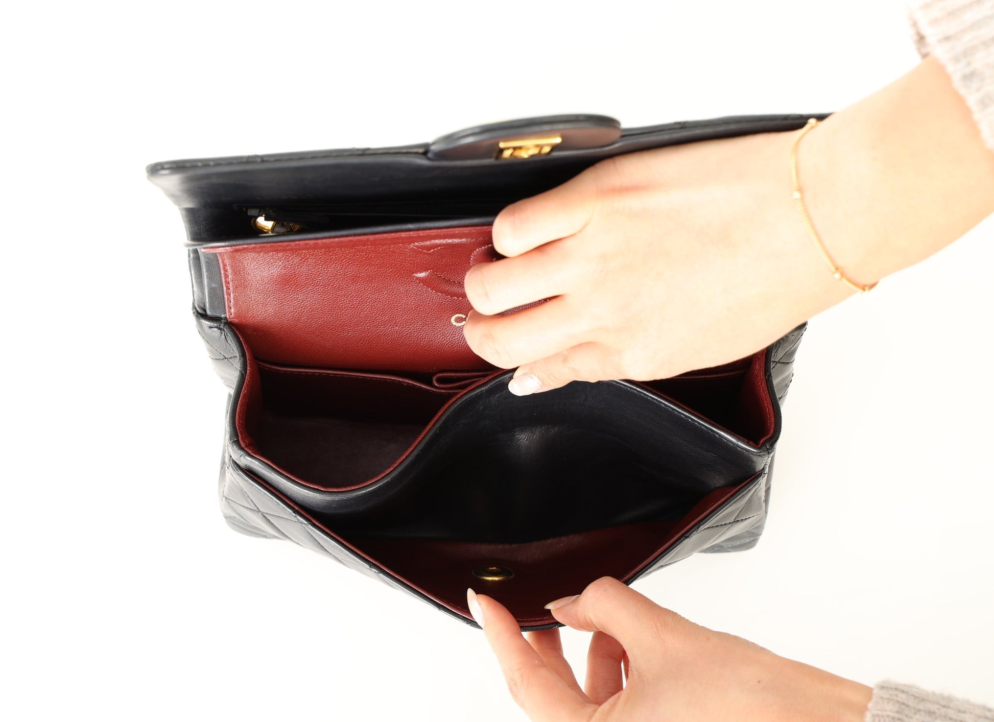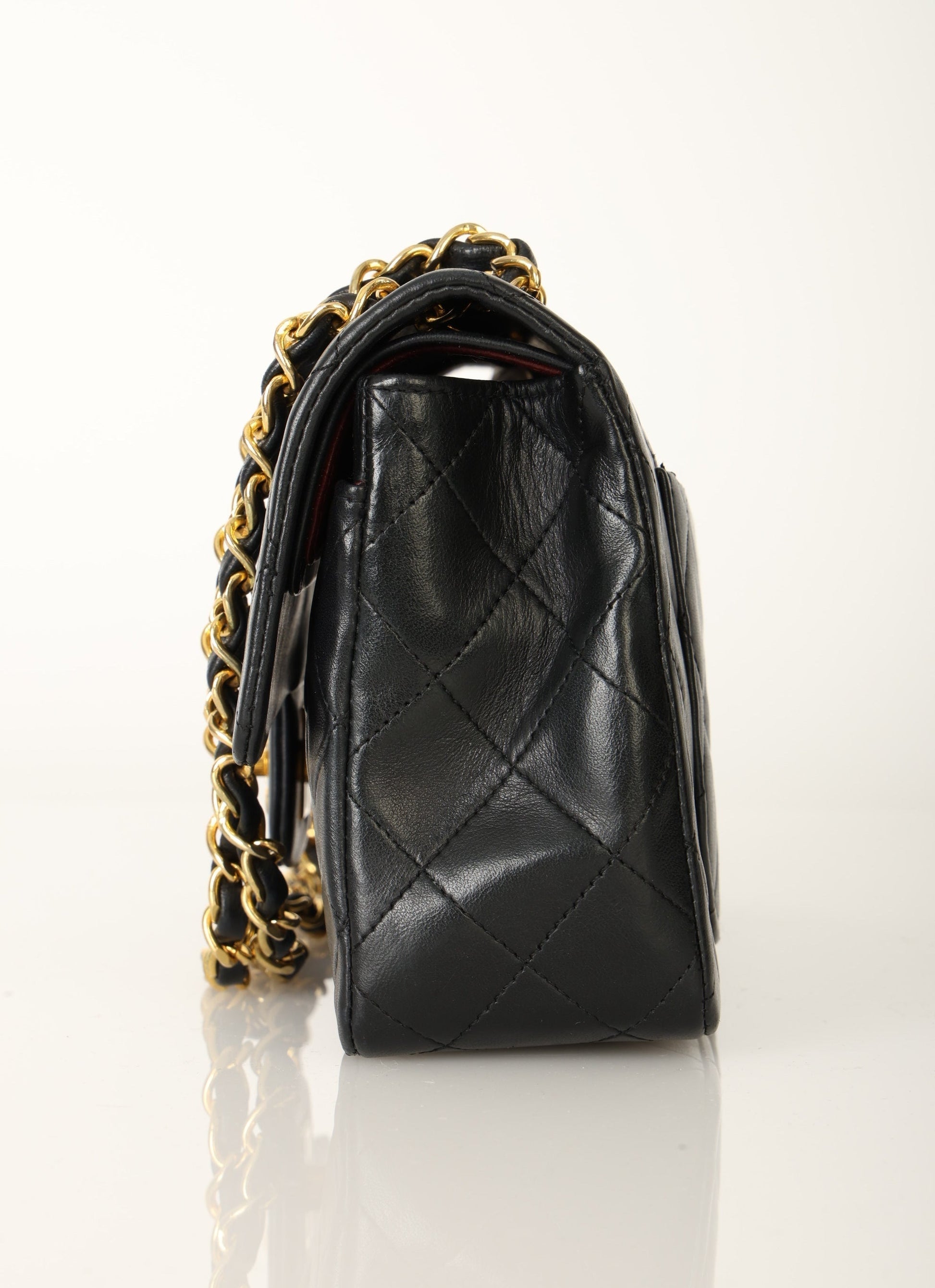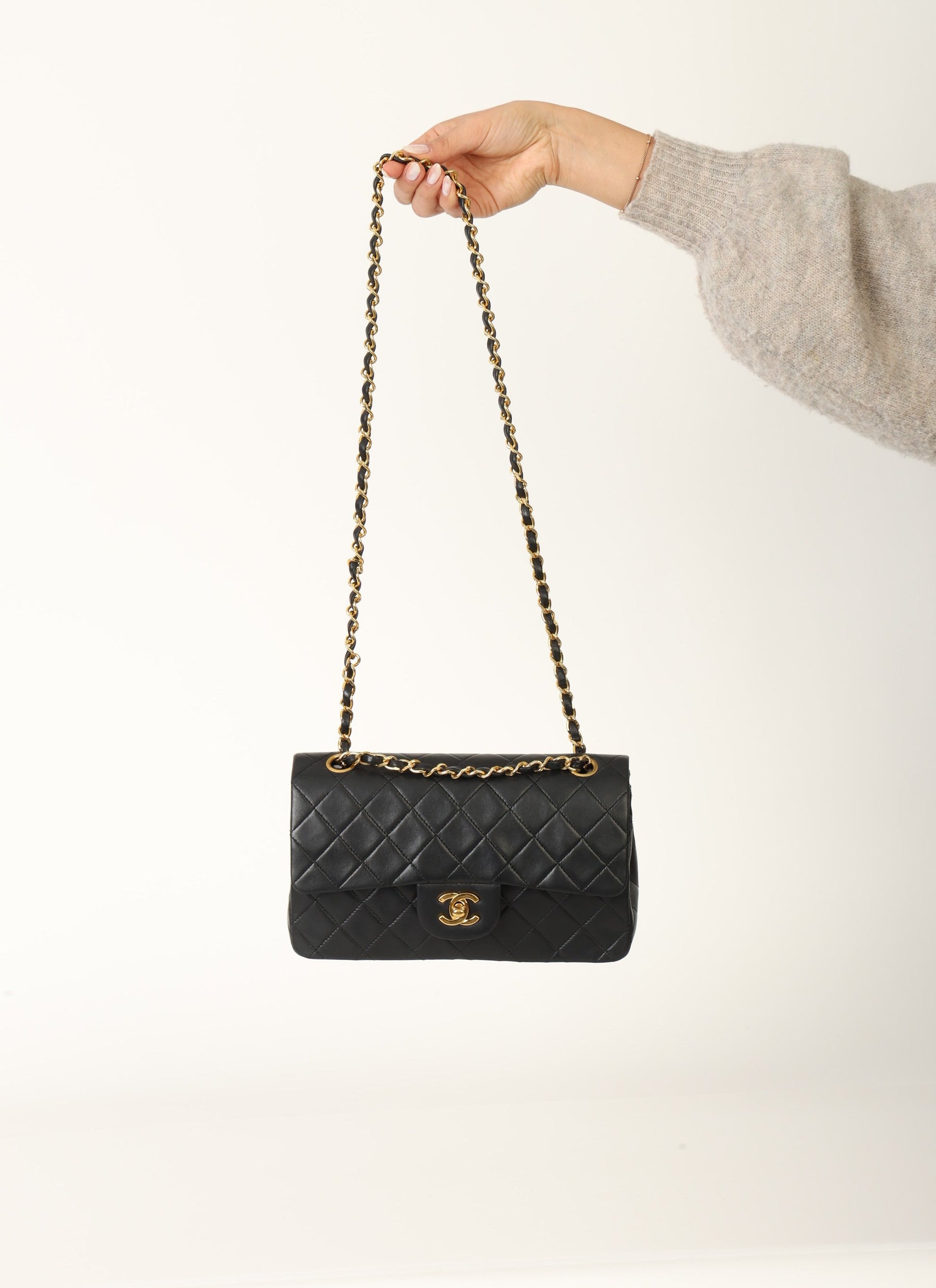 Dropping in the shop is a stunning, soft classic Chanel Lambskin Small Double Flap in black with gold hardware! An New investment piece that?can be loved for years to come. Vintage Chanel crafted in the 90s 24k hardware and soft buttery lambskin. Don't miss out on this gorgeous find! Can be as a long or short-shoulder bag. You can fit your phone, keys wallet, and a few other smaller essentials.?