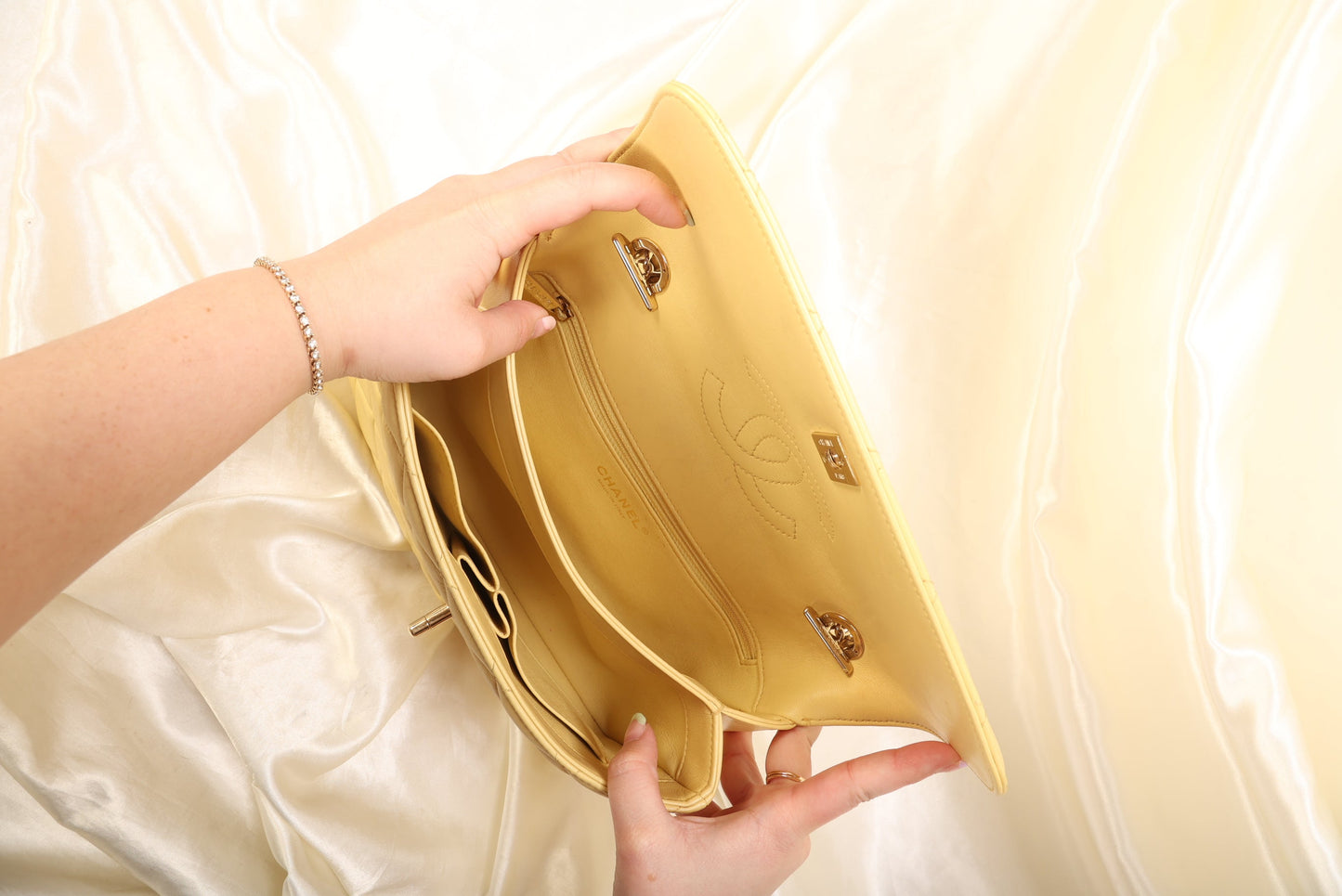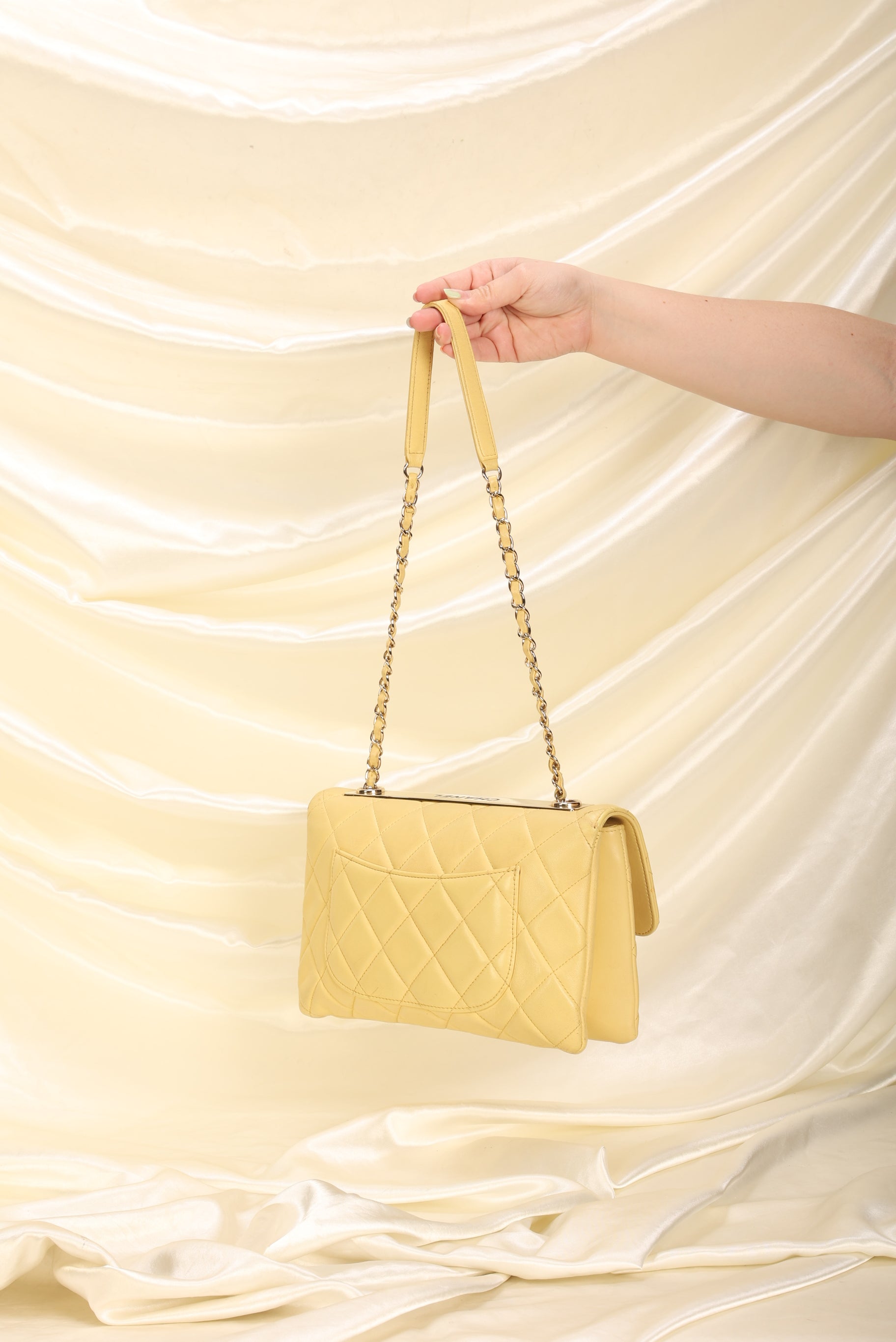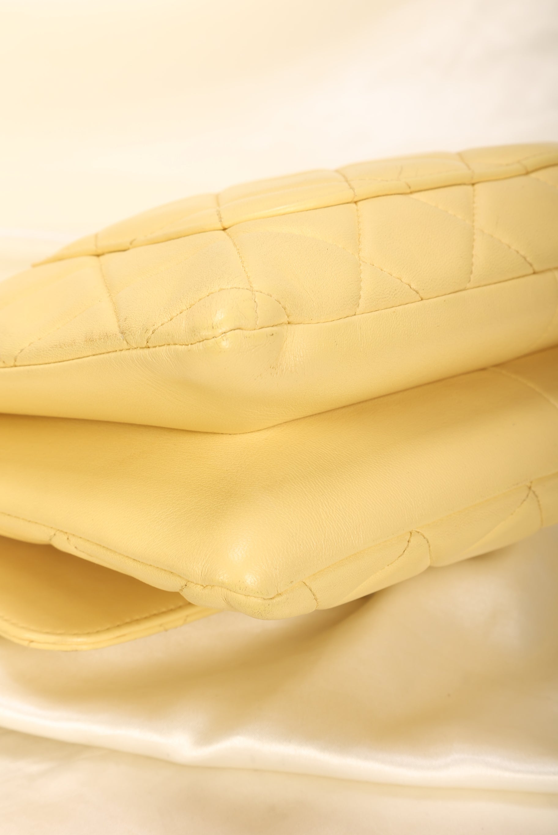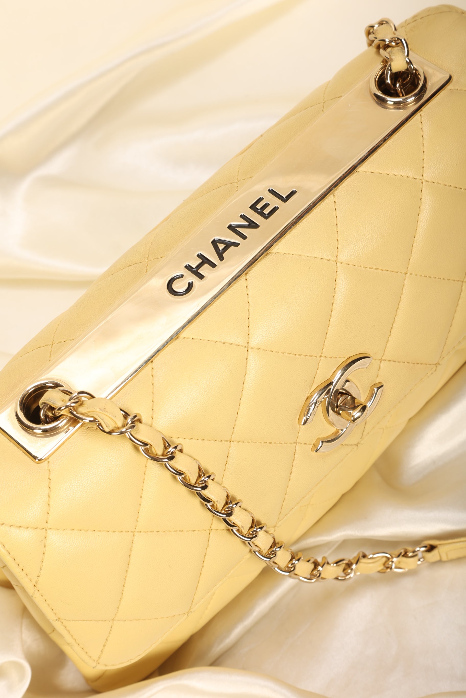 A vibrant and bold Chanel bag that's sure to make a statement. The eye-catching lemon yellow lambskin leather is perfectly complemented by the exquisite gold hardware, creating a look that's both modern and timeless. This shade is the perfect pop of color to add to any outfit and is sure to turn heads. Whether you're pairing it with a casual outfit or using it to add a bold accent to a formal look, this is the perfect accessory.
