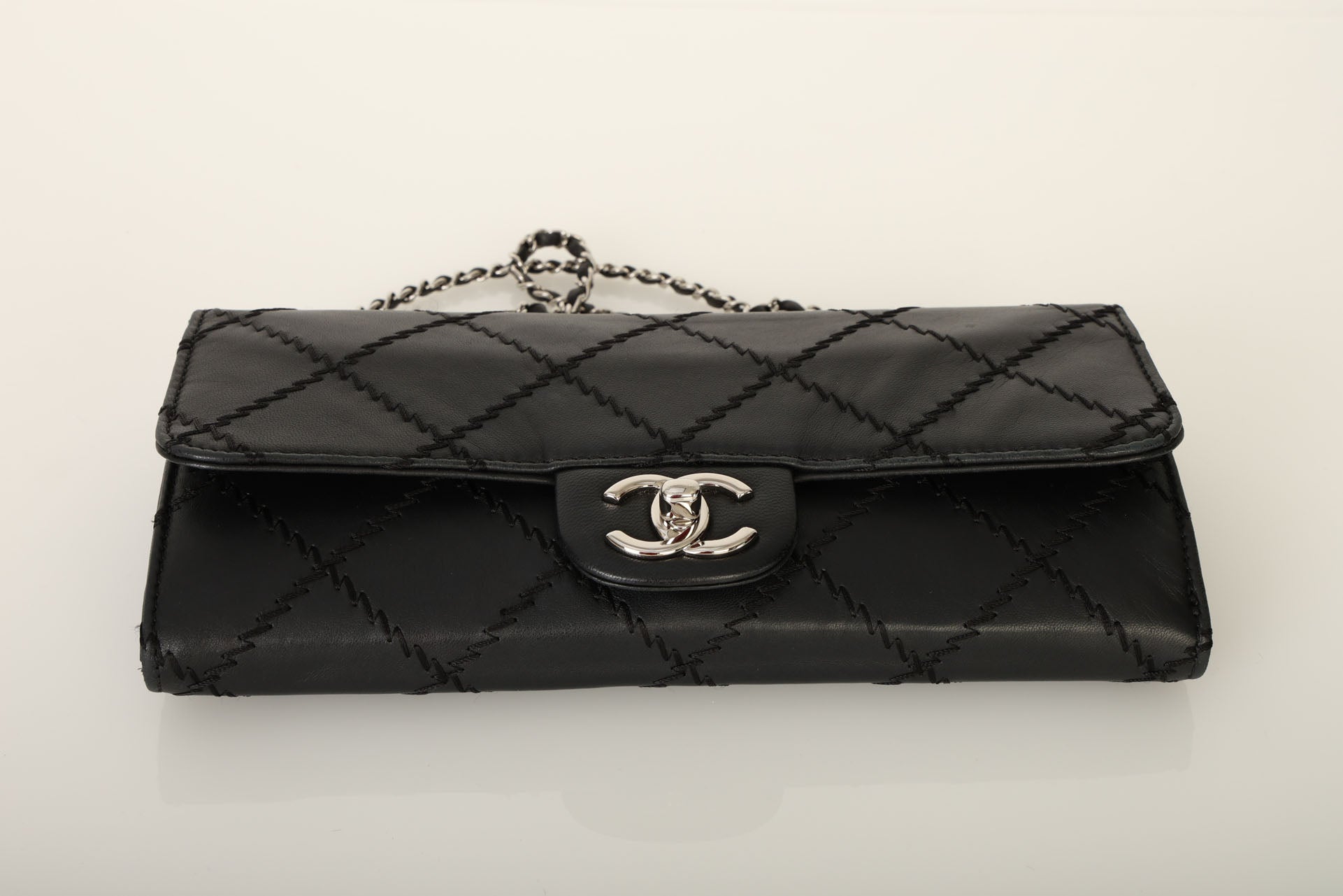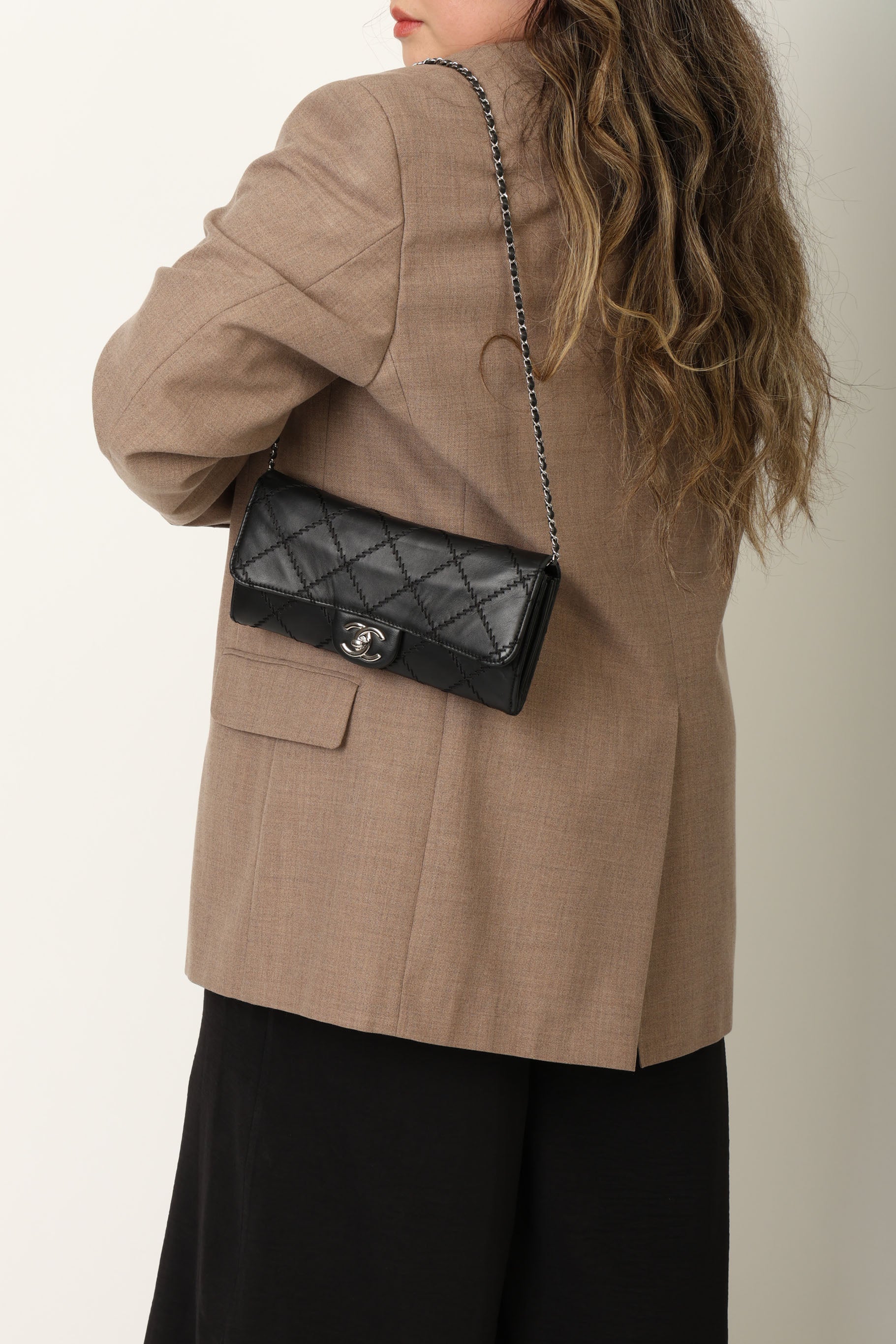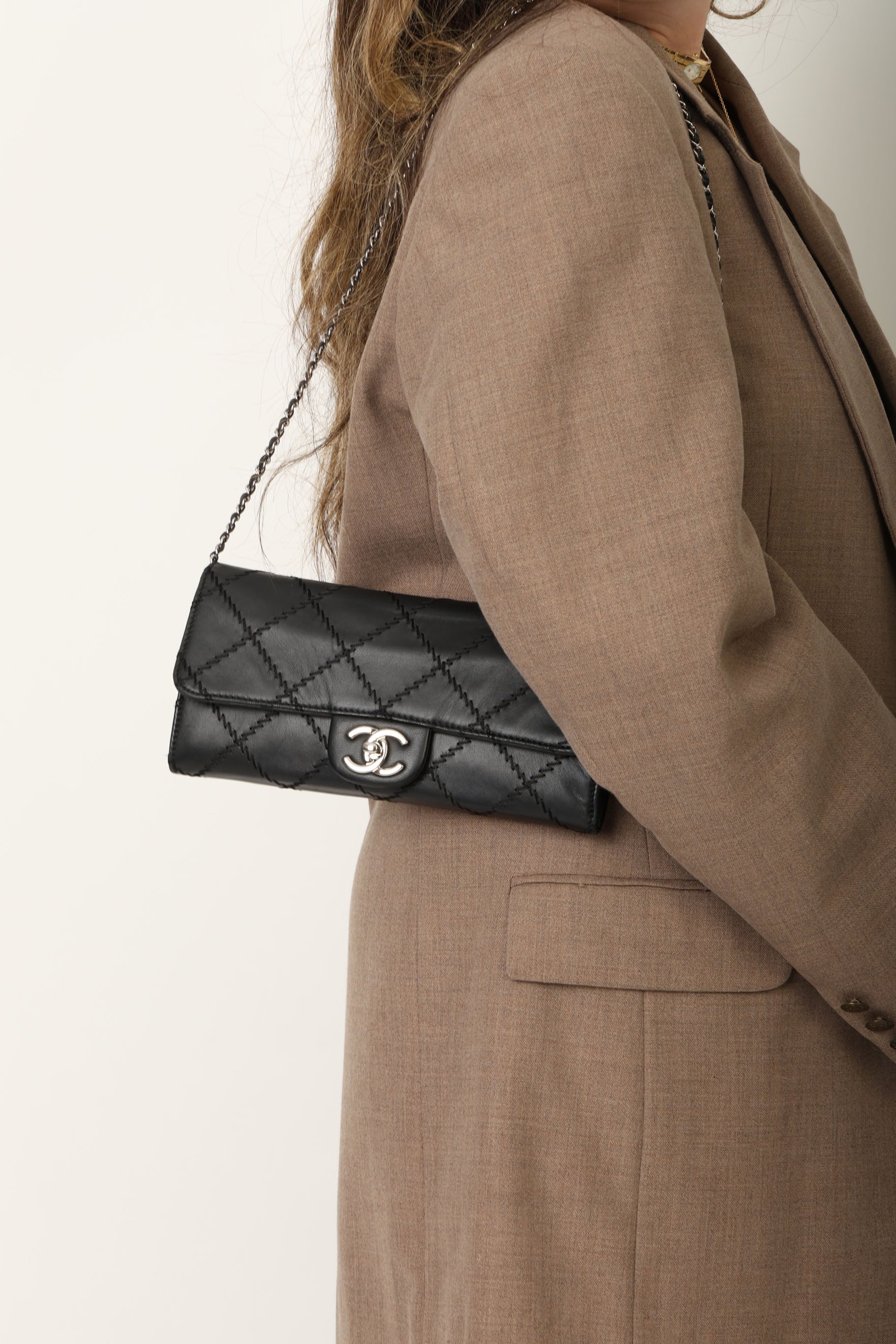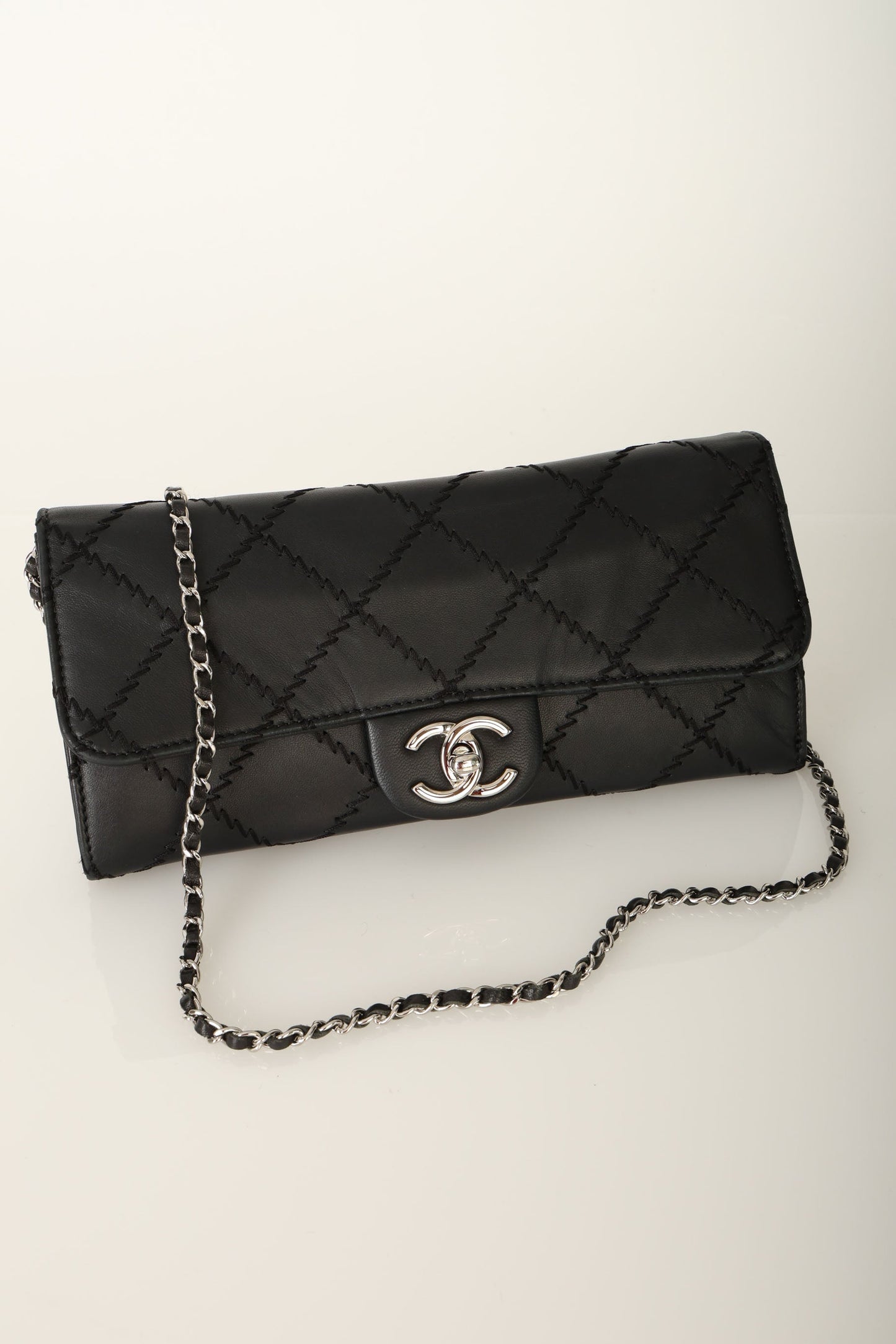 Chanel 2011 Lambskin Wildstitch East West Wallet on Chain