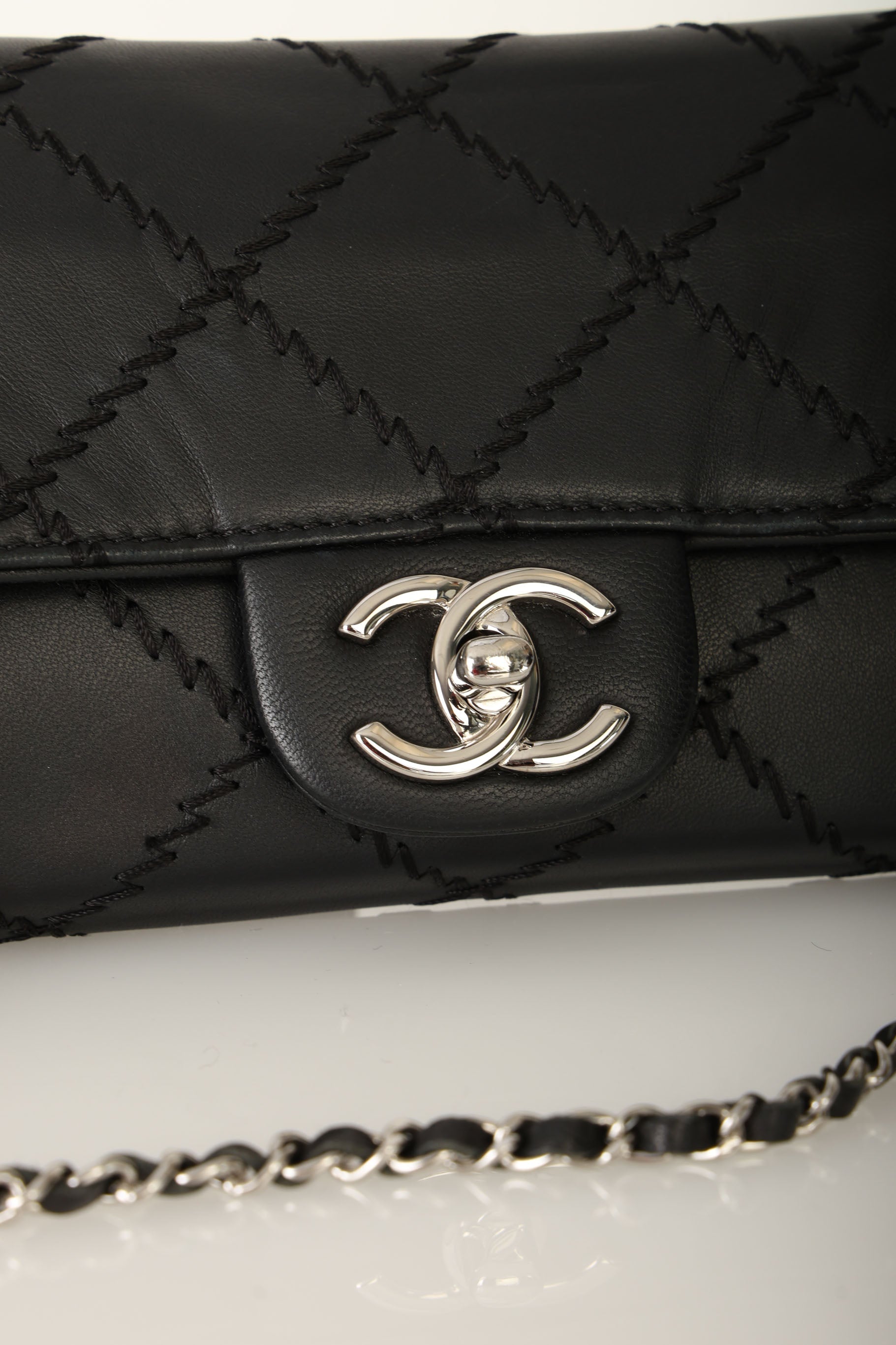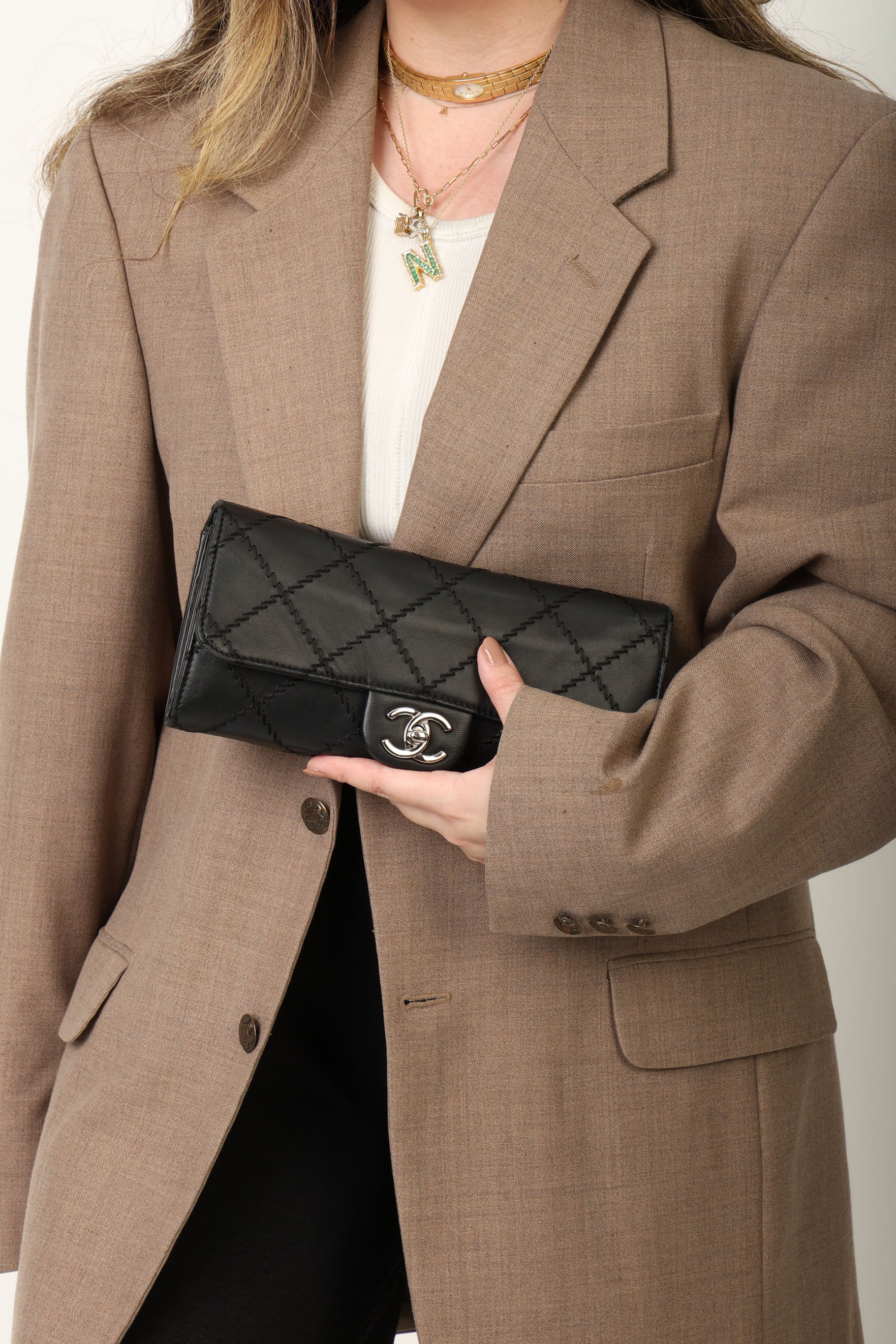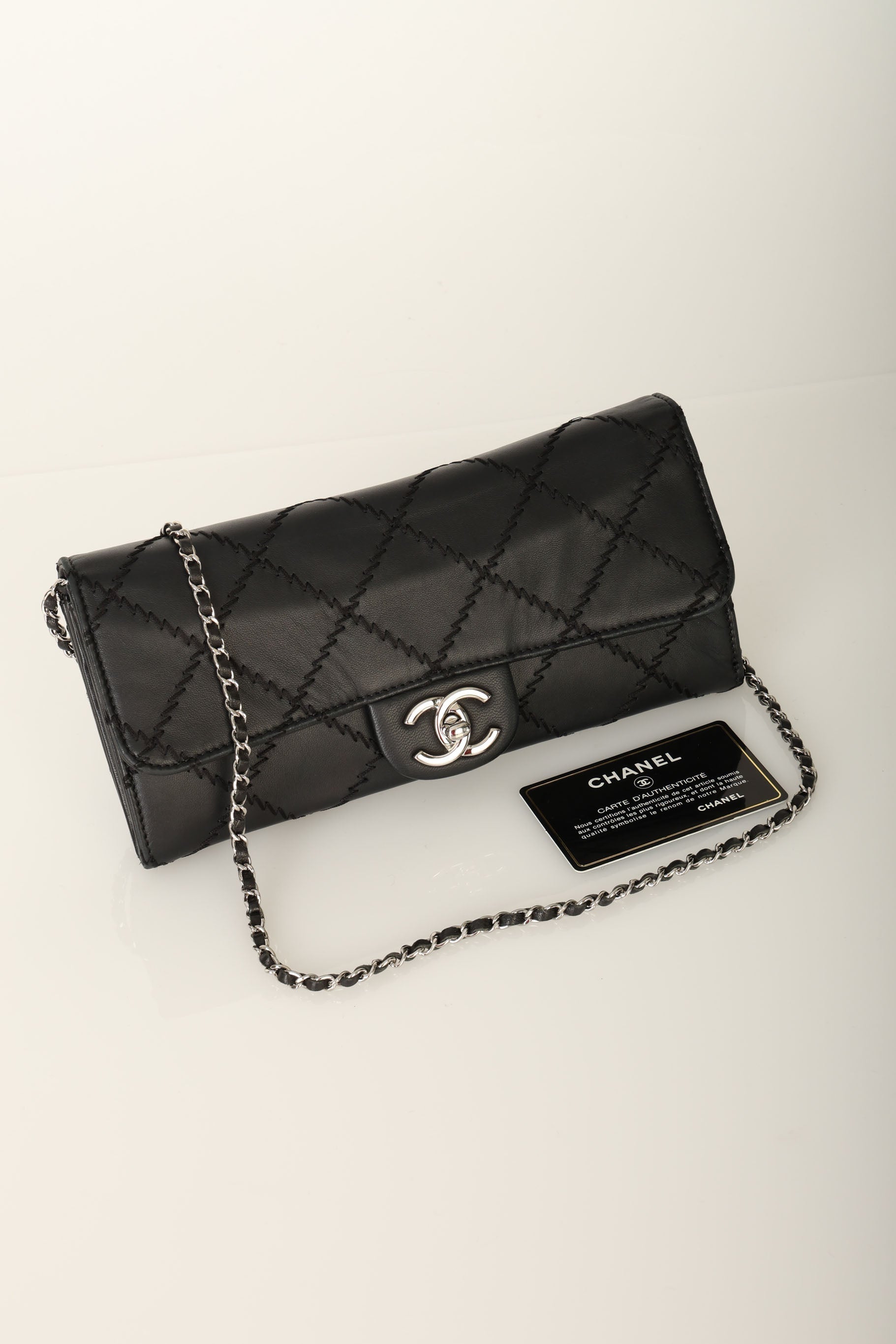 Chanel 2011 Lambskin Wildstitch East West Wallet on Chain
