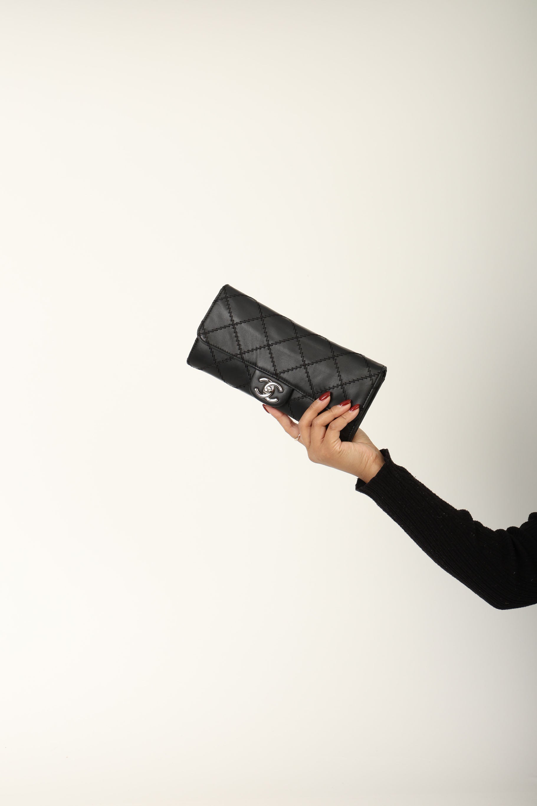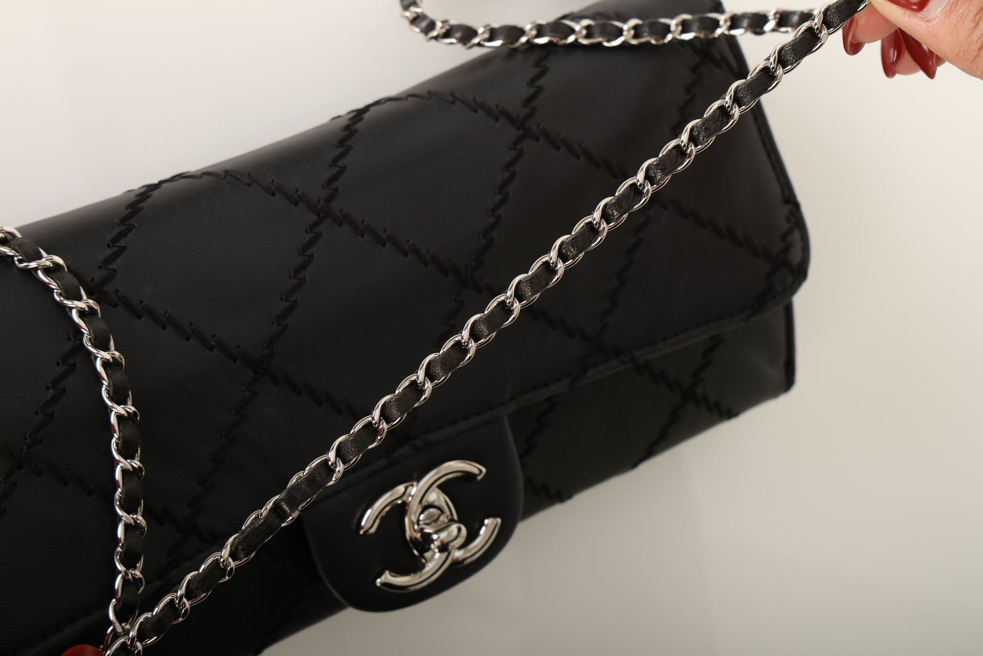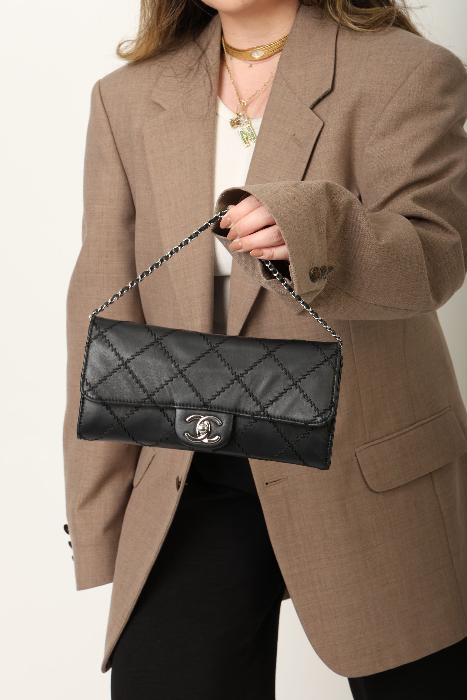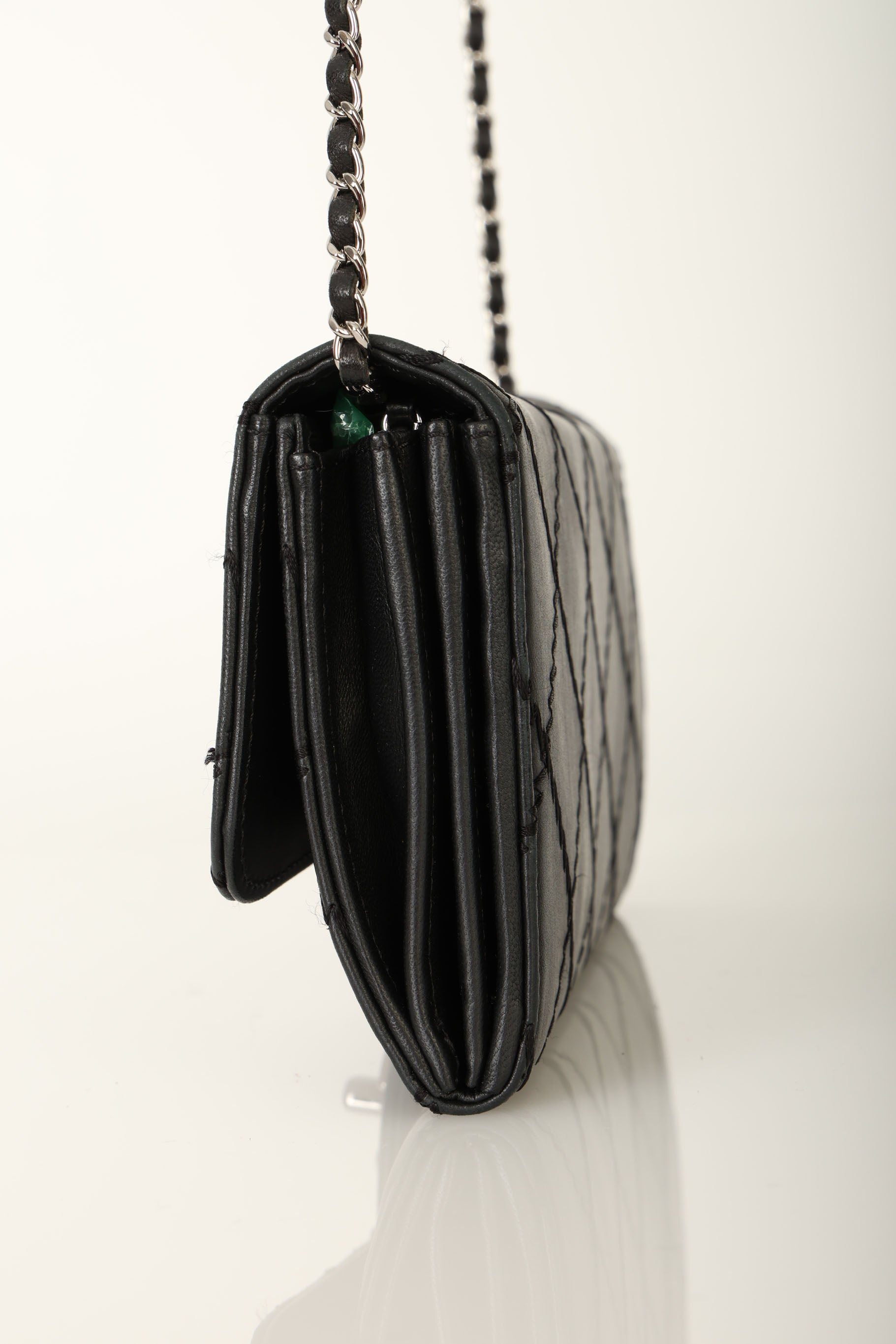 Chanel 2011 Lambskin Wildstitch East West Wallet on Chain