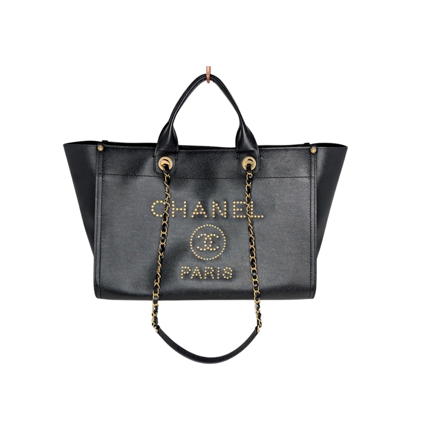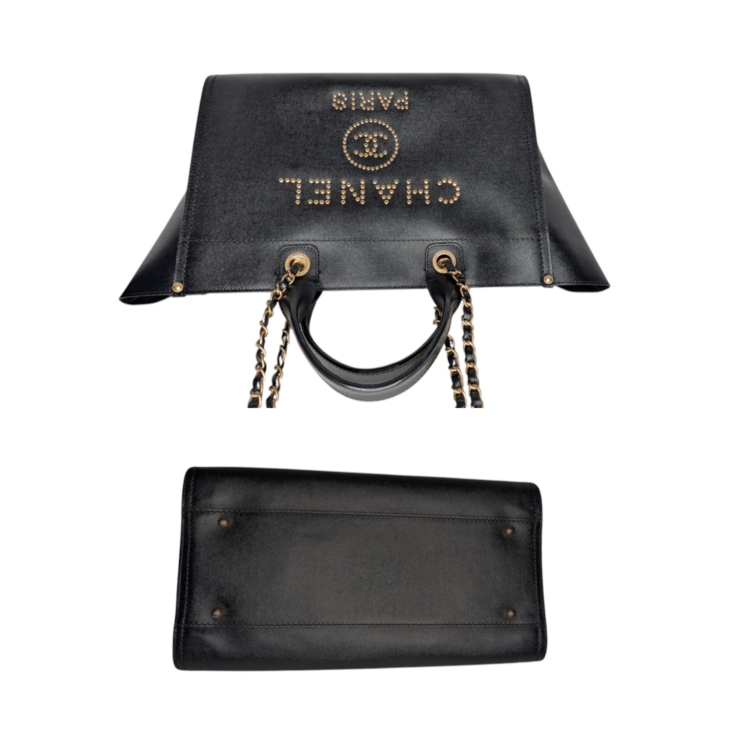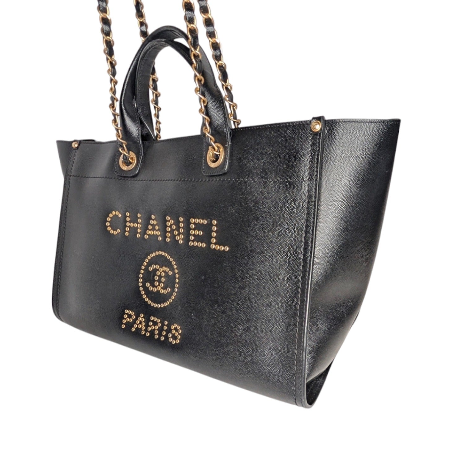 Chanel 2019 Black Caviar Studded Logo Deauville Tote