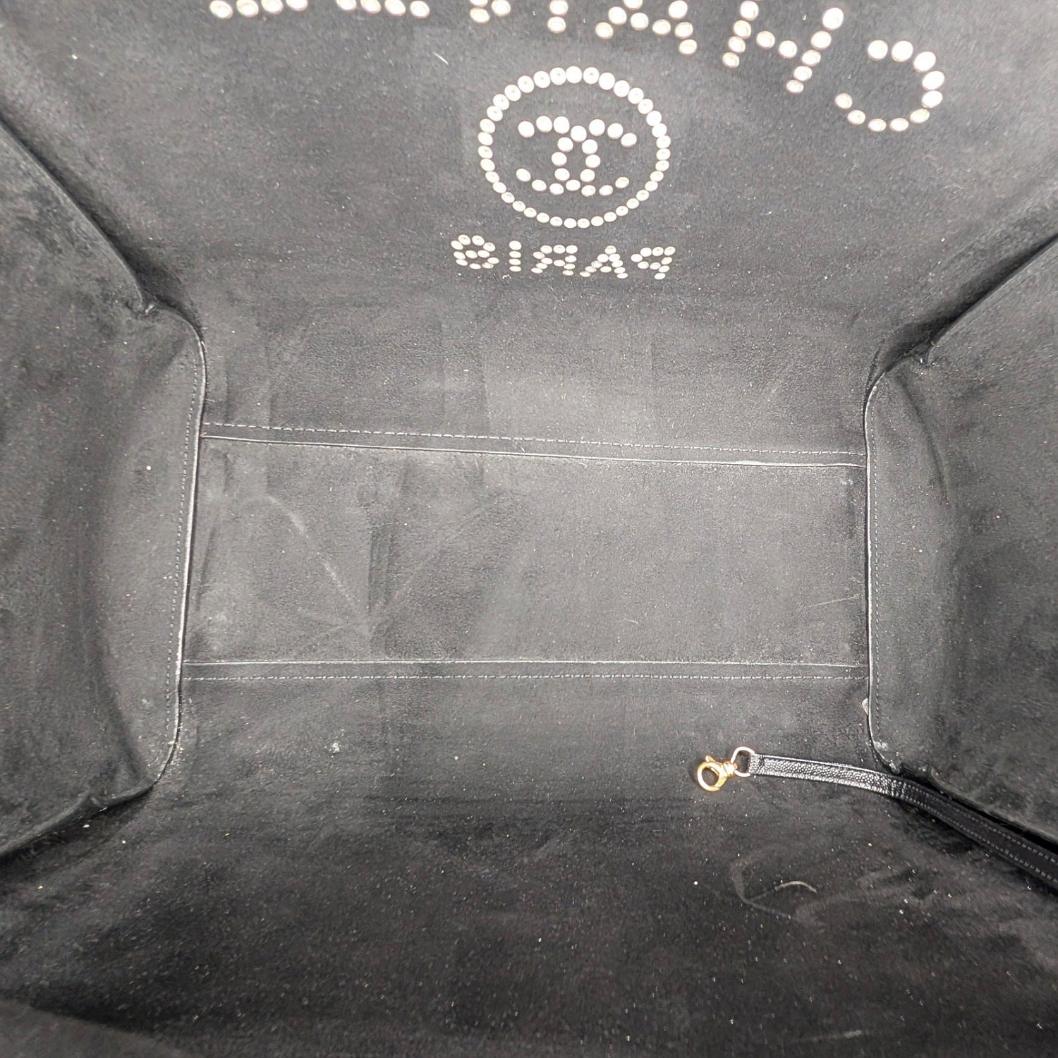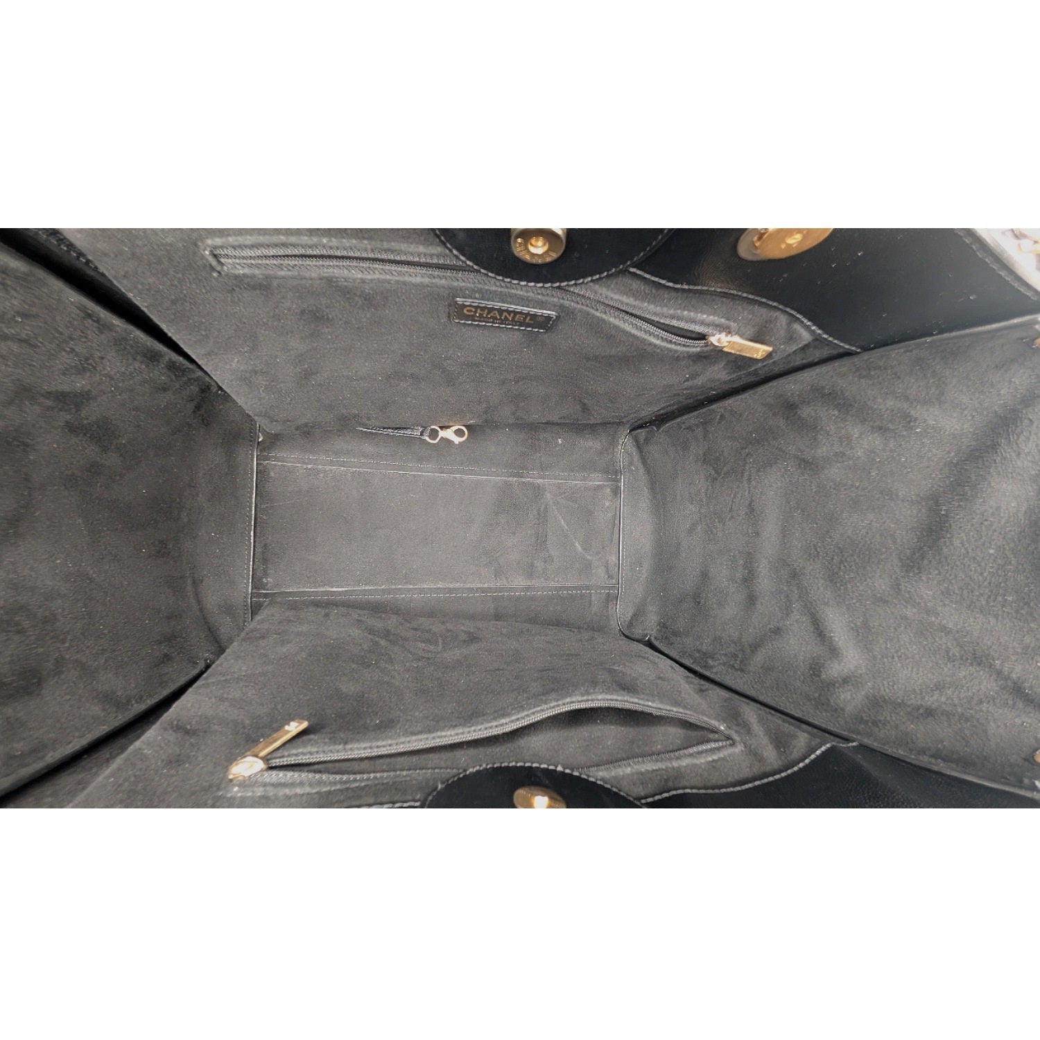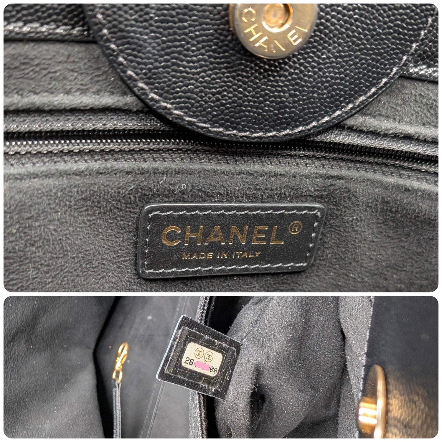 Chanel 2019 Black Caviar Studded Logo Deauville Tote