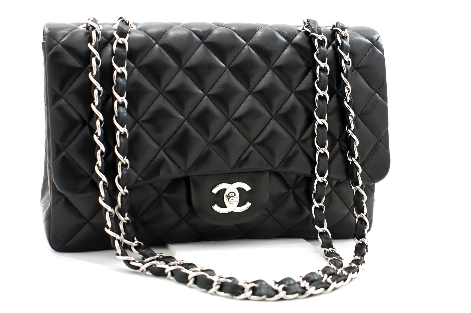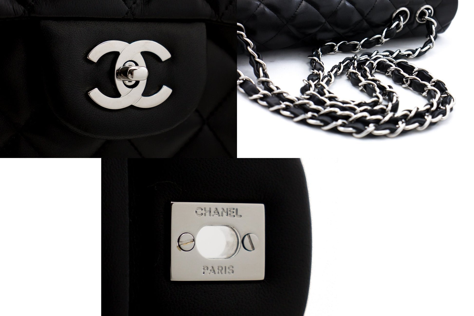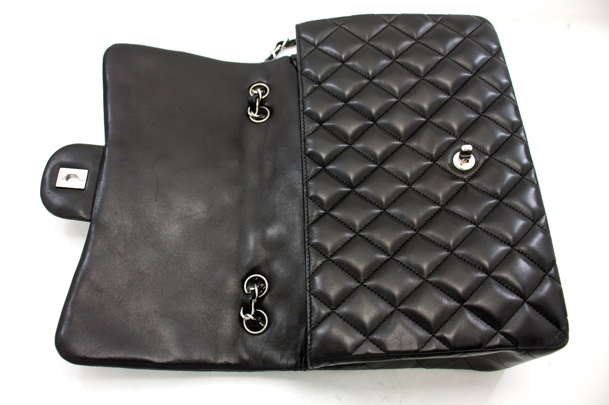An CHANEL Large Classic Handbag 11"Chain Shoulder Bag Flap Black Lamb h44 This item is Contemporary. The year of manufacture would be 2006.
