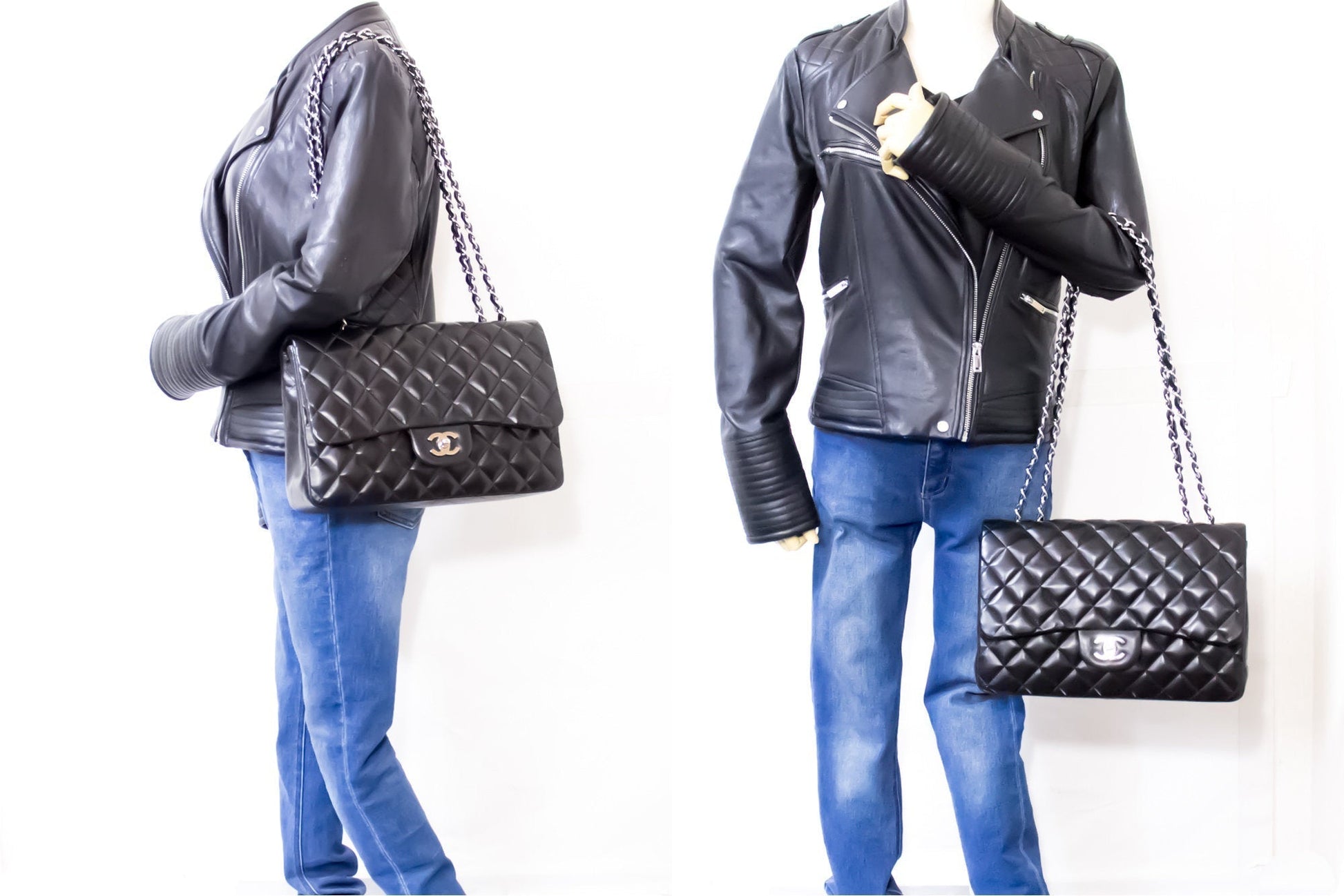 CHANEL Large Classic Handbag 11"Chain Shoulder Bag Flap Black Lamb h44