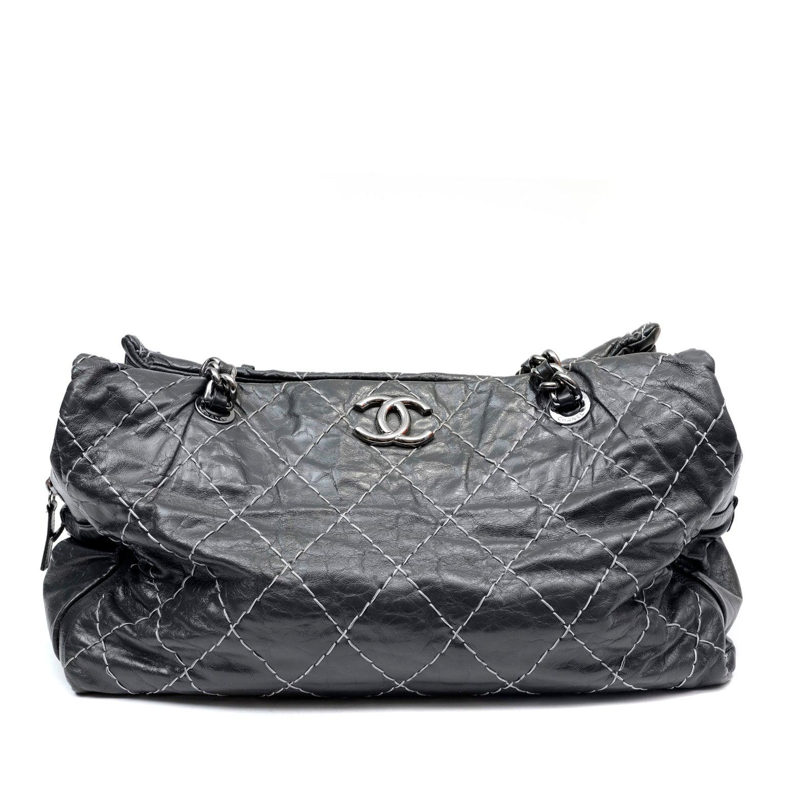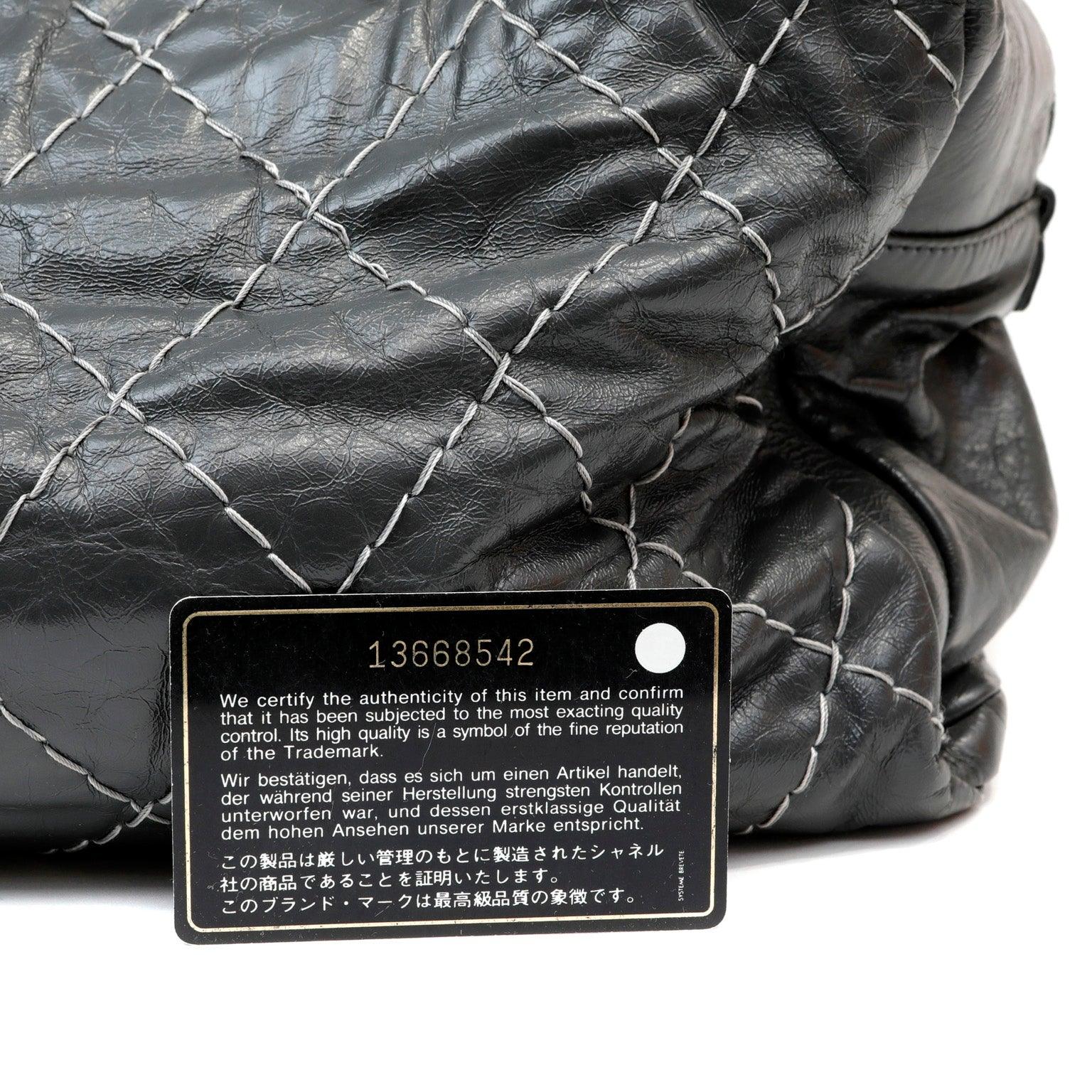 Chanel Slate Topstitched Distressed Leather Large Tote