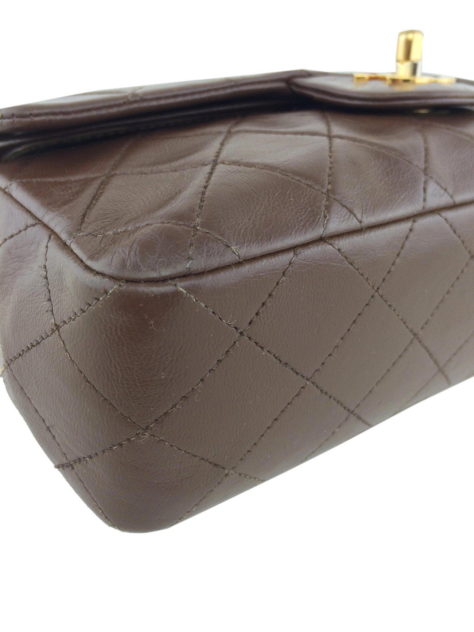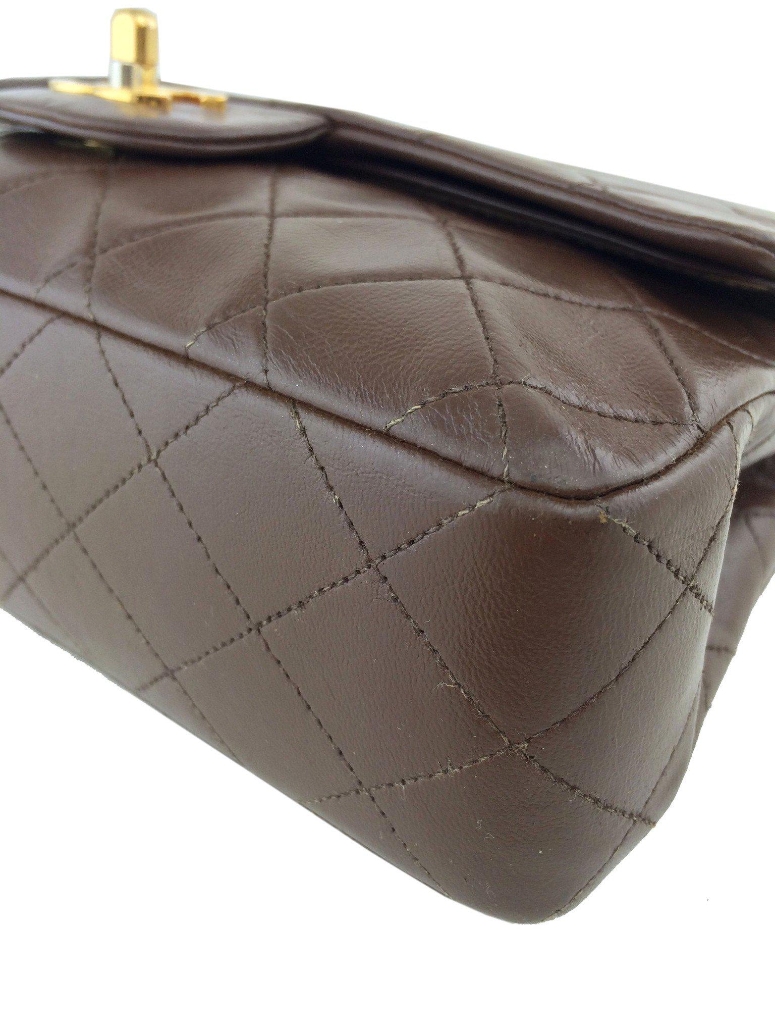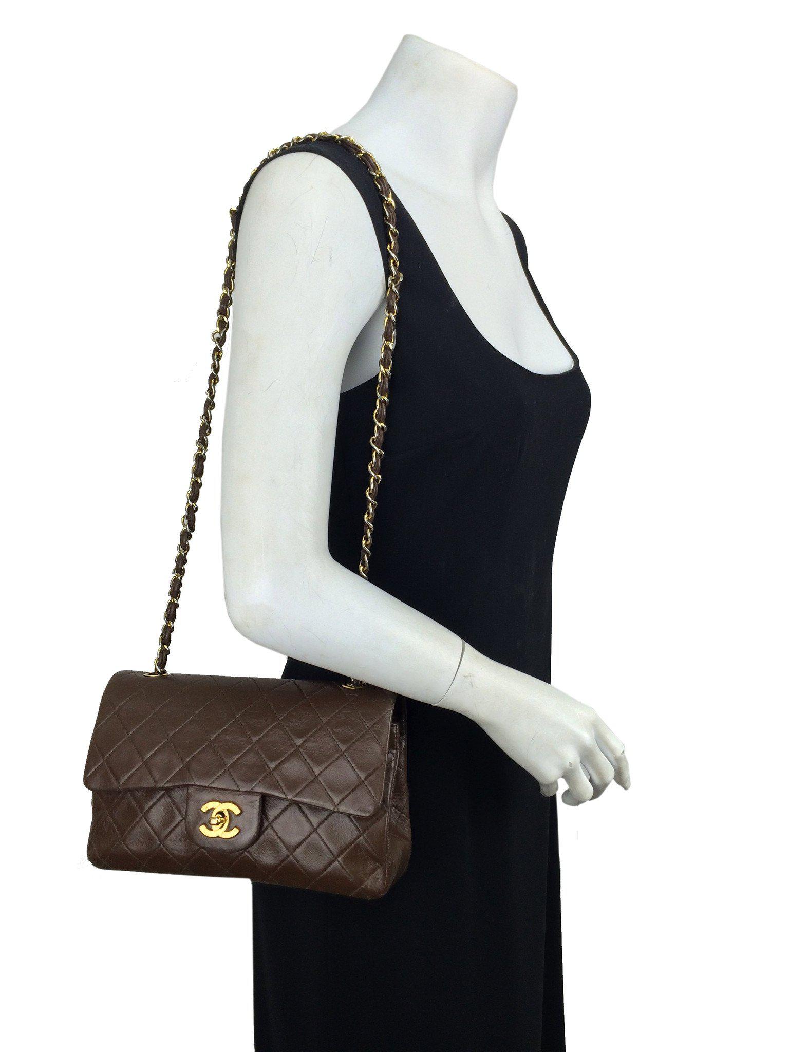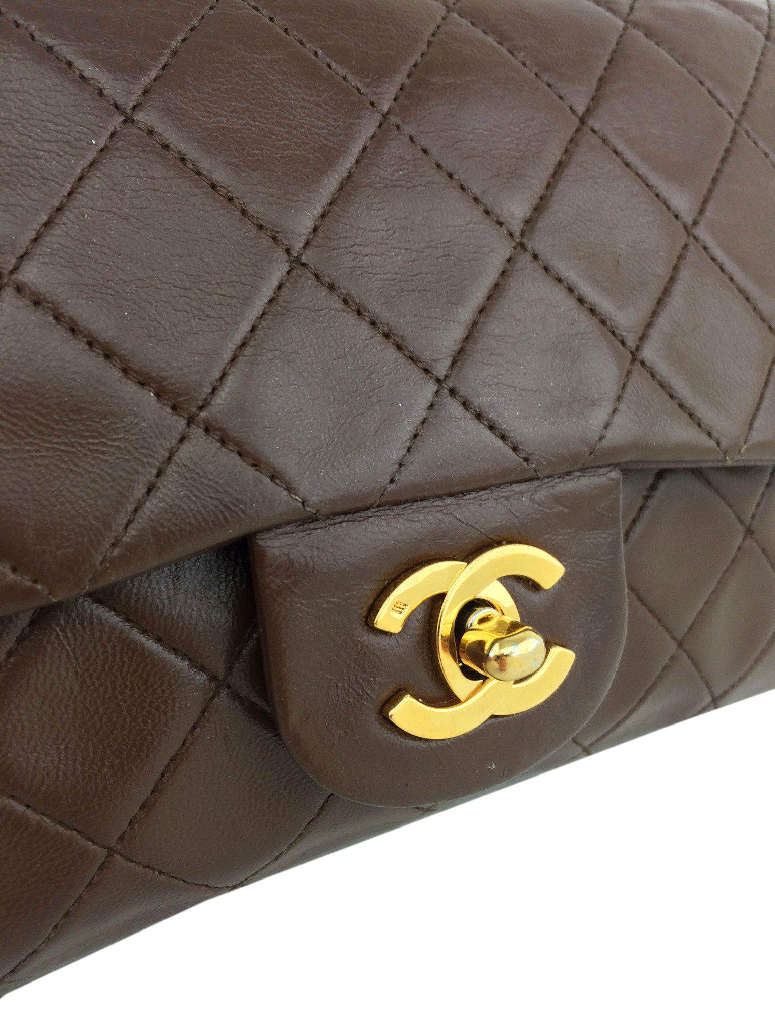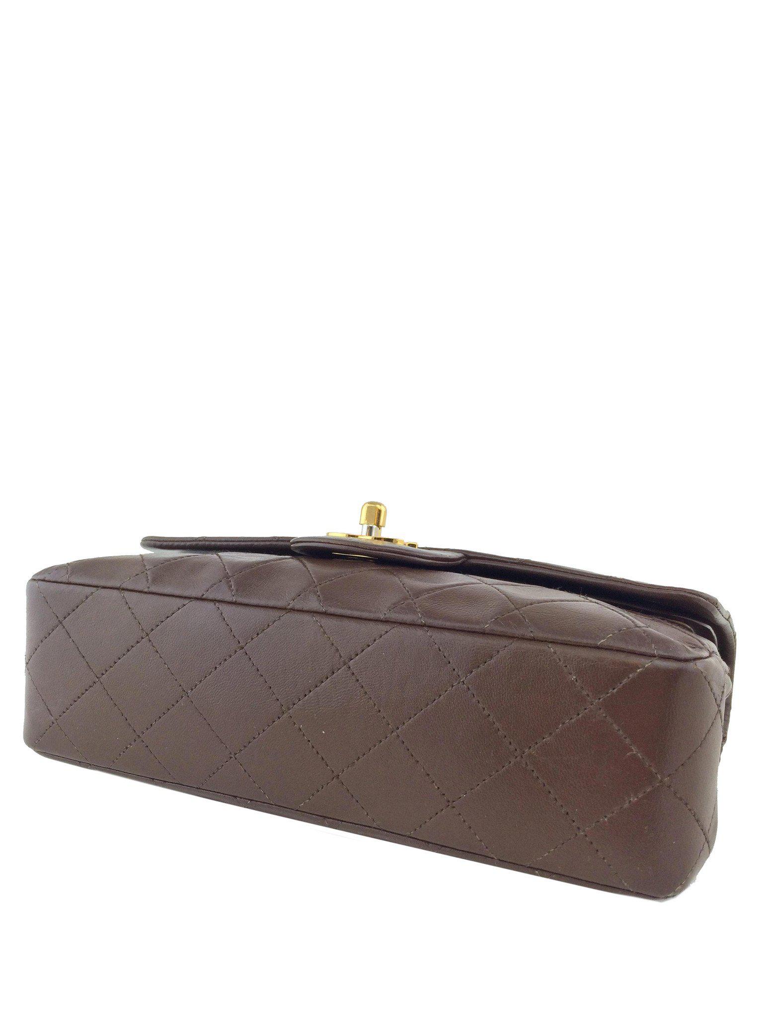 We the ity of this Chanel Quilted Lambskin Small Classic Double Flap Bag crafted in supplebrown diamond quilted lambskin leather and gold-tone hardware. This iconic bag features a chain link and leather shoulder strap that can be long or doubled, an exterior rear pocket and a double front flap with signature CC turn lock closure.