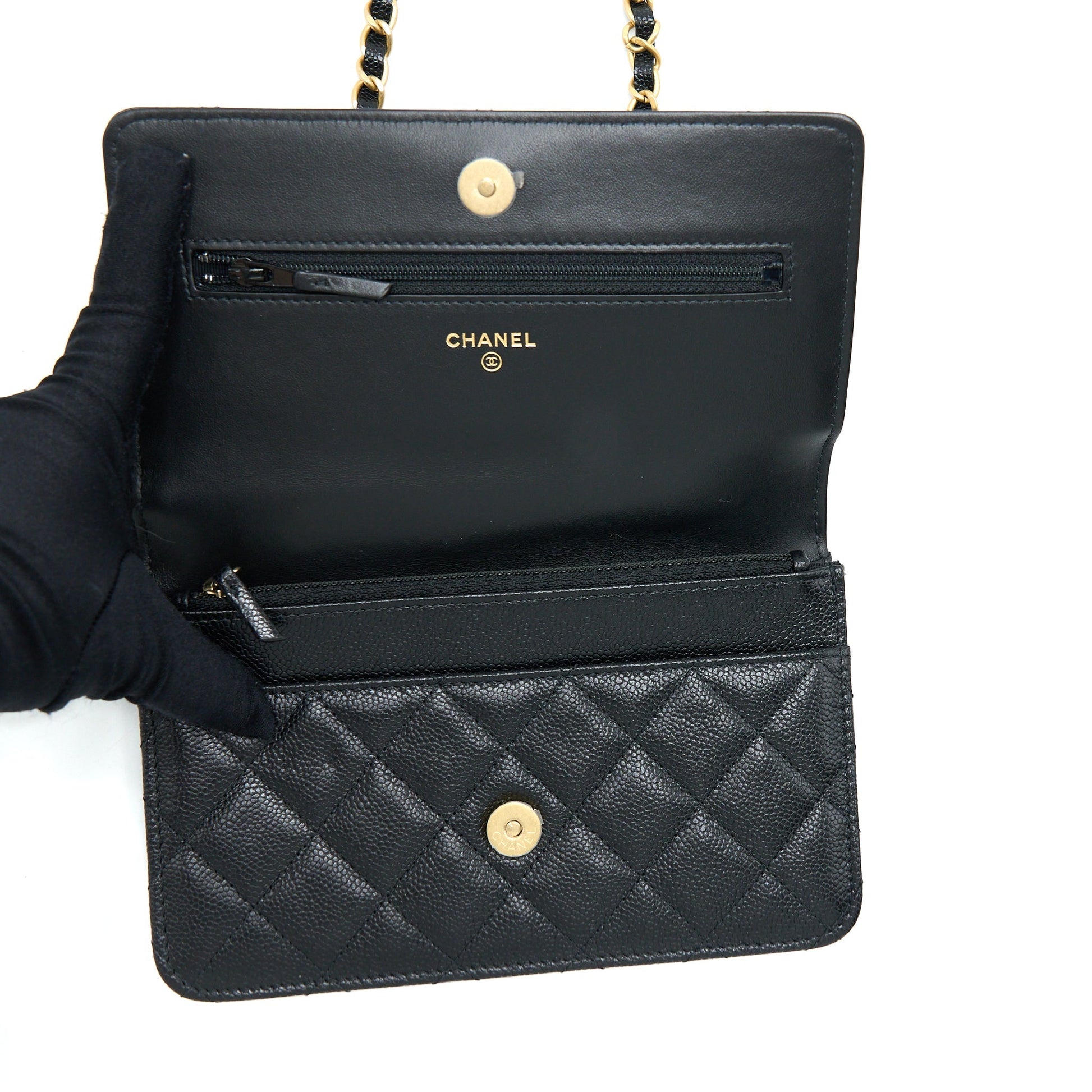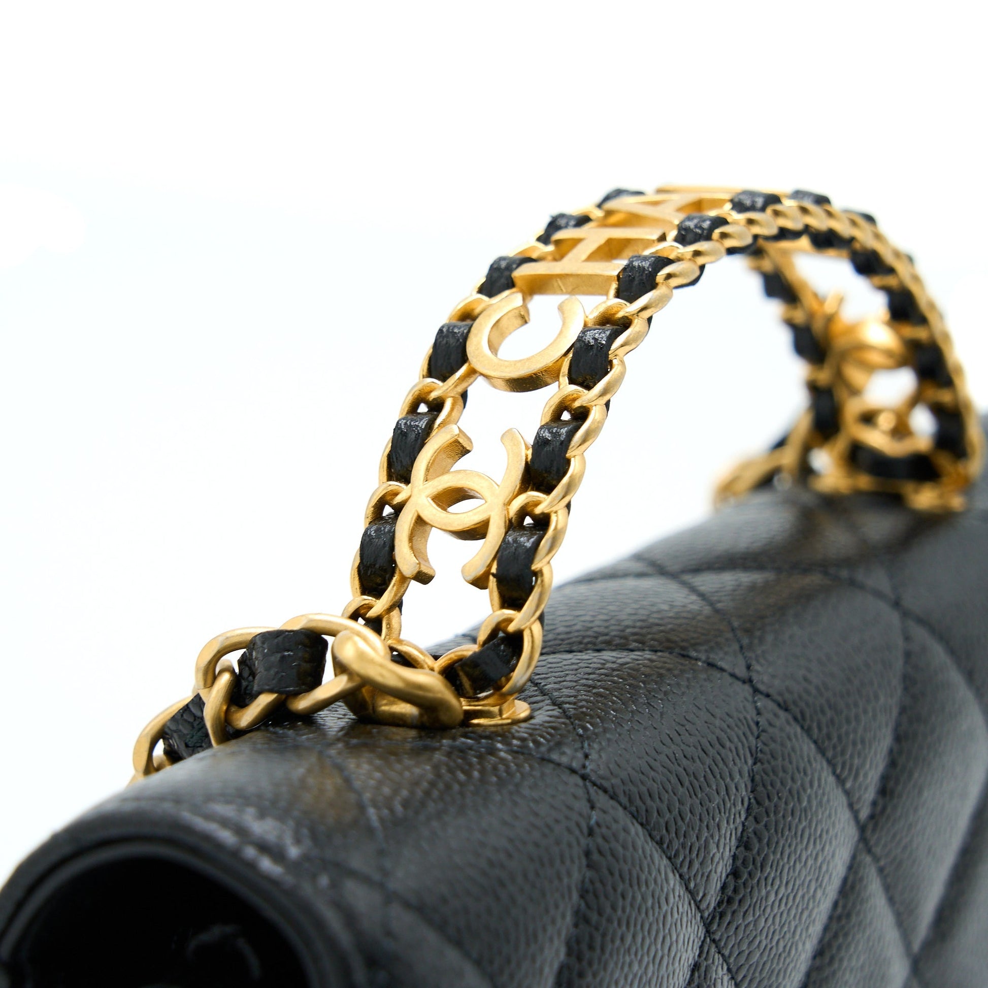 Chanel Letter Top Handle Wallet On Chain Caviar Black GHW (Microchip)
