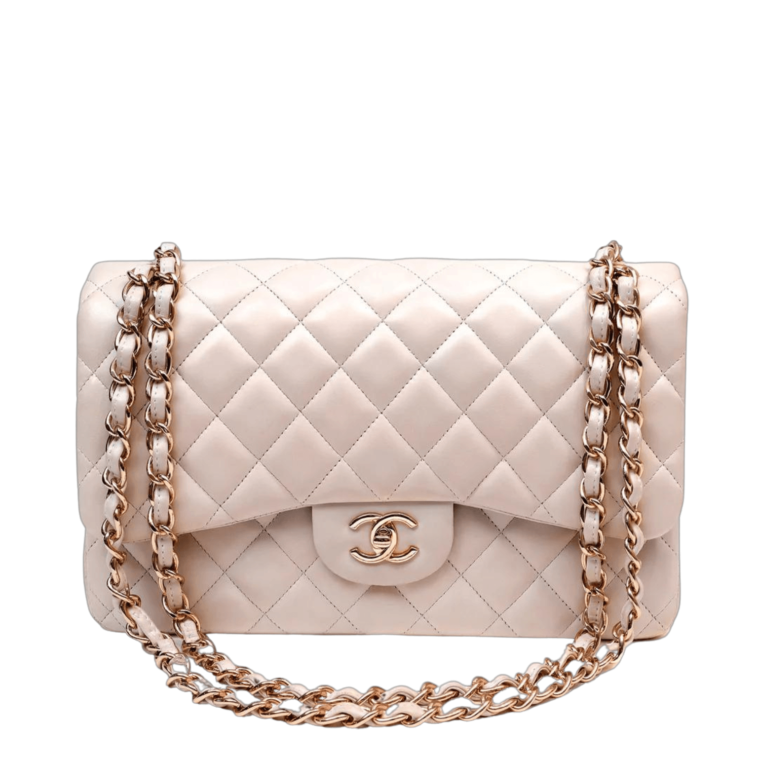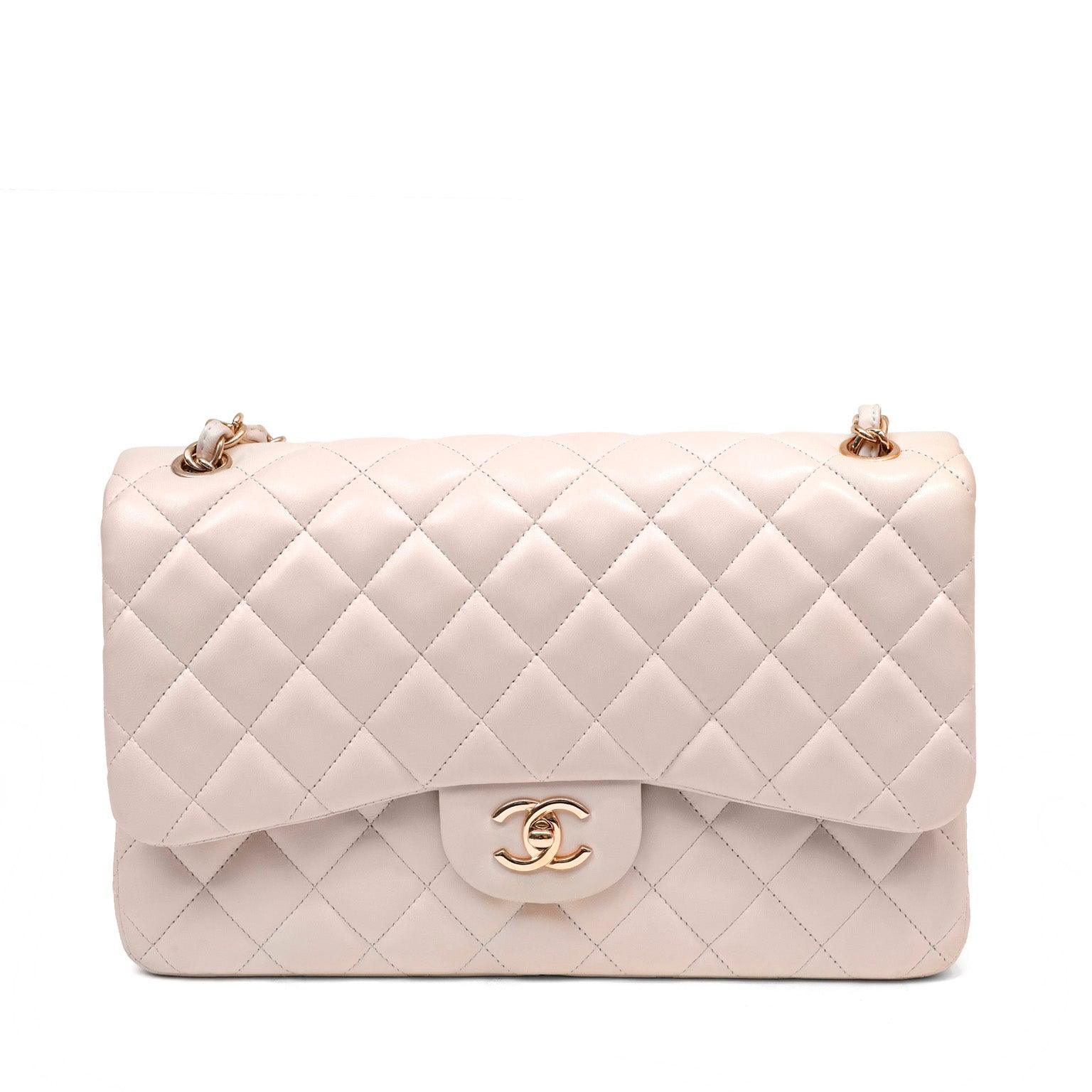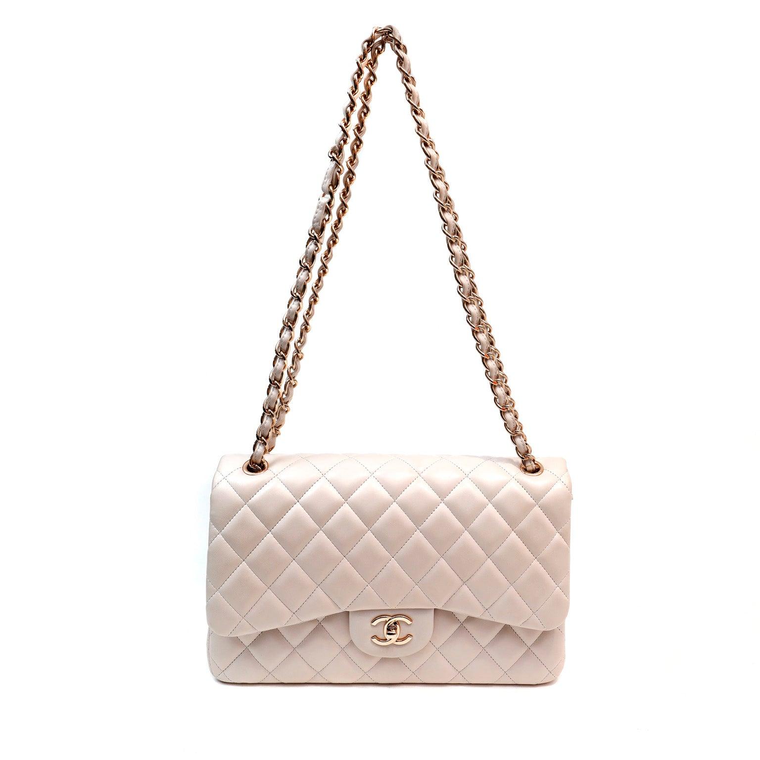 Chanel Light Beige Lambskin Jumbo Classic w/ Rose Gold Hardware