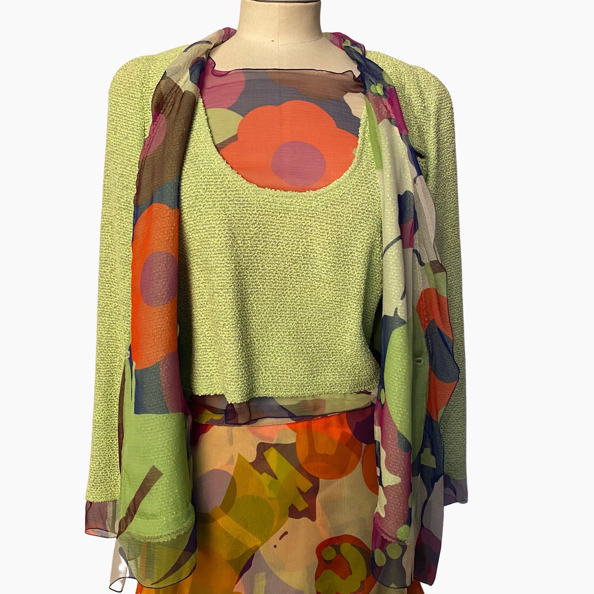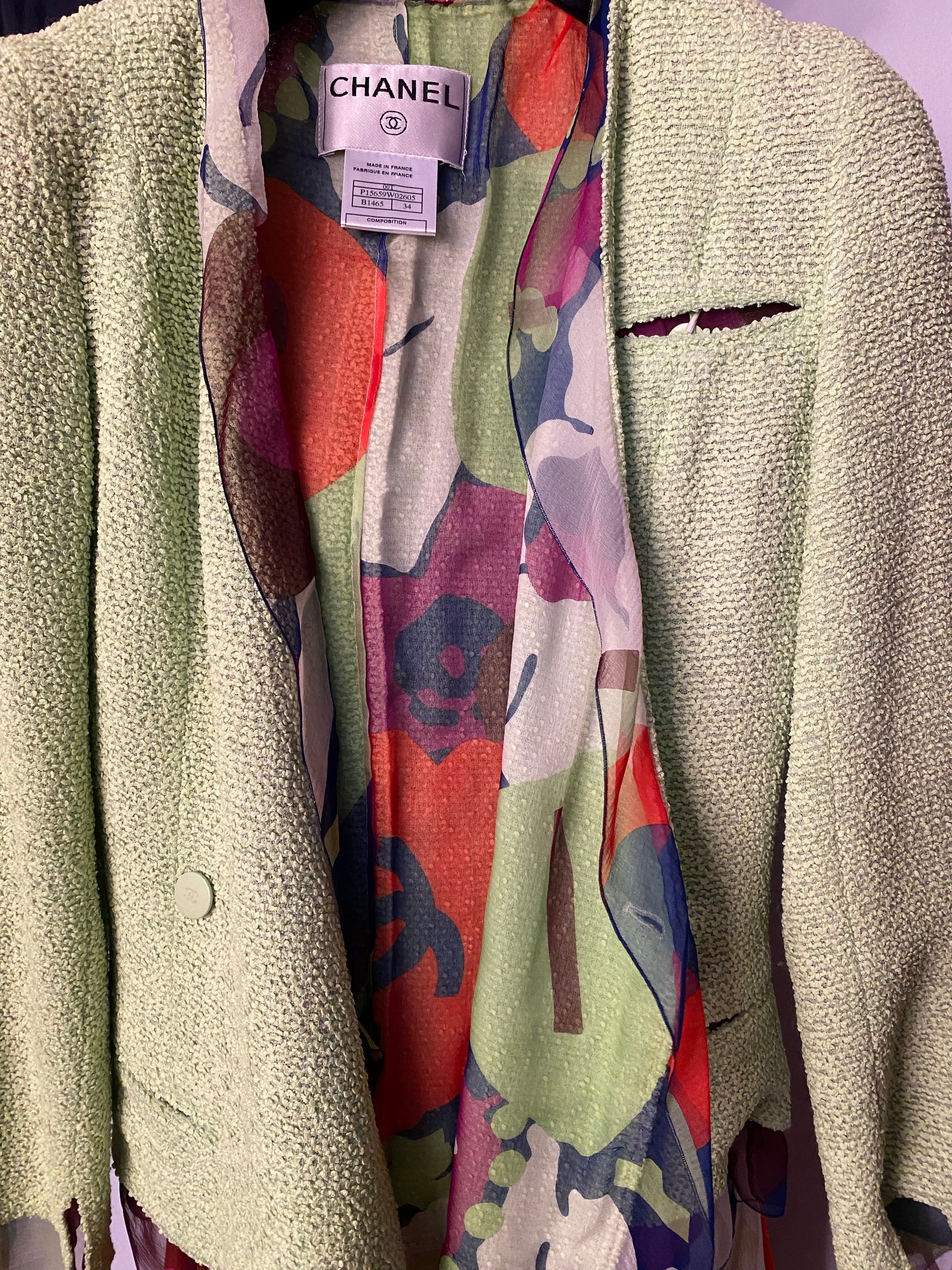 DESCRIPTION: Chanel jacket with silk lining featuring multicolor floral print. Matching a top and skirt available on Lysis.