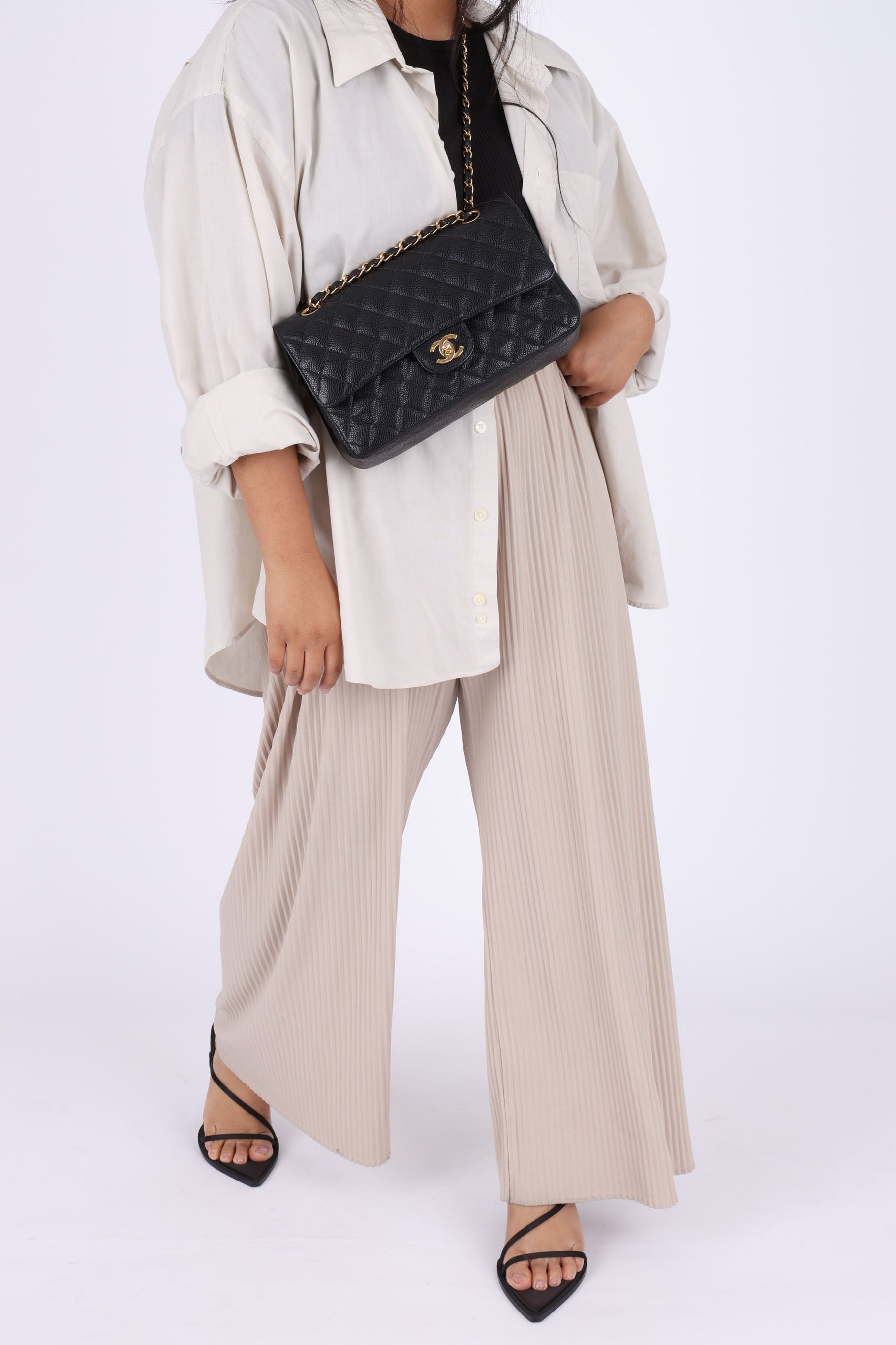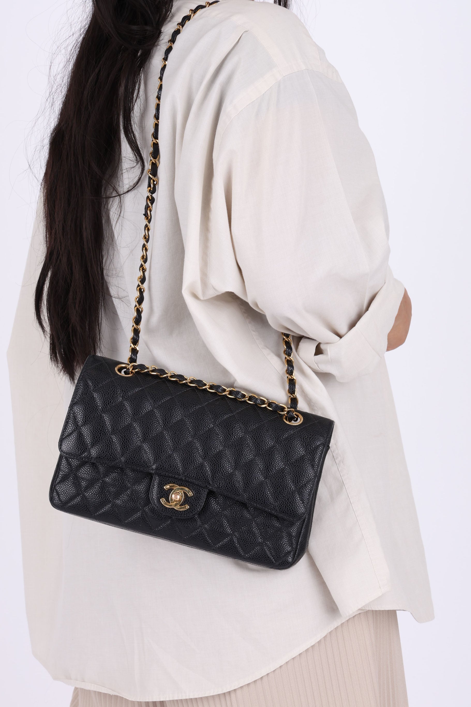 Dropping in the shop is a stunning, durable classic Chanel Caviar Small Double Flap in black with gold hardware! An New investment piece that can be loved for years to come.