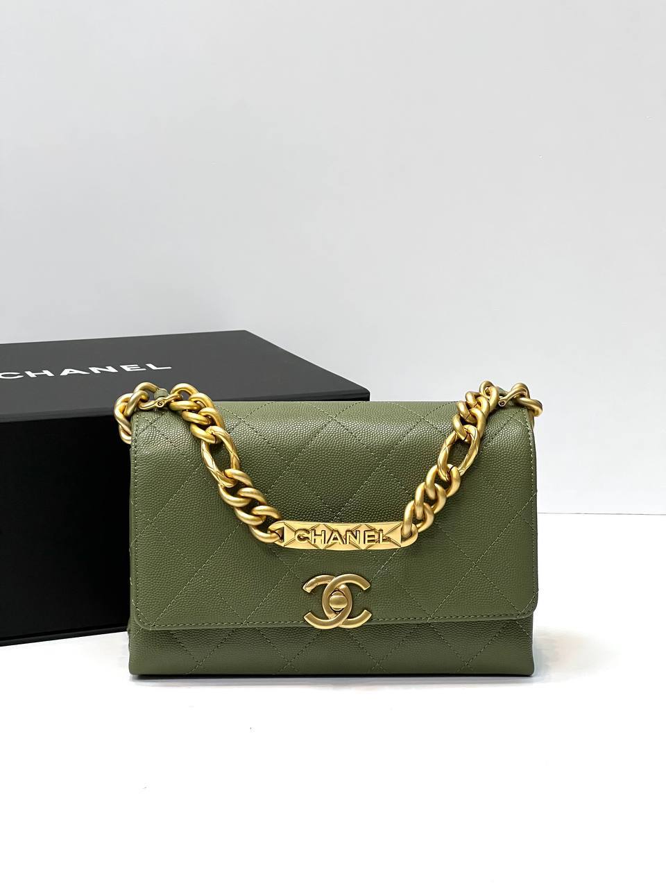 Build with an antique CC logo in the front, this bag comes with two main compartment and 1 zip pocket on the inside. Wear this bag from day to night or even for work. It can become you everyday bag as well.