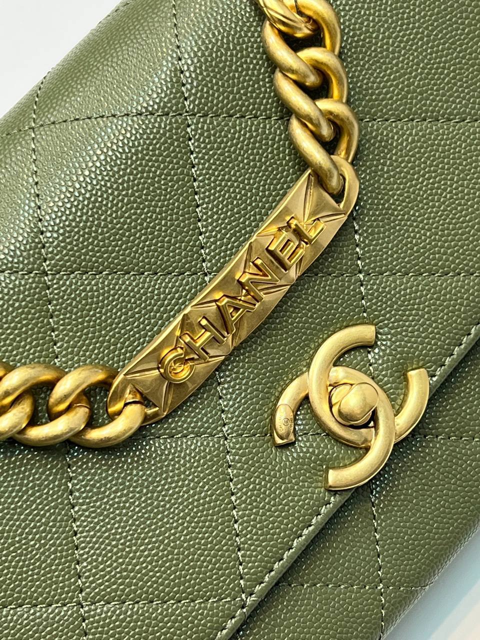 With the metal plate is engraved with the words CHANEL, this bag is an instant-flaunter by itself. Refined with flat quilted (not the bubbly one), this bag just screams Chanel wherever you go. The strap is crafted with metal chain and refined with a leather patch on the end for comfy carry.