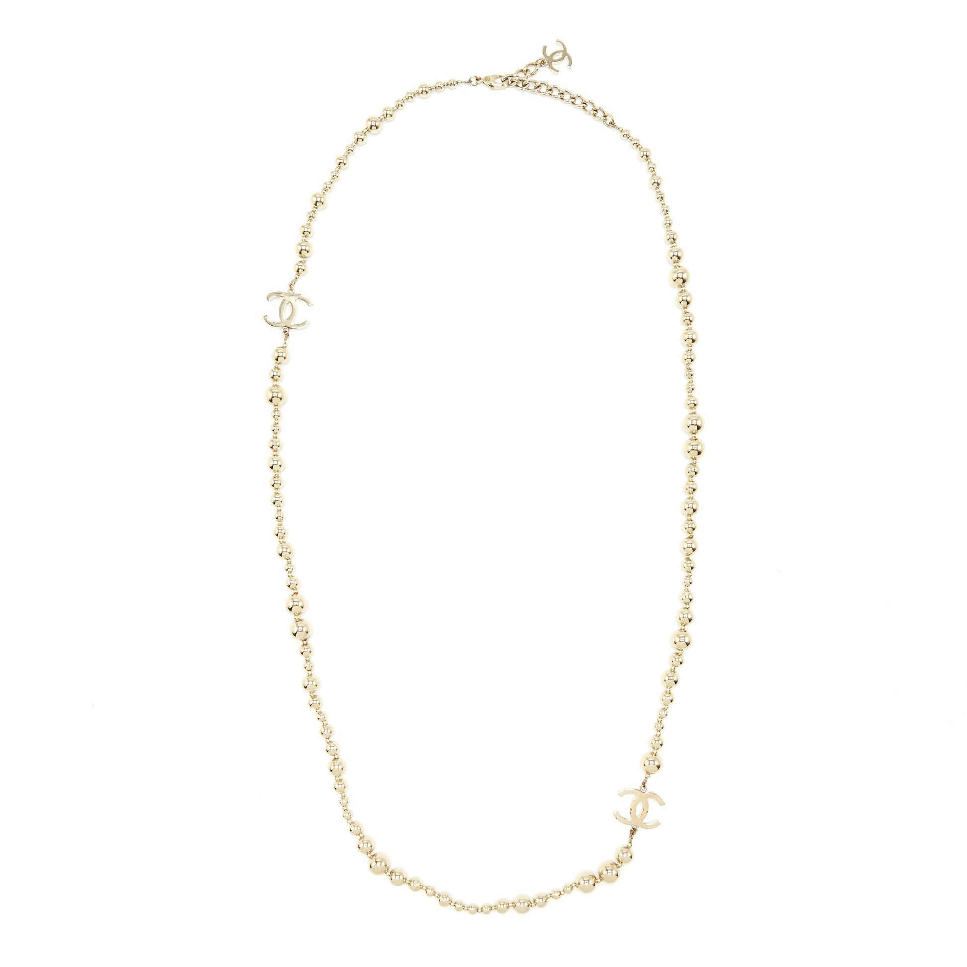 Chanel Long Necklace Light Gold Tone