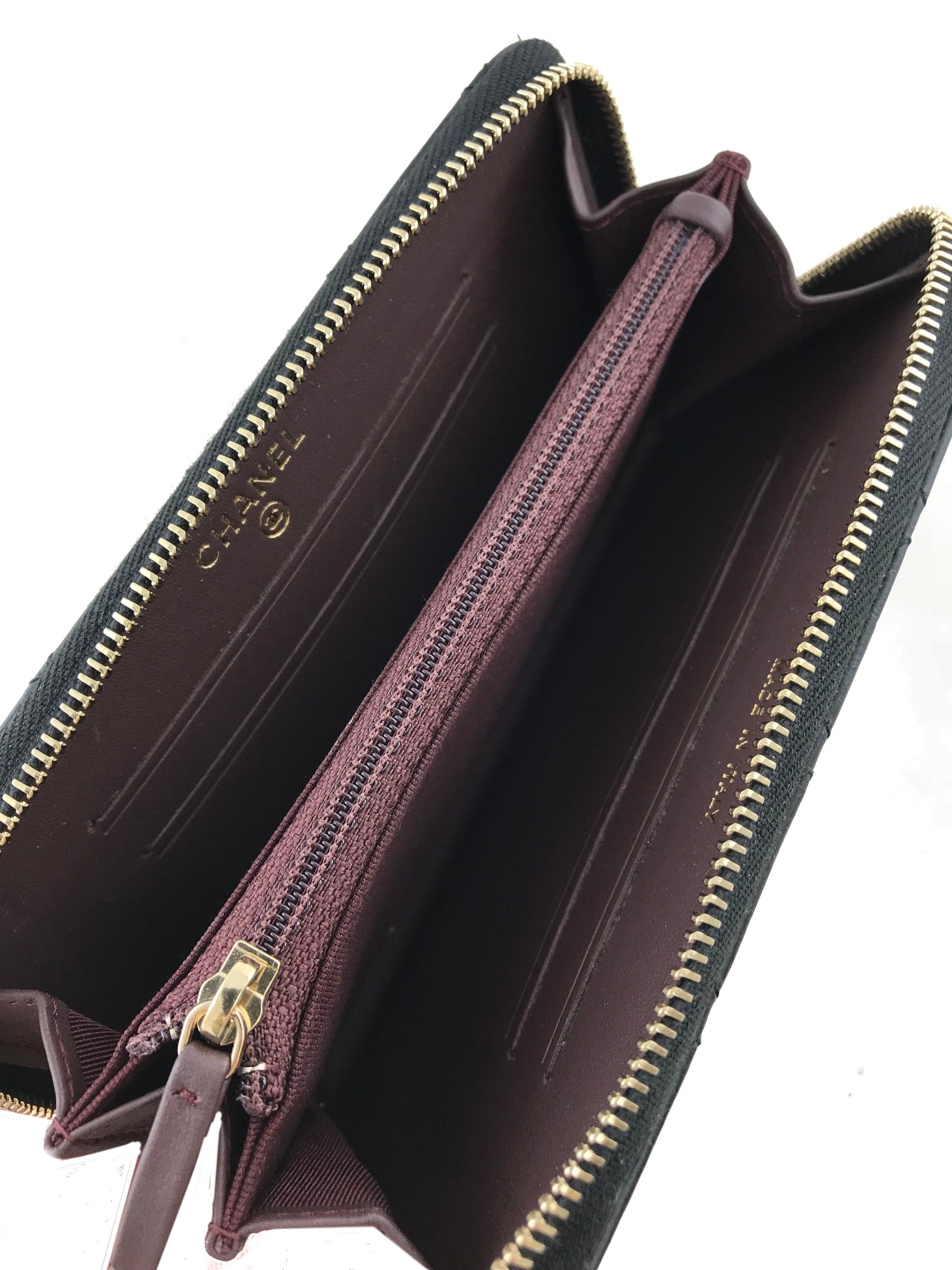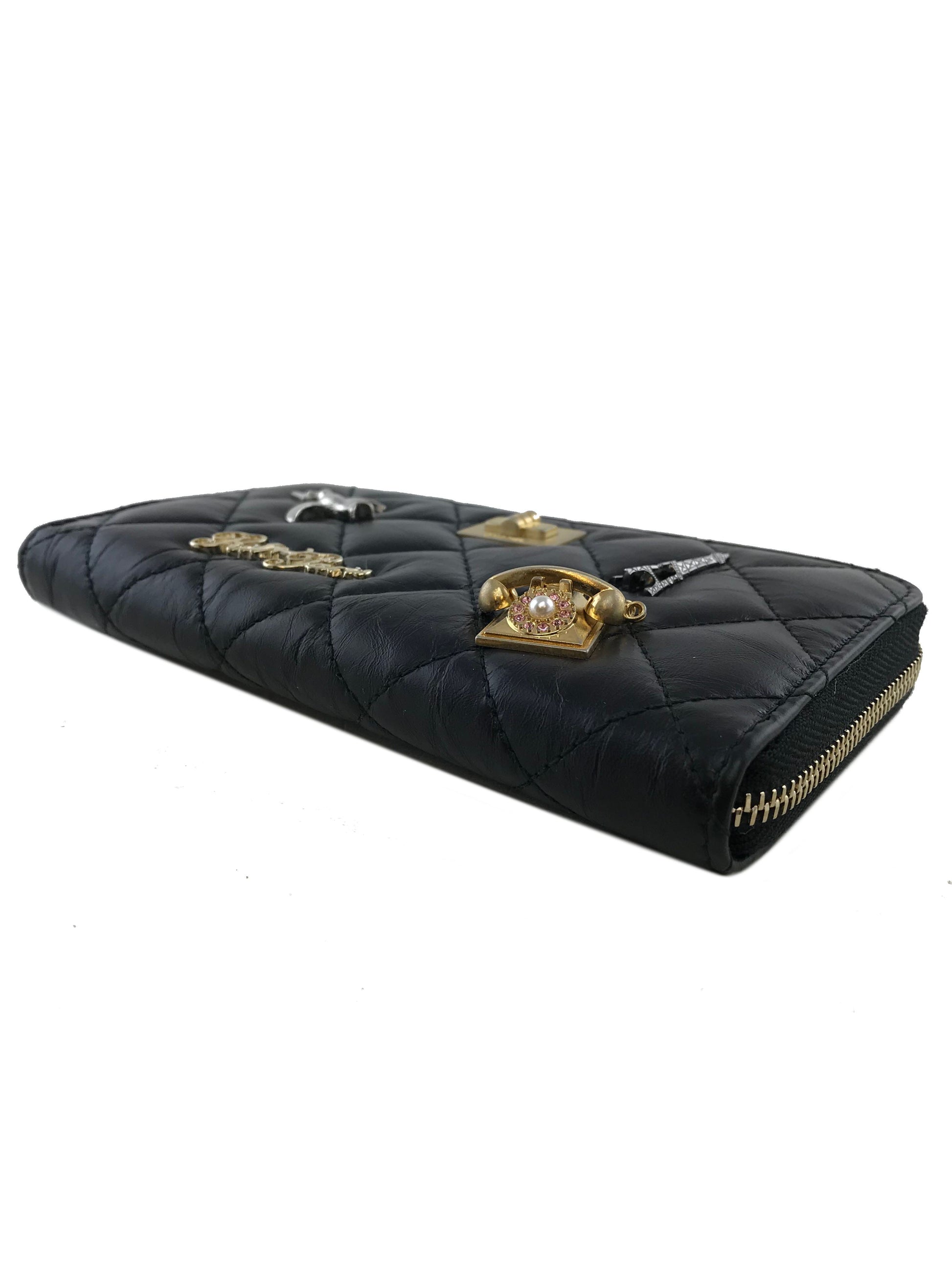 Add to your collection this Chanel Lucky Charms Casino 2.55 Reissue Zipped Wallet crafted fromluxurious aged calfskin leather in signature diamond quiltingand polished gold-tone hardware. This stylish wallet features lady of luck charms on the front anda top zipper that opens to a leather and fabric interior with card slots and a central zipper compartment.