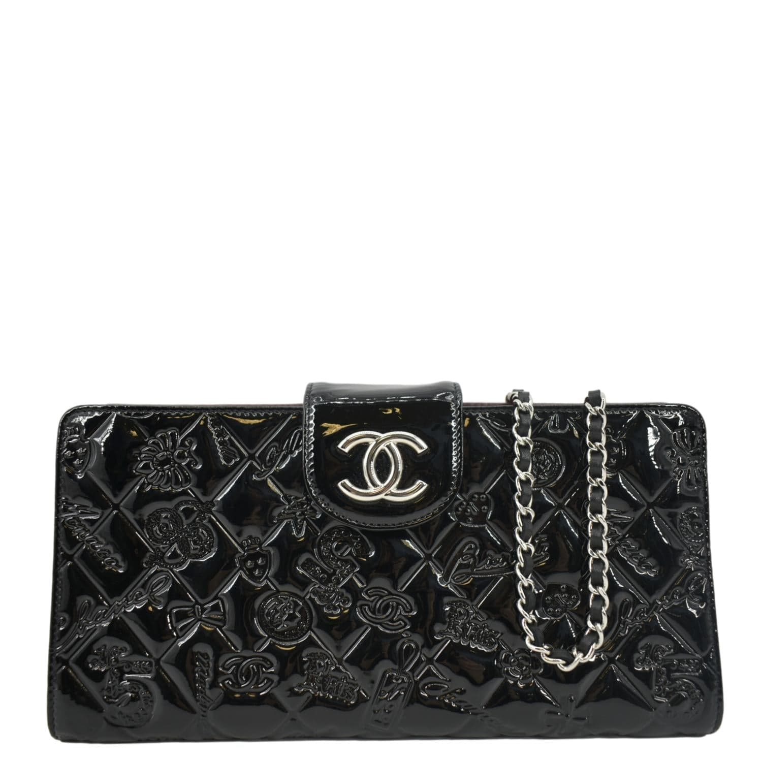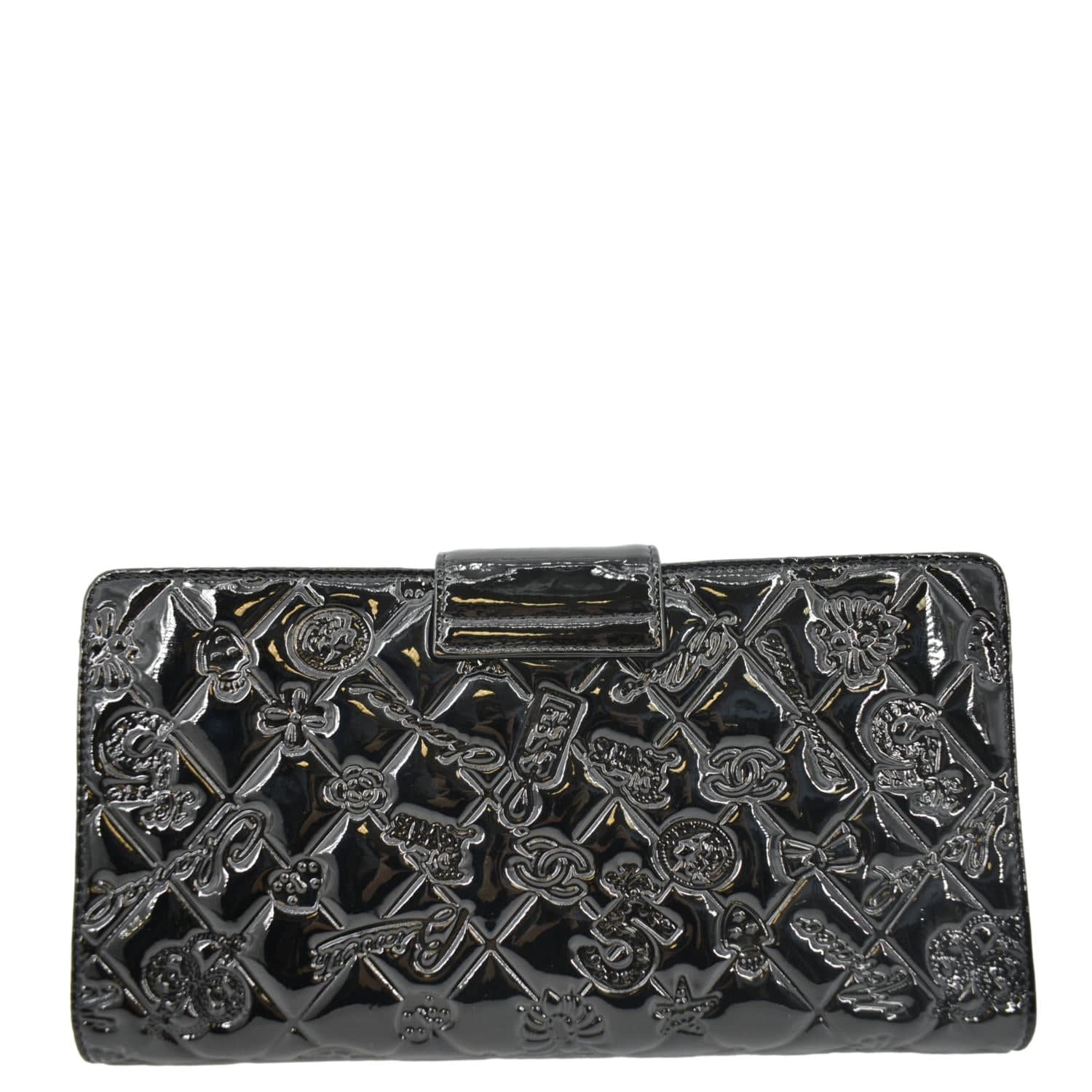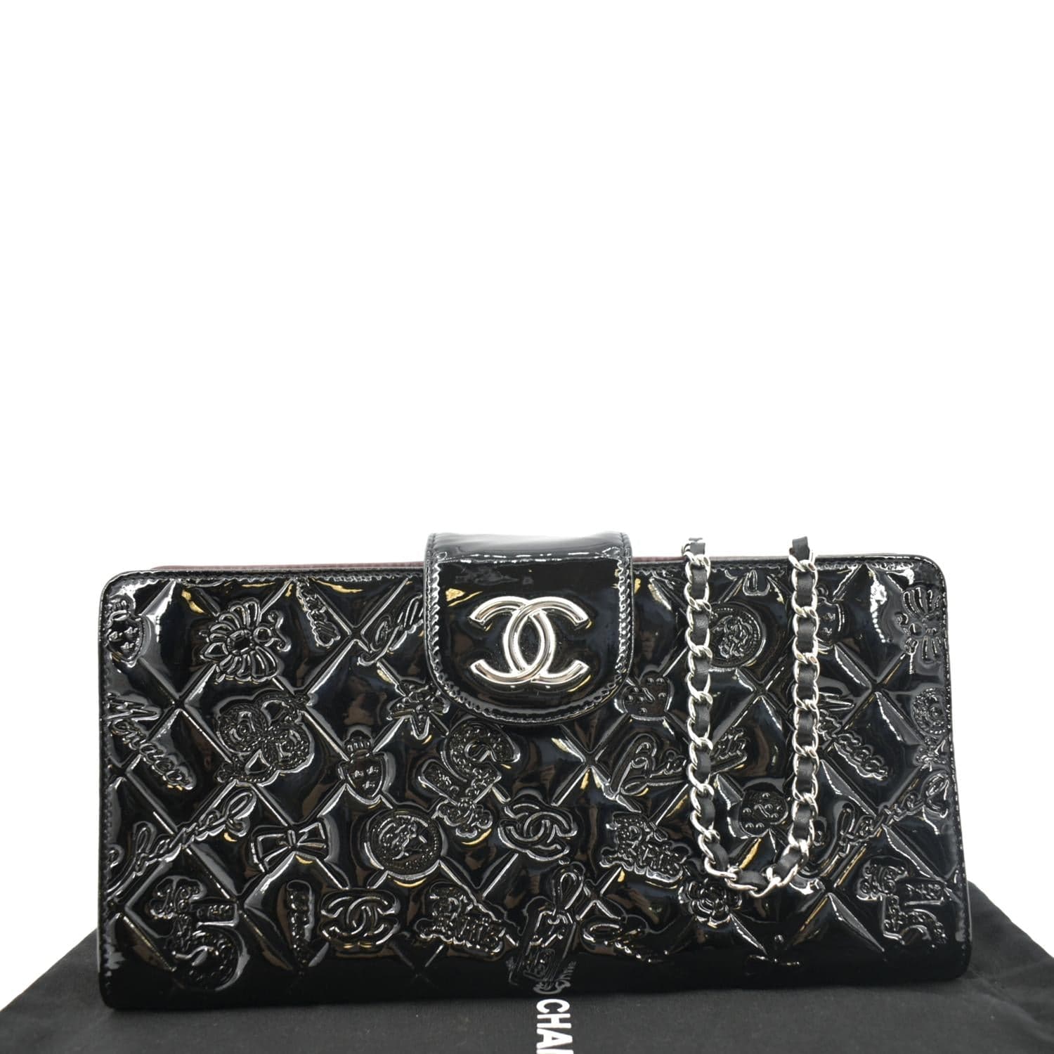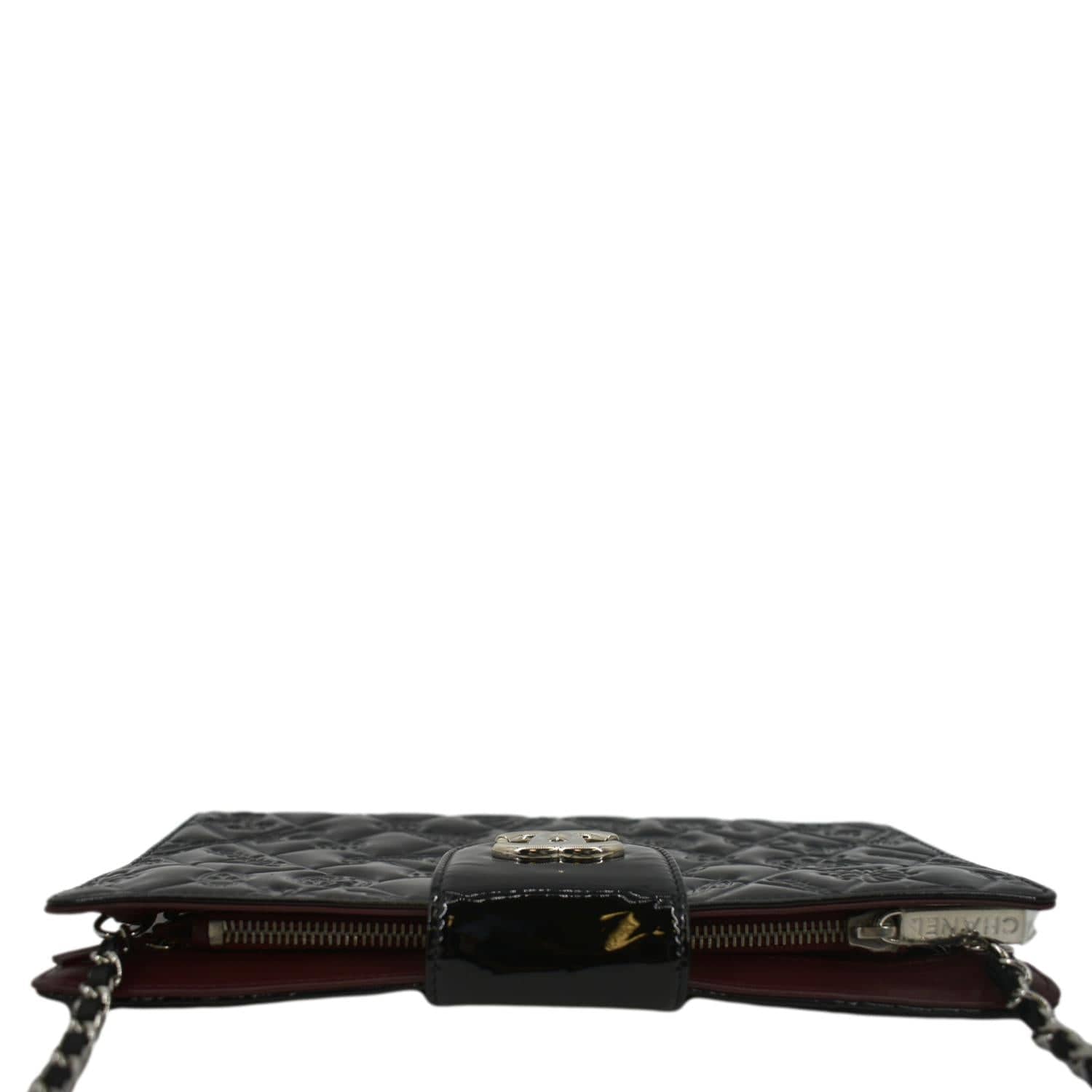 CHANEL Lucky Symbols Pochette Patent Leather Wallet on a Chain Black